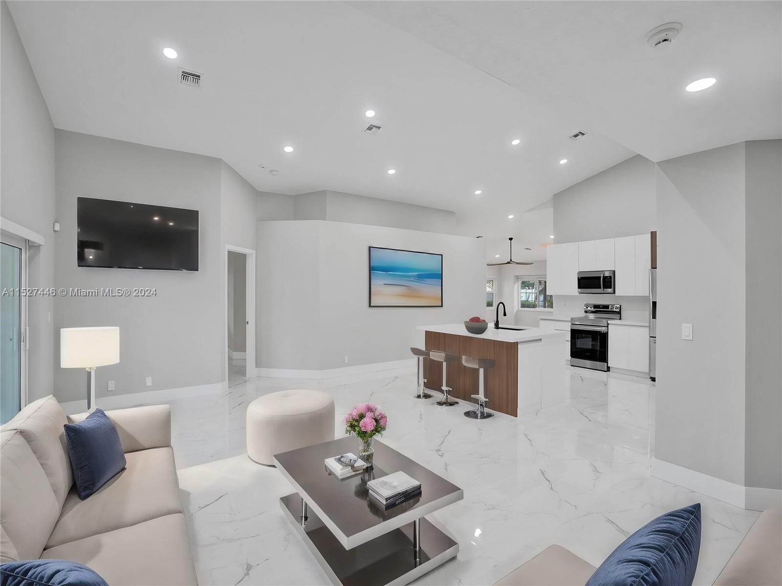 Welcome to your dream home! This exquisite, single-story residence has been meticulously remodeled with modern finishes and high-end touches throughout. 4 Beds+1 Extra Room: Perfectly versatile space that can be used as a study, game room, or additional bedroom. Features state-of-the-art appliances, quartz countertops, custom cabinetry, and a spacious island, making it a chef’s delight, new tile flooring 24’’ x 48’’ & newer bathroom in a modern style. Brand-NEW ROOF (2023), recently updated plumbing (non-polybutylene pipes) while the impact windows ensure security and energy efficiency. The Low HOA fees include Xfinity cable & internet, clubhouse, pool, basketball courts, etc. Situated in an area with top-rated schools, Don't miss the opportunity to own this stunning, move-in-ready home!