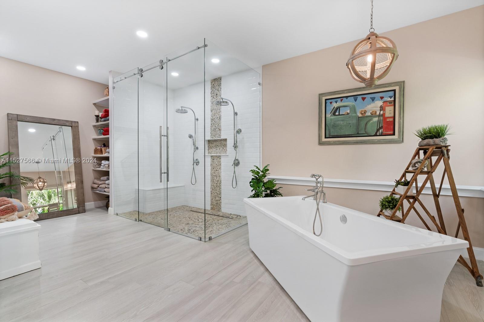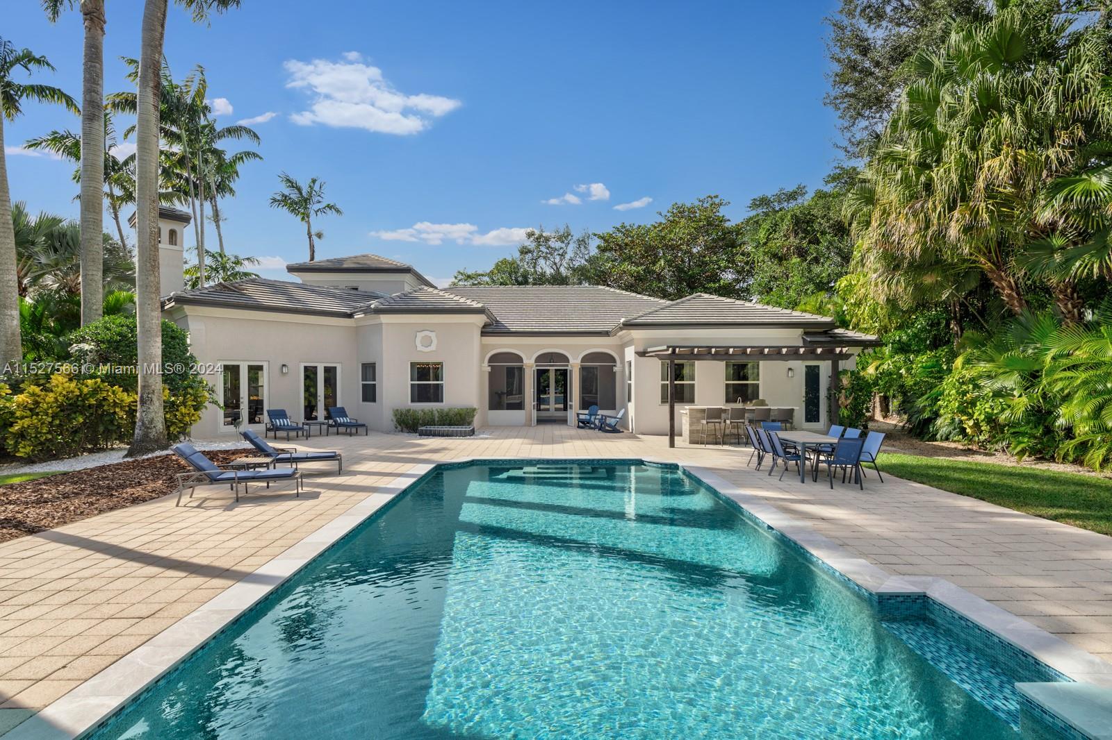 Magnificent One-Story Residence in the heart of Pinecrest. A sprawling 34,891 SF lot enveloped by mature landscaping for ultimate serenity and privacy. An exquisite floor plan comprising of 5 bedrooms, 4 full & 2 half bathrooms. Immerse yourself in the grandeur of voluminous ceilings and porcelain tile wood floors adorning the entire home, which include a gracious living room, formal dining area, and a family room. The gourmet chef's eat-in kitchen is outfitted with top-of-the-line appliances and offers views of pool and screened-in patio. The opulent primary suite features an expansive walk-in closet and luxurious spa bath. Additional amenities include impact glass doors/windows, a covered terrace, pool, and a 2-car garage, ensuring a lifestyle of utmost sophistication and convenience.