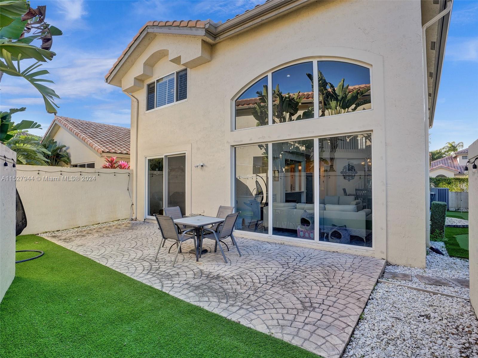 Large corner lot with BRAND NEW ROOF AND GUTTER SYSTEM as of MAY 2024 as well as hurricane impact windows. This great family home is beautifully appointed with a newly renovated two-tone open concept kitchen, 3 large bedroom and 3 1/2 bathrooms, with the Master and 2nd bedroom upstairs and the 3rd bedroom with full bathroom downstairs. There is a spacious loft/office upstairs as well as additional office space in the kitchen. Newly added bar and putting green with no maintenance turf throughout the patio makes this home perfect for entertaining. Located in one of the closest villages to the main club and with its own beautiful, newly renovated community pool area. A+ rated school district. Priced to sell, won’t last!