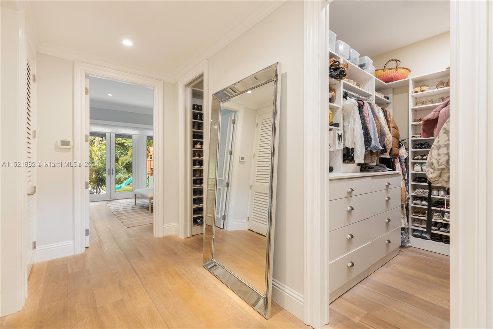Built in 2011, this exquisite modern plantation-style home features top-notch finishes and 10-foot-high ceilings. Manicured gardens surround the 12,000 sq. ft. lot, and an impeccable interior includes Calacatta Gold marble countertops, white oak floors, and French doors that invite natural light. The primary bedroom offers pool and garden access, two walk-in closets, and a luxurious en suite bathroom. Upstairs, three bedrooms feature walk-in closets and en suite bathrooms. The home includes 540 sq. ft. of covered outdoor living space, a summer kitchen, and a heated pool with a waterfall. A two-car garage and the ideal location make this home the perfect family sanctuary that you have been looking for.