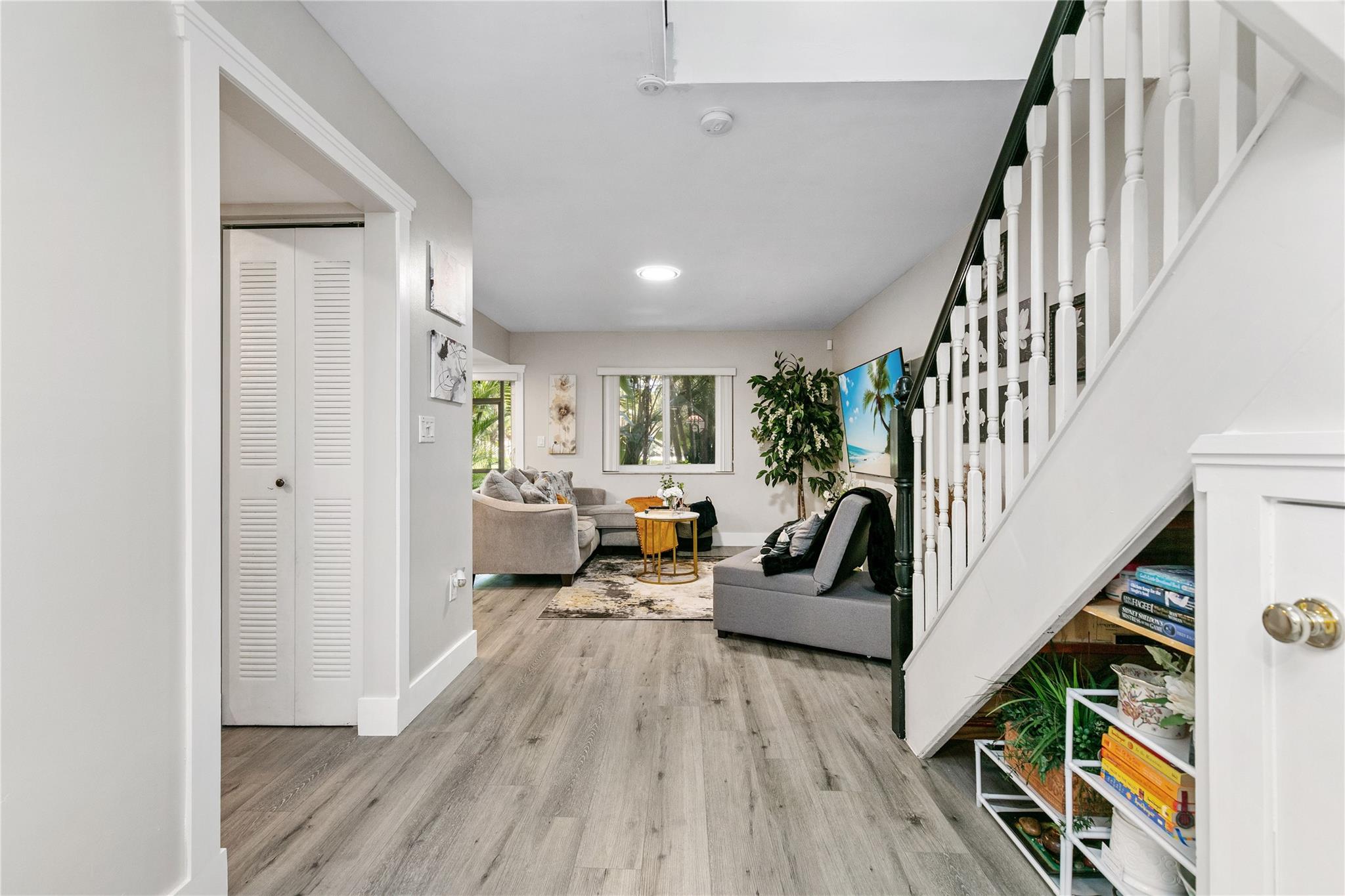 Welcome to one of the most Beautiful Homes in Plantation. This 3/2.5 bath home features brand new hard wood floor downstairs. The kitchen has some beautiful new cabinets along with a nice quartz countertop plus wonderful stainless-steel appliances which includes a big double door refrigerator. The half bathroom downstairs has been completely redone. The master bedroom upstairs has a big walk-in closet, double vanity bathroom with separate bathtub and shower stall. New lighting has been installed throughout the kitchen, living room and dining room downstairs. The home also has a rear screened-in porch. Seating in that porch overlooking the lake with palm tree alongside of it will make you feel like you are in paradise. The home also has a 1 car garage. Make this home yours before it is gone