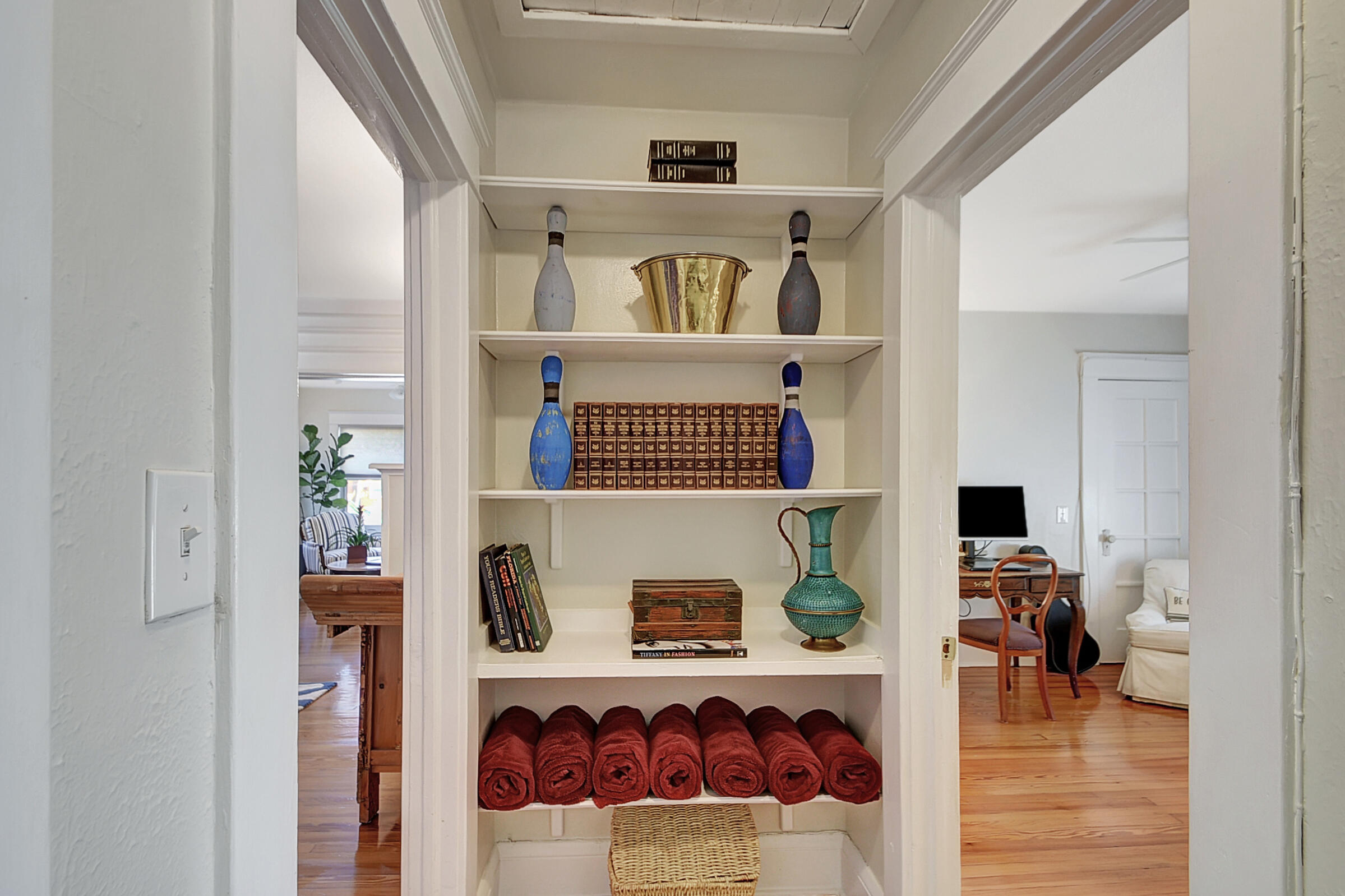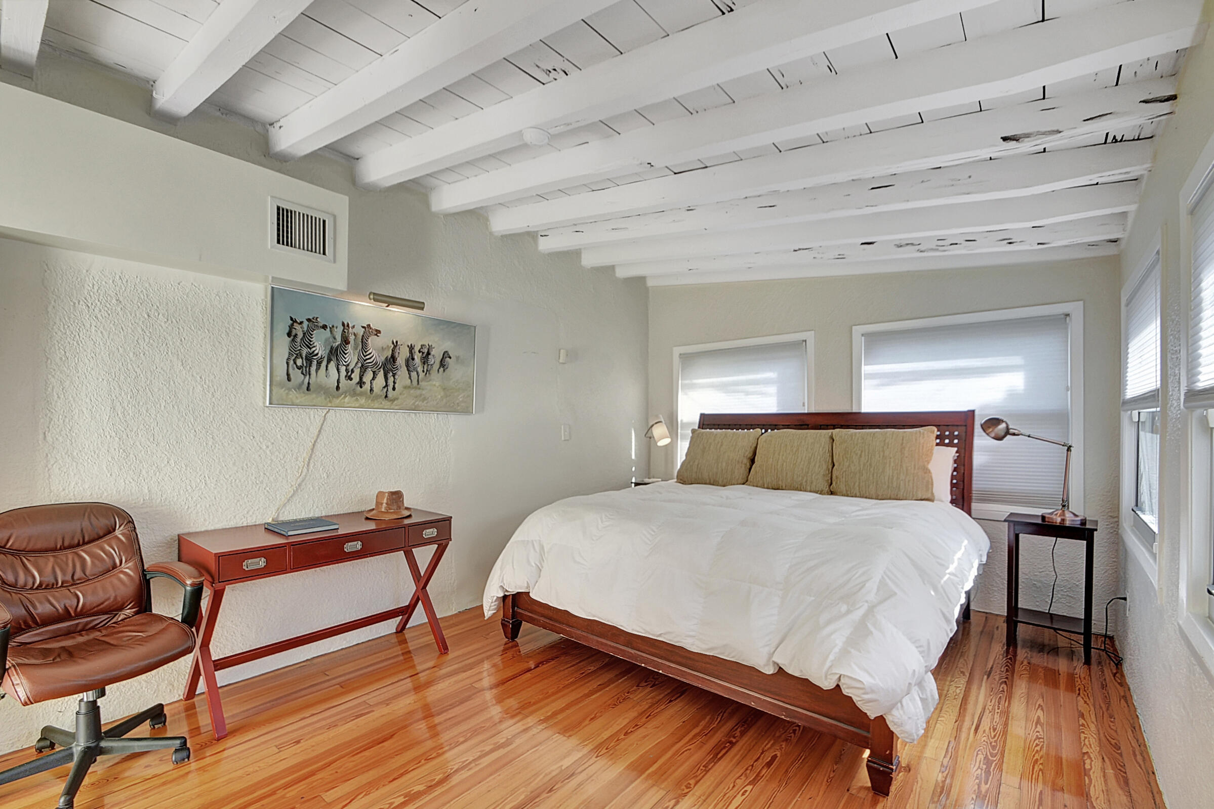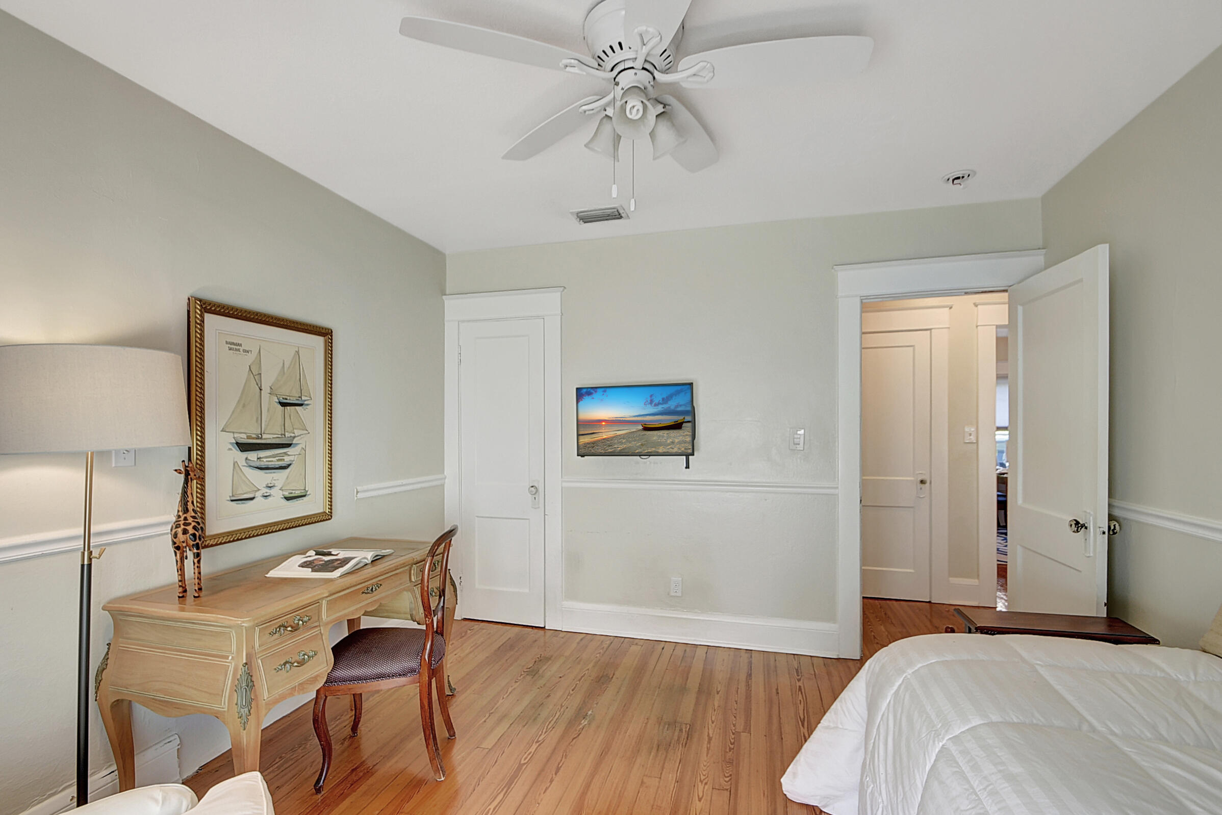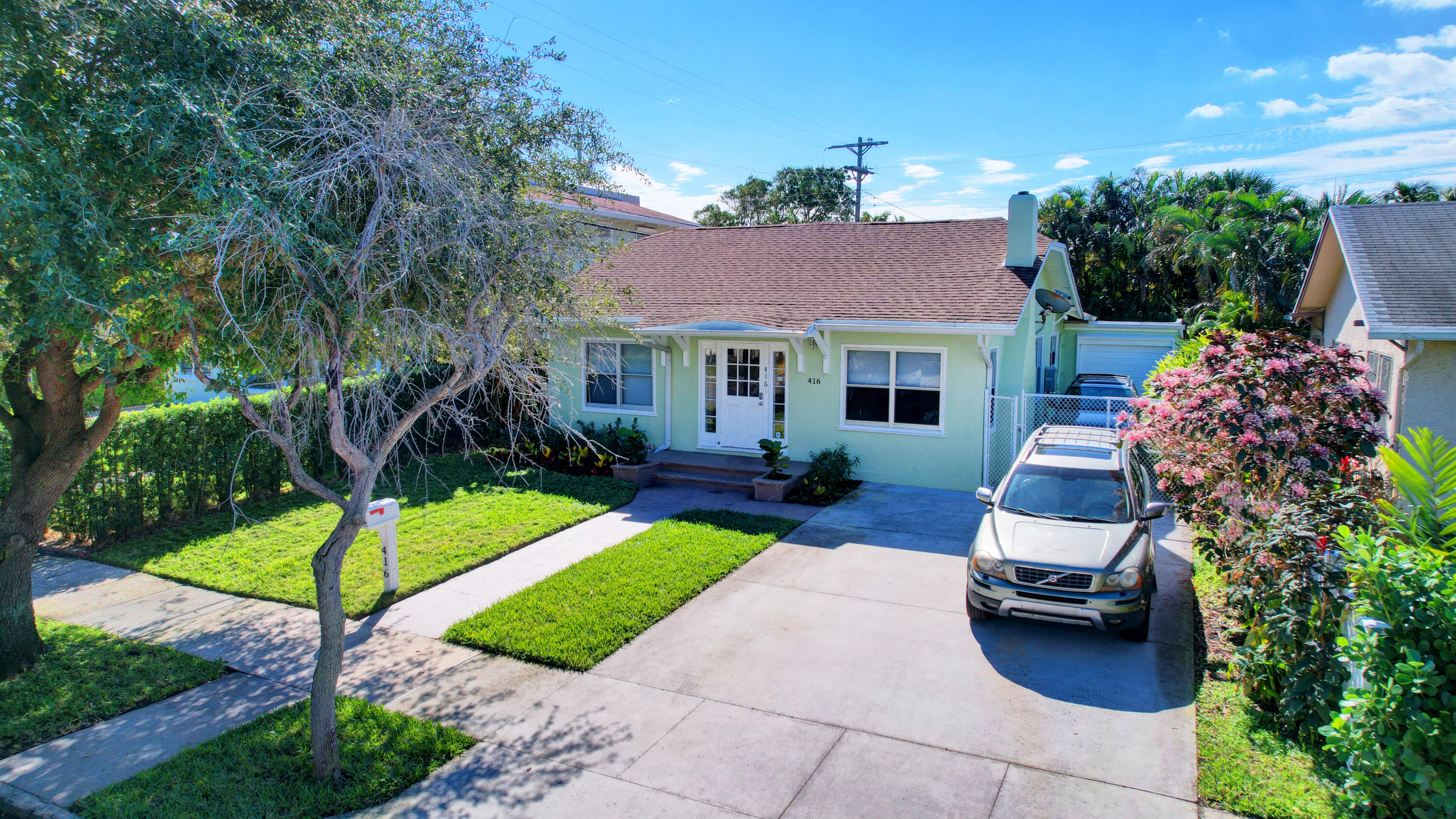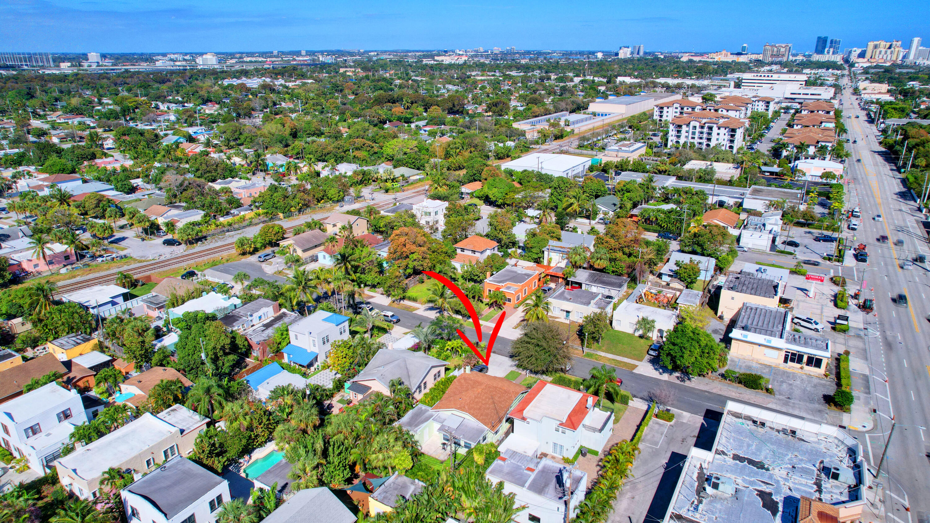 Charming 1931 Key West style house just 4 blocks from the famous Intracoastal Waterway. This home sits where the Design & Dining District meets Antique Row. Gleaming hardwood floors and built-in book cases give this historic home that old Florida character so popular with so many. All the rooms are spacious with fresh paint. Living room with Coquina stone fireplace leads into formal dining room with 3 windows. Kitchen has travertine flooring with granite countertops and a gas range. 2 bedrooms and a den are on the east side of the house. Out back is a 18x12 additional room being used as the primary bedroom. It has exposed wood beamed with pecky cypress ceiling. There is also a mud room off the kitchen that leads into a 1 car garage. Private backyard features outdoor shower. A must see!