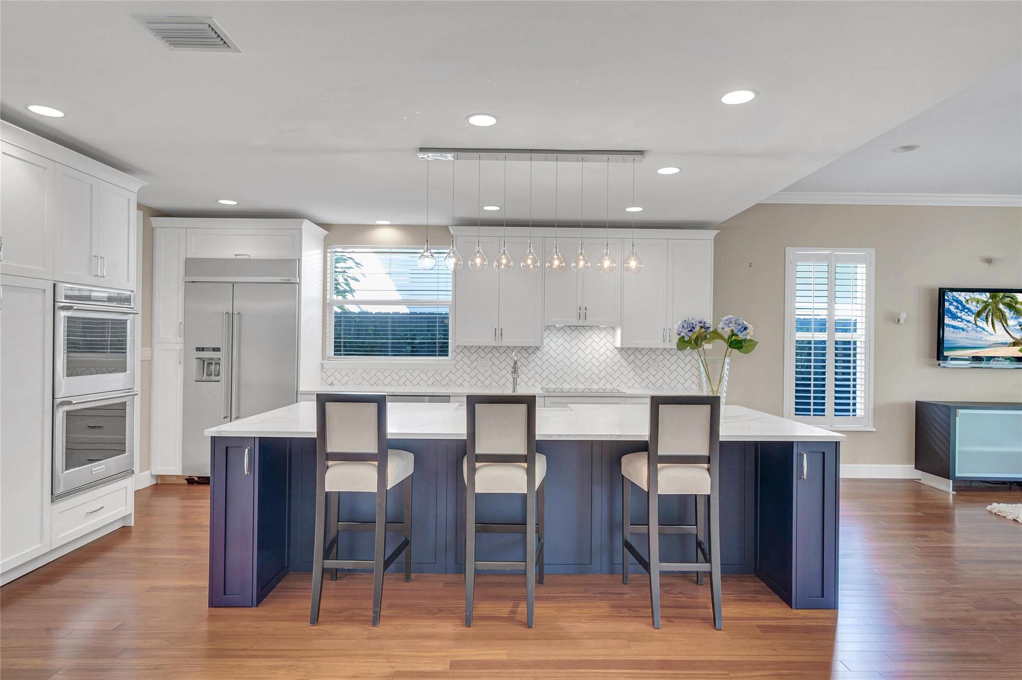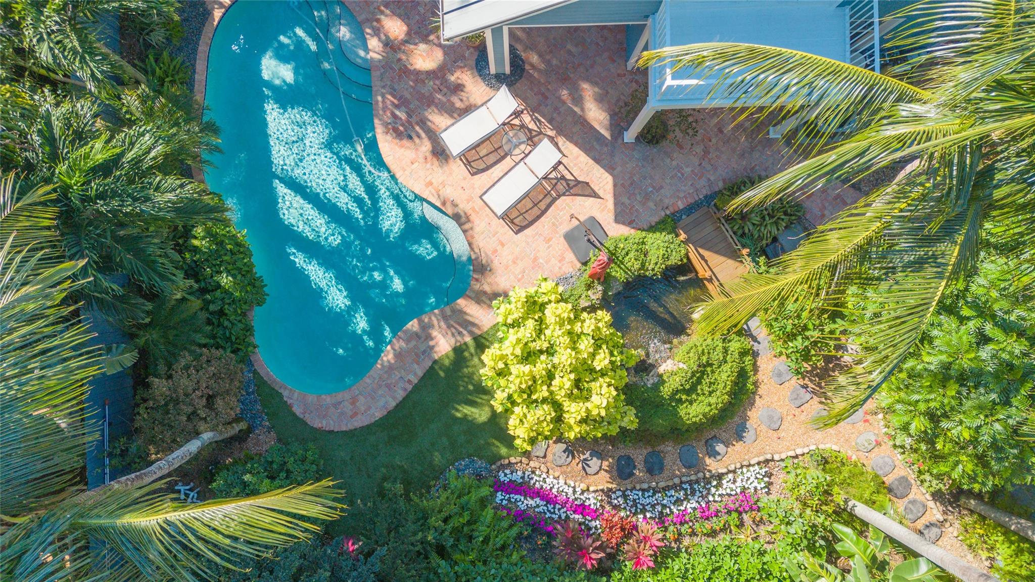 On a lovely residential street in Victoria Park, this home has a fabulous floor plan with high ceilings, spacious rooms, charming dormer bedrooms, a brand new eat-in kitchen and an entry level bedroom. The wide foyer entry flows through to a roofed patio and picturesque gardens featuring a waterfall, pond with a foot bridge and flowering tropicals surrounding a free form pool. A family room and formal dining room both open to the rear yard. Upstairs is an impressive primary suite and nearly as luxurious VIP suite both with generous closet space and high ceilings. The newly refinished two bay garage is attached. A deep brick paved driveway allows ample parking for your guests. Holiday Park is two blocks away. Multiple quality food markets, restaurants, parks and the beach are nearby.