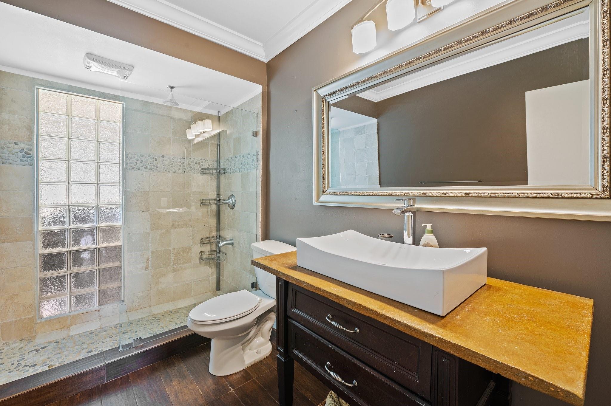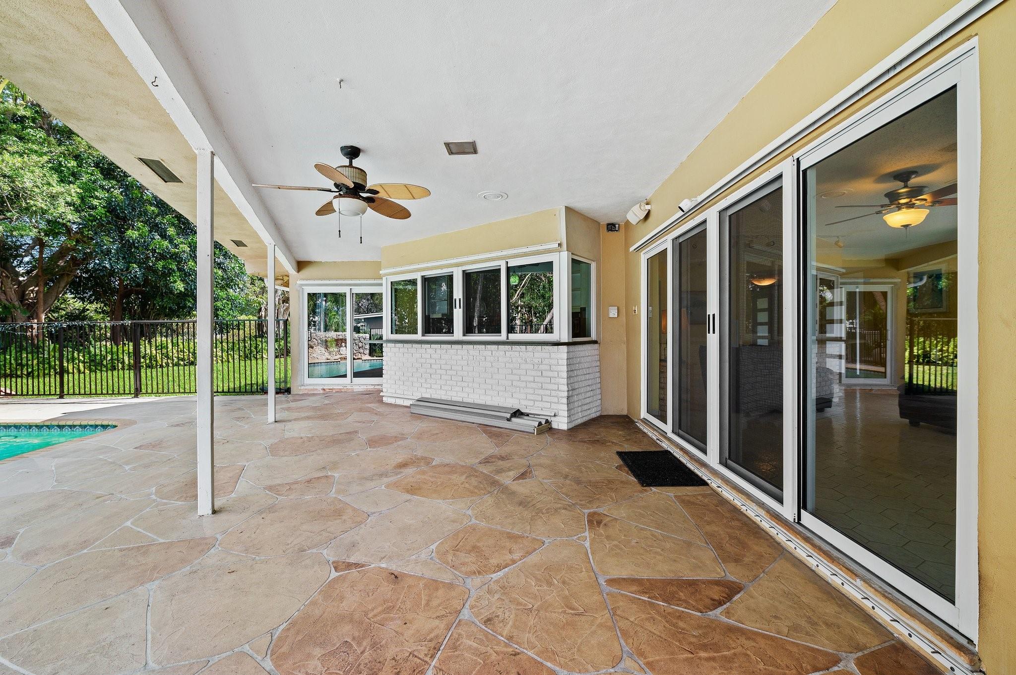 YES, It's true, Estates Drive does NOT have a homeowners association!! If you're an investor, you can lease the property right away without any restrictions. Come and take a look at this spacious & designer ready, single story 3-BR 2-BA 2-Car Garage waterfront/pool home with a large circular driveway. Windows & Doors (including the garage door) are HURRICANE IMPACT with the exception of the block glass in the guest bathroom shower. Both bathrooms have been renovated and feature modern design. The kitchen features numerous windows overlooking the beautiful, gated, pool & deck (part of the desk offers a covered area for shade). Behind the fenced in pool is a spacious lakefront back yard with many mature trees and ferns which provide full privacy from the high-rises across the lake.