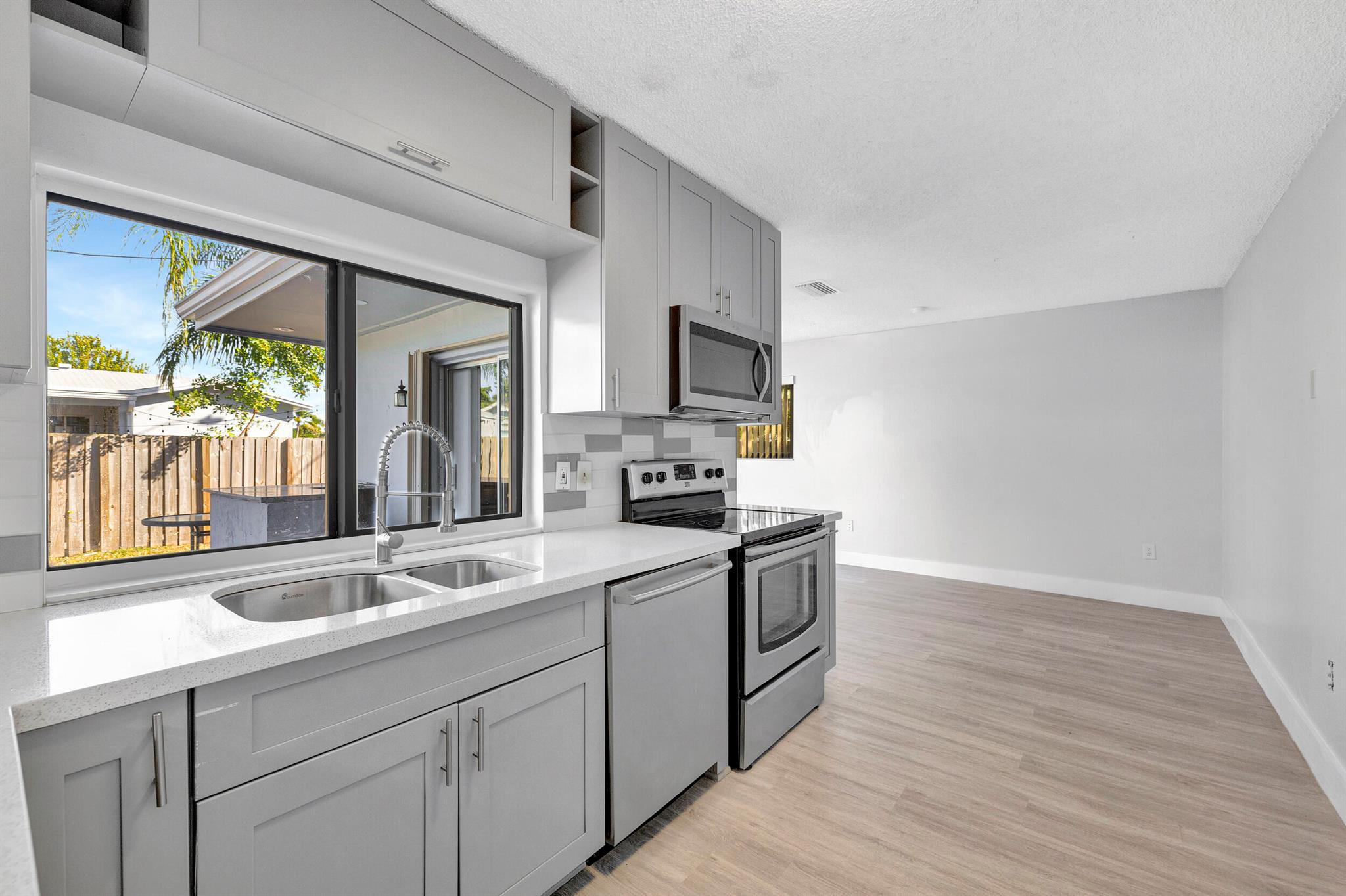 PRICED TO SELL. This gorgeously remodeled single-family residence in Sunrise Florida, has it all! Enjoy the convenience of being in a non-HOA community with and yet with a great sense of community. It features 3 bedrooms and 2 bathrooms plus areas for both an office and bar. The open layout of the house provides ample natural light throughout. Recent upgrades include new kitchen with stainless steel appliances, an updated bathroom, new flooring, new doors, and a modern paint job. With a large private back & side yard, imagine all the entertaining possibilities! Enjoy a generous amount of outdoor space with an inviting pool, with plenty of room for the kids to play. This No-HOA community is in one of Sunrise's most sought-after locations - don't miss out on this remarkable opportunity