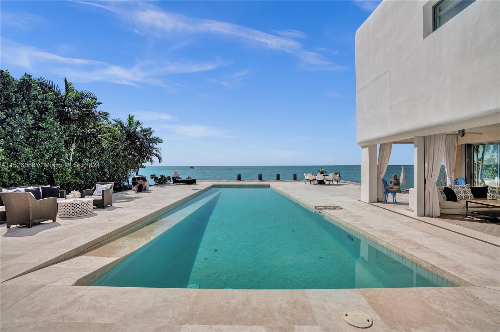 Don't miss this opportunity to own a rarely available wide bay front home on S Mashta Dr featuring 100 ft of water frontage & unobstructed views. This large 2 story home has an eat in kitchen, 3 door wine chiller & separate walk-in pantry/storage area. An adjacent covered patio is separated from the kitchen by multi sliding impact doors that open & stack against each other expanding your entertaining space & bringing the outside in. The primary BR has 2 full baths & 3 walk-in closets. There are an additional 4 BR's & 4 baths on the first floor, one of which has a kitchenette & a separate entrance. A mosaic staircase leads to 2 additional bedrooms w/ensuite baths & a large shared balcony Additional amenities include heated pool, cabana bath & an expansive patio for entertaining.