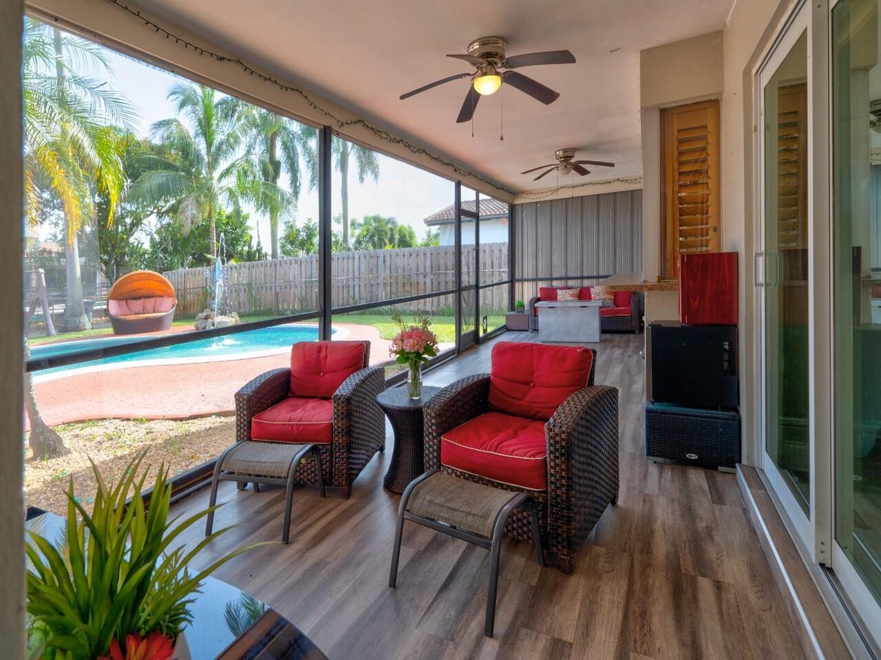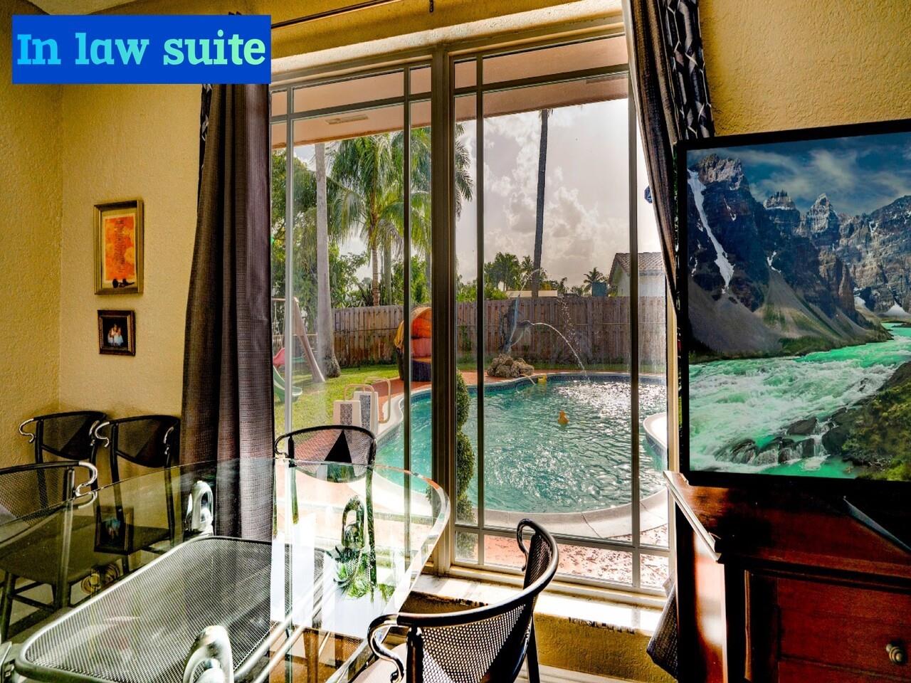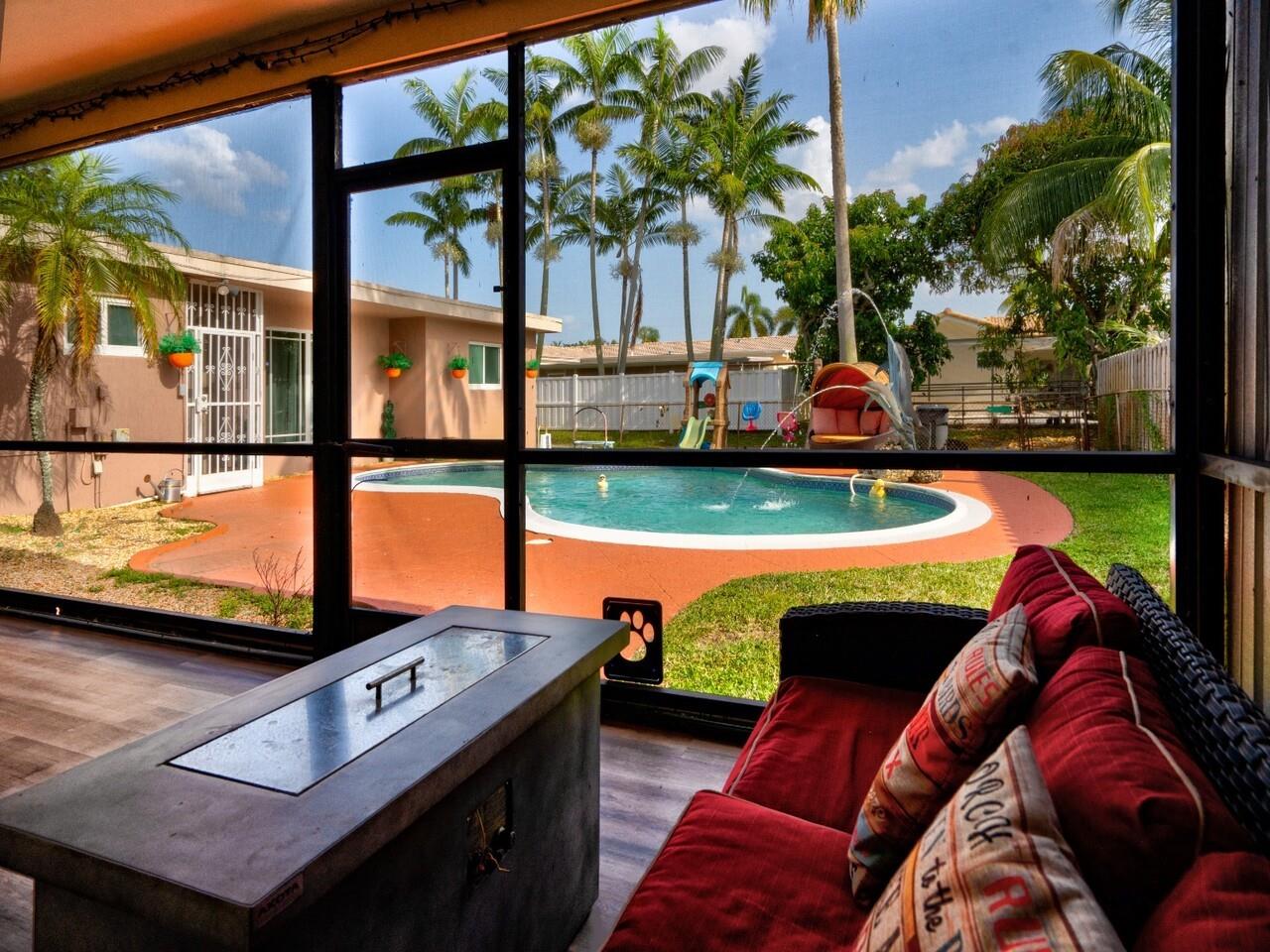 This home features a spacious 3 bedroom / 2 bath in the MAIN HOUSE with an attached fully remodeled 1 bedroom / 1 bath guest house with full kitchen, full living room apartment with private entrance and floor to ceiling pool view. The MAIN HOUSE includes a 2 car garage and circular driveway, The spacious living spaces are illuminated with tons of natural light beaming through the hurricane impact windows and sliding impact doors. Master bedroom includes walk in closet and master bath. With high end stainless steel appliances you will love this recently remodeled kitchen which boasts granite countertops, custom cabinetry and plantation shutters. The backyard is an entertainers dream including a large screened porch, spacious backyard and pool deck.