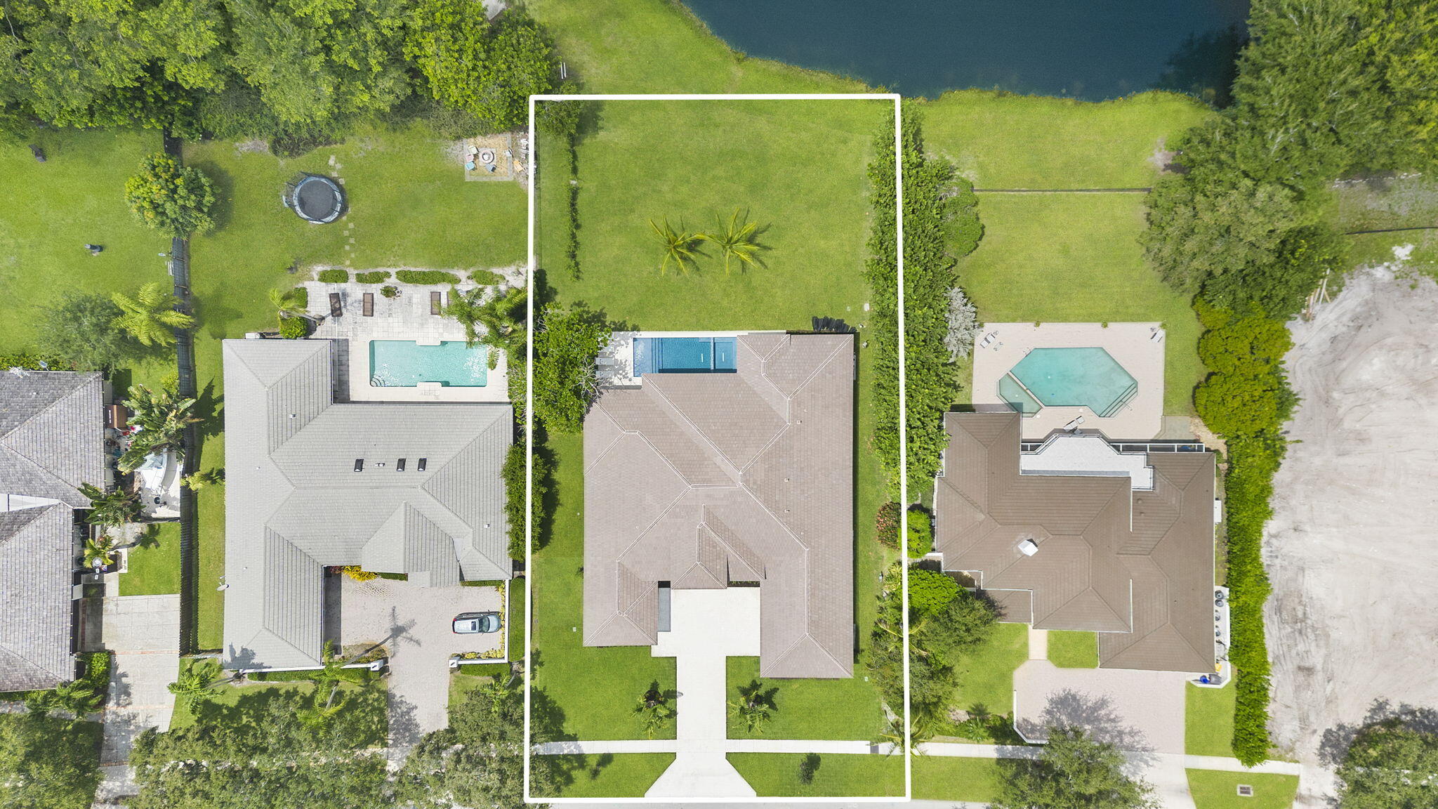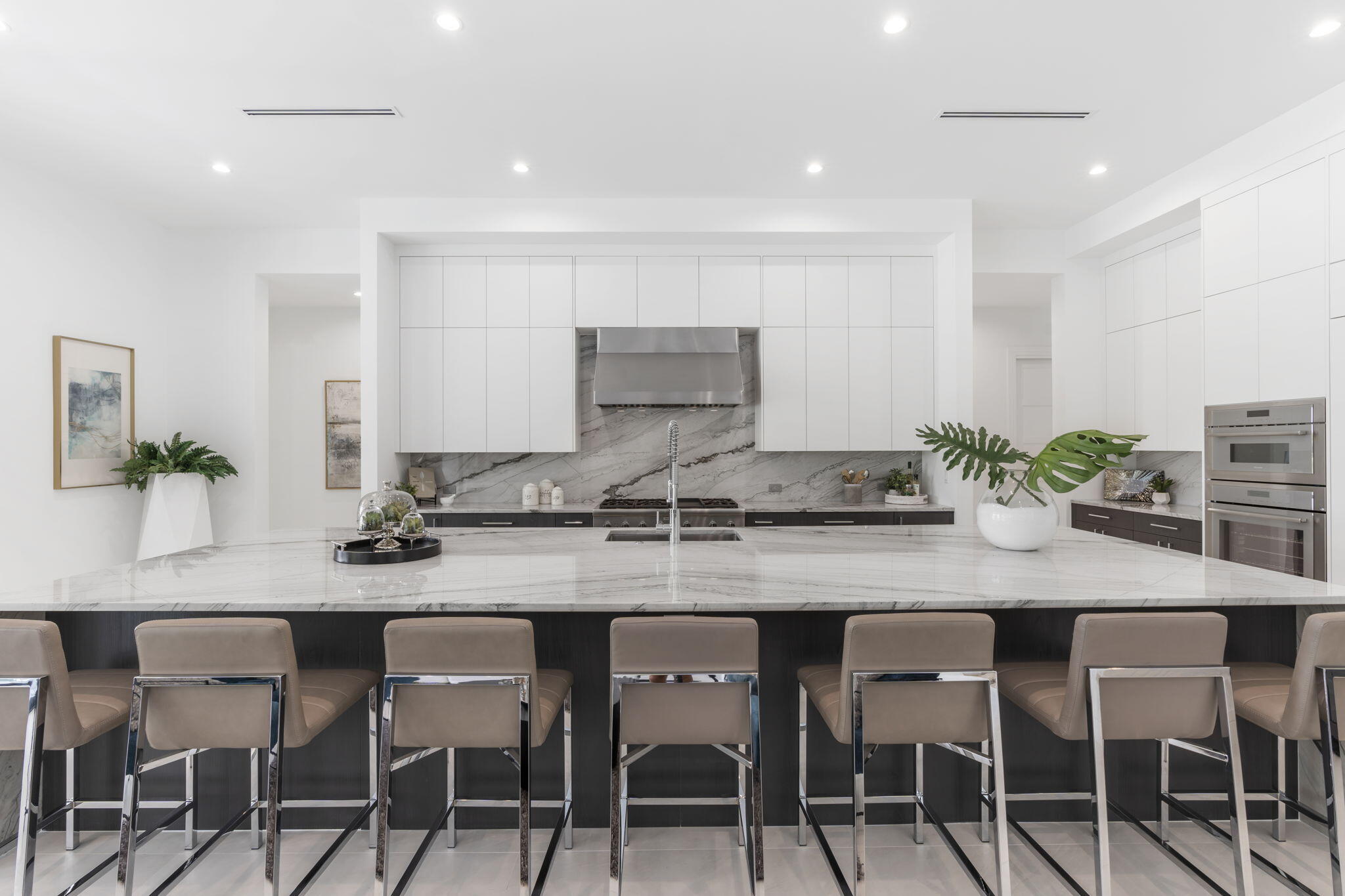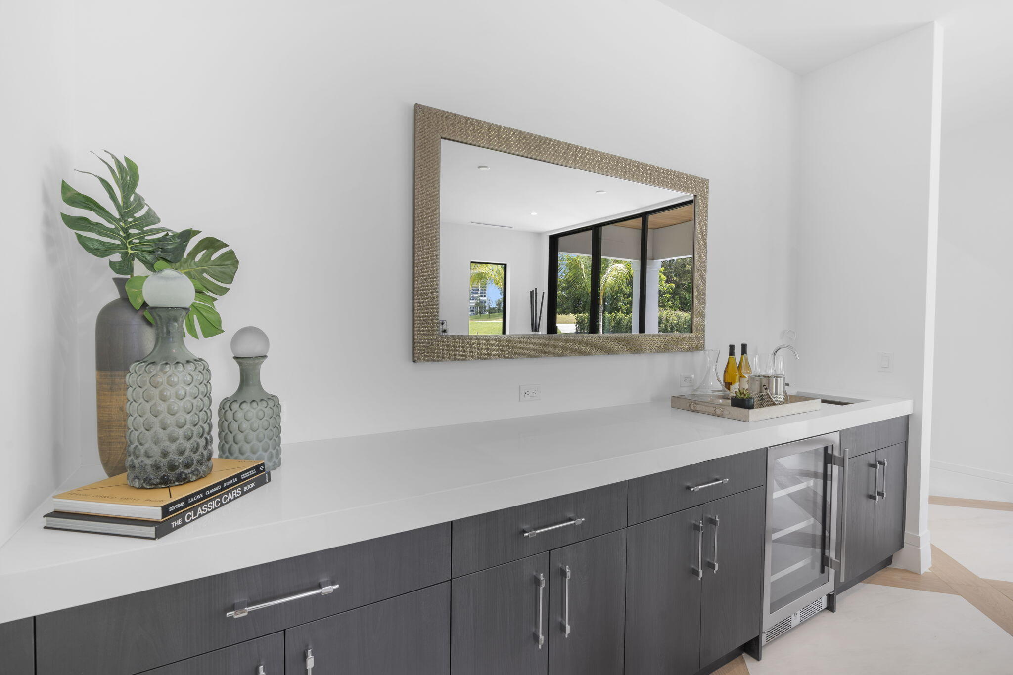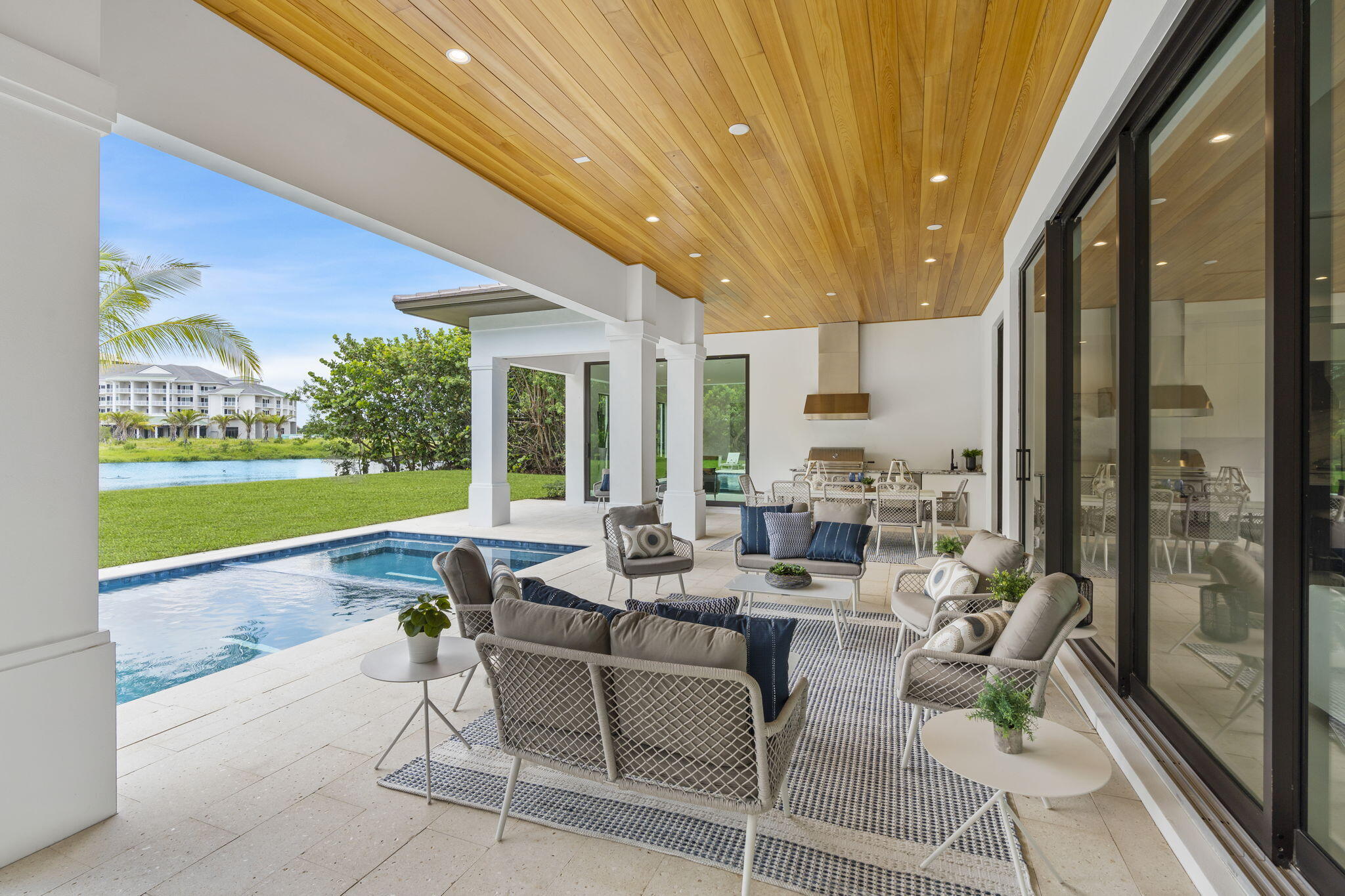 This new construction modern ranch home by Sam Fisch Development features ~6,000 square feet of luxury living on a nearly 1/2 acre lot in the Lands of the President gated community in West Palm Beach. The open-concept great room has soaring 12-foot ceilings and a chef's kitchen with walk-in pantry and spectacular 15-foot island. Seamlessly transition to the covered loggia, summer kitchen, and heated pool/spa, designed for al fresco dining and entertaining against the backdrop of serene lake views. The luxurious primary suite opens up to the outdoor oasis and also includes two expansive walk-in closets, double vanities, and an oversized double shower and freestanding tub. Enjoy waterfront living at its finest in this exclusive gated enclave!