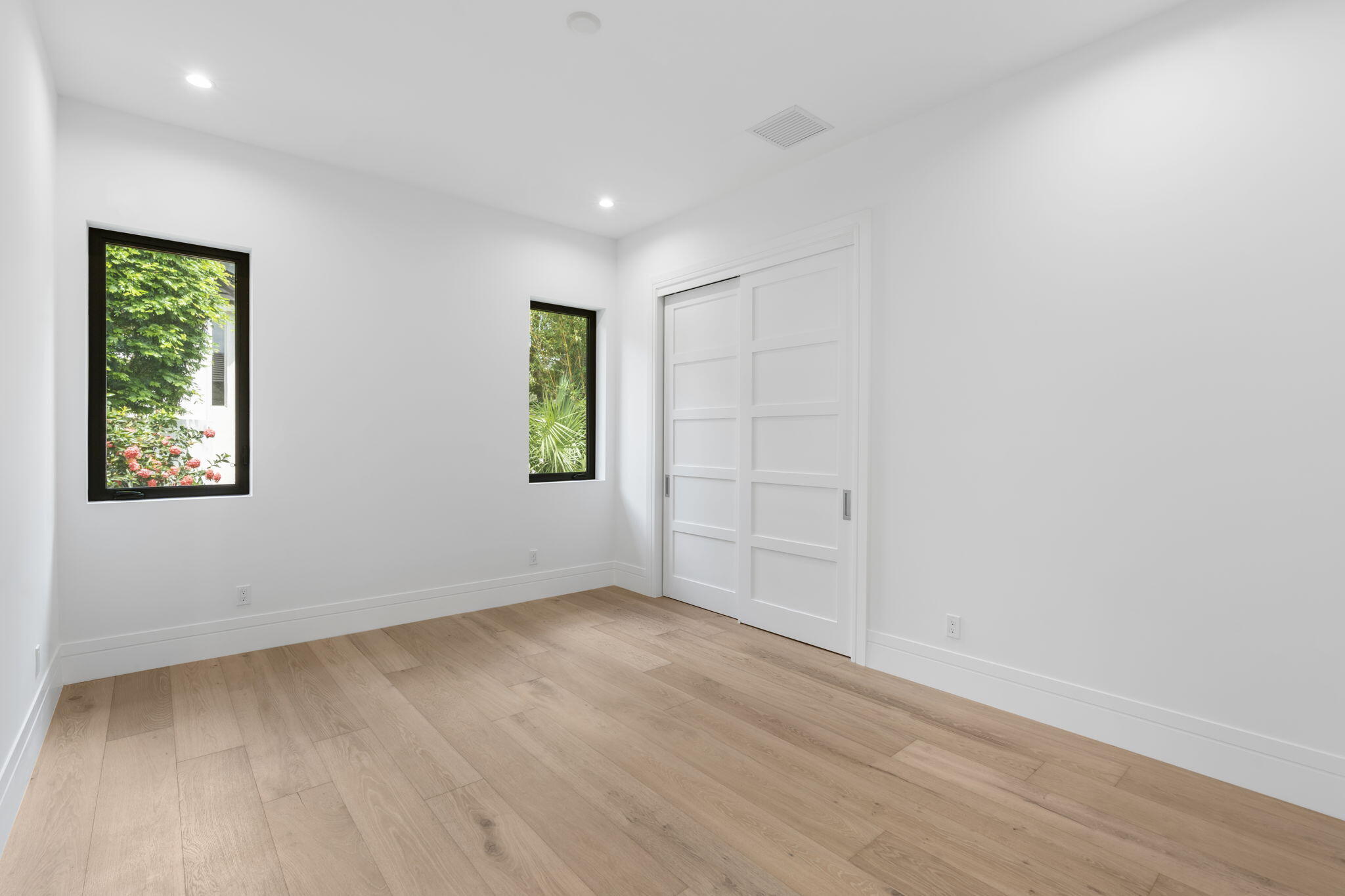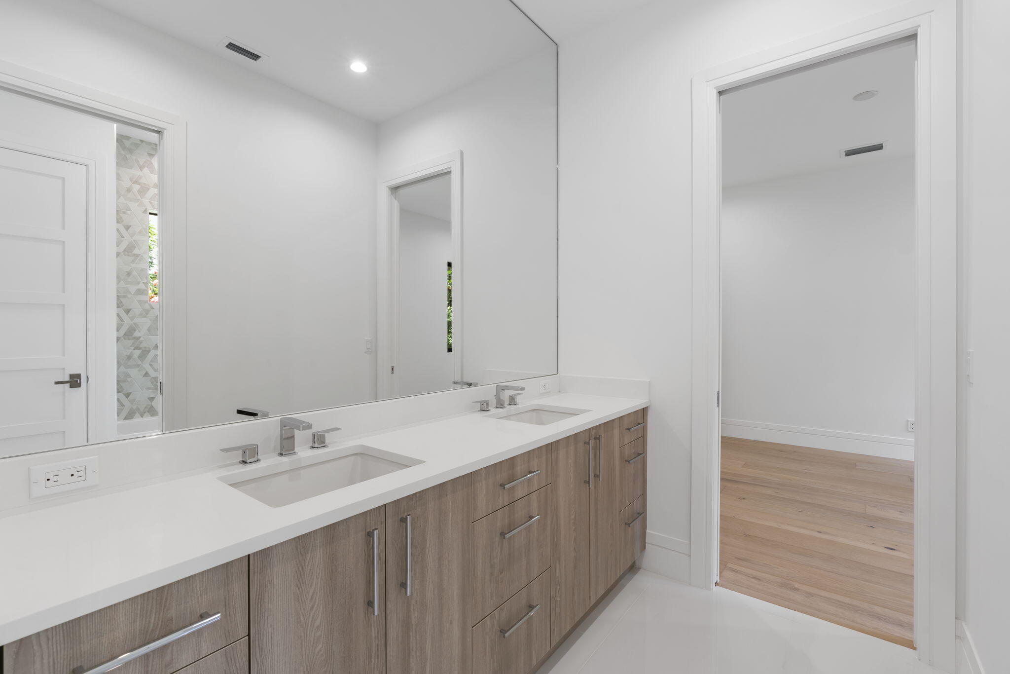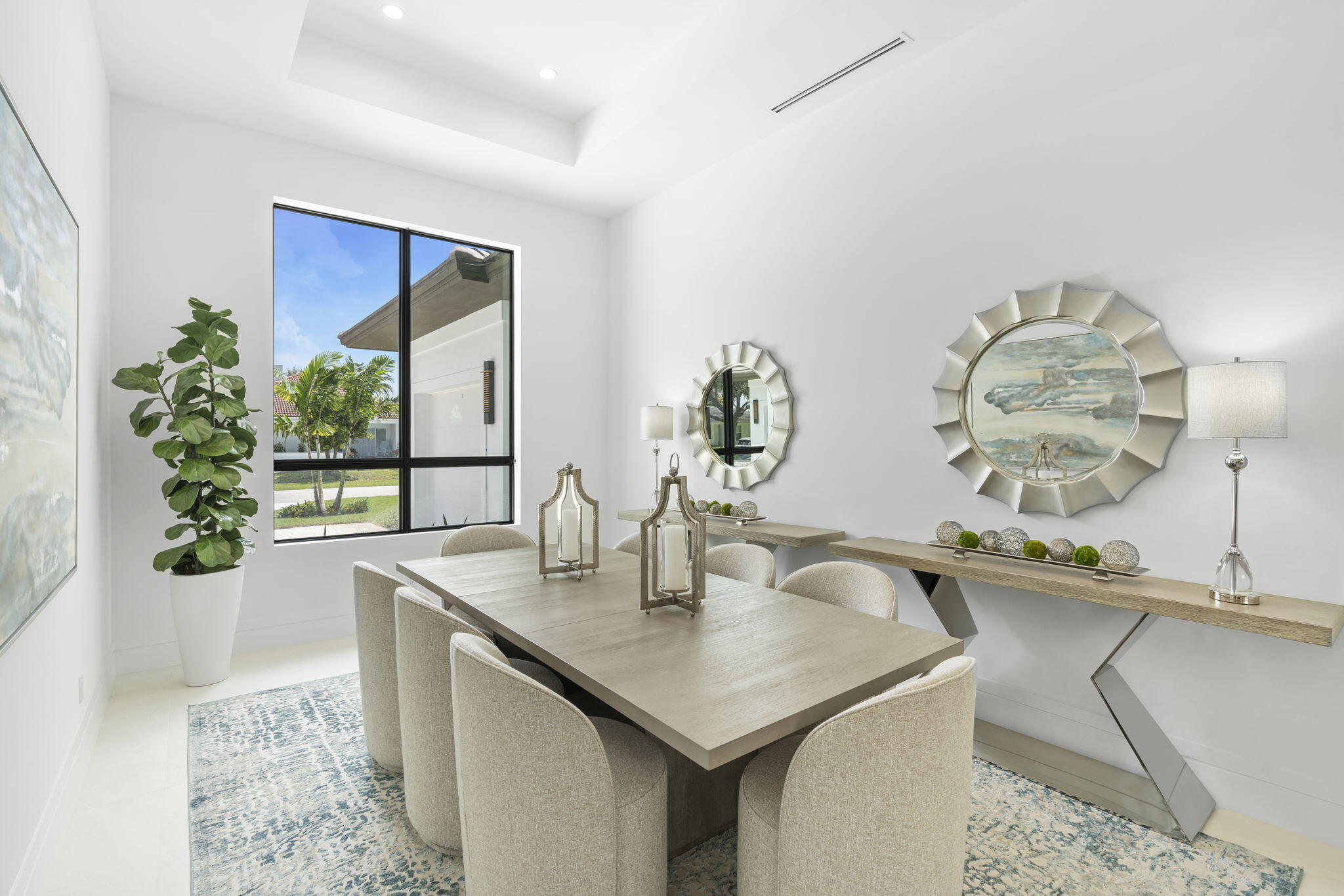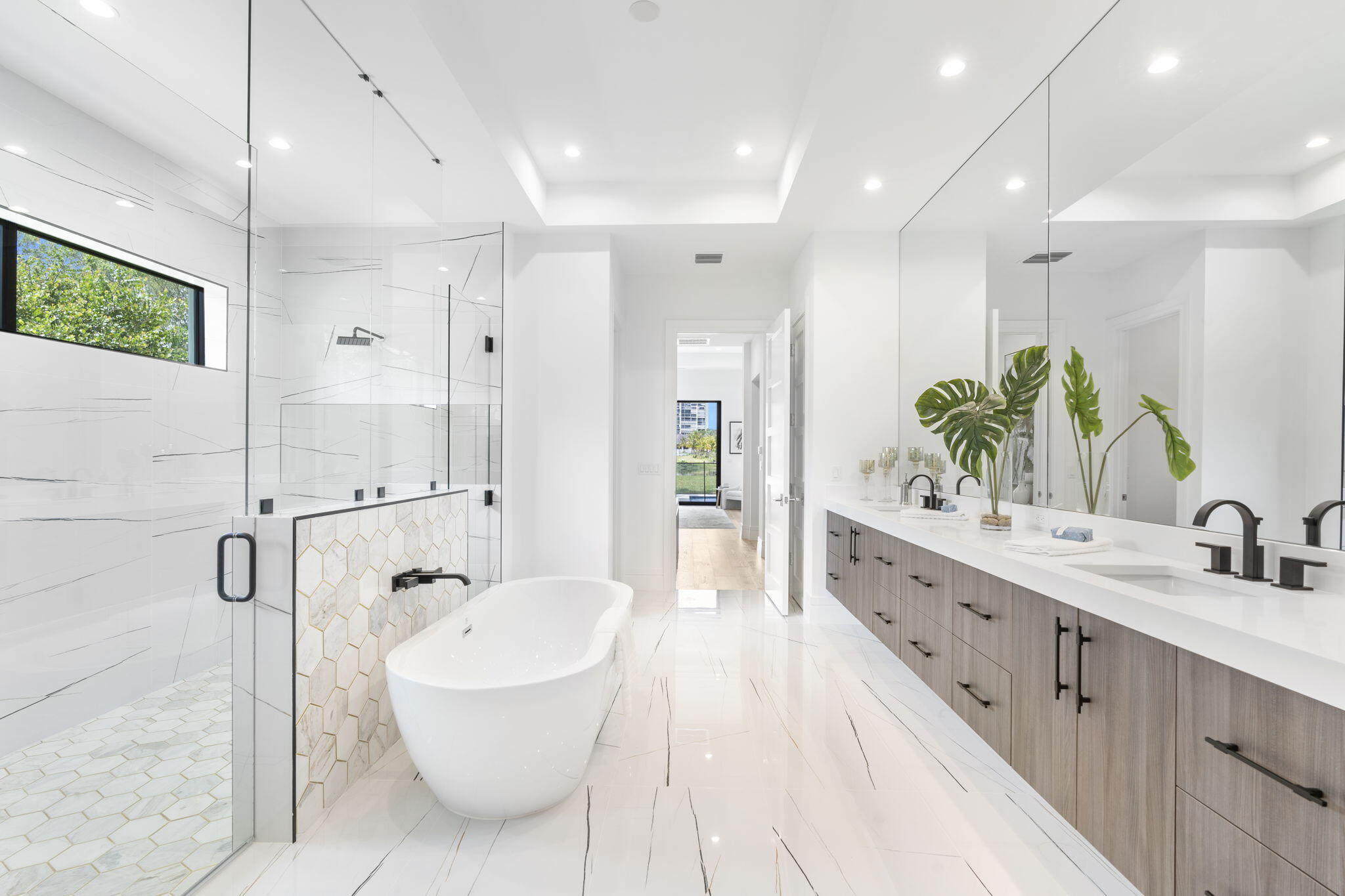 This new construction modern ranch home by Sam Fisch Development features ~6,000 square feet of luxury living on a nearly 1/2 acre lot in the Lands of the President gated community in West Palm Beach. The open-concept great room has soaring 12-foot ceilings and a chef's kitchen with walk-in pantry and spectacular 15-foot island. Seamlessly transition to the covered loggia, summer kitchen, and heated pool/spa, designed for al fresco dining and entertaining against the backdrop of serene lake views. The luxurious primary suite opens up to the outdoor oasis and also includes two expansive walk-in closets, double vanities, and an oversized double shower and freestanding tub. Enjoy waterfront living at its finest in this exclusive gated enclave!