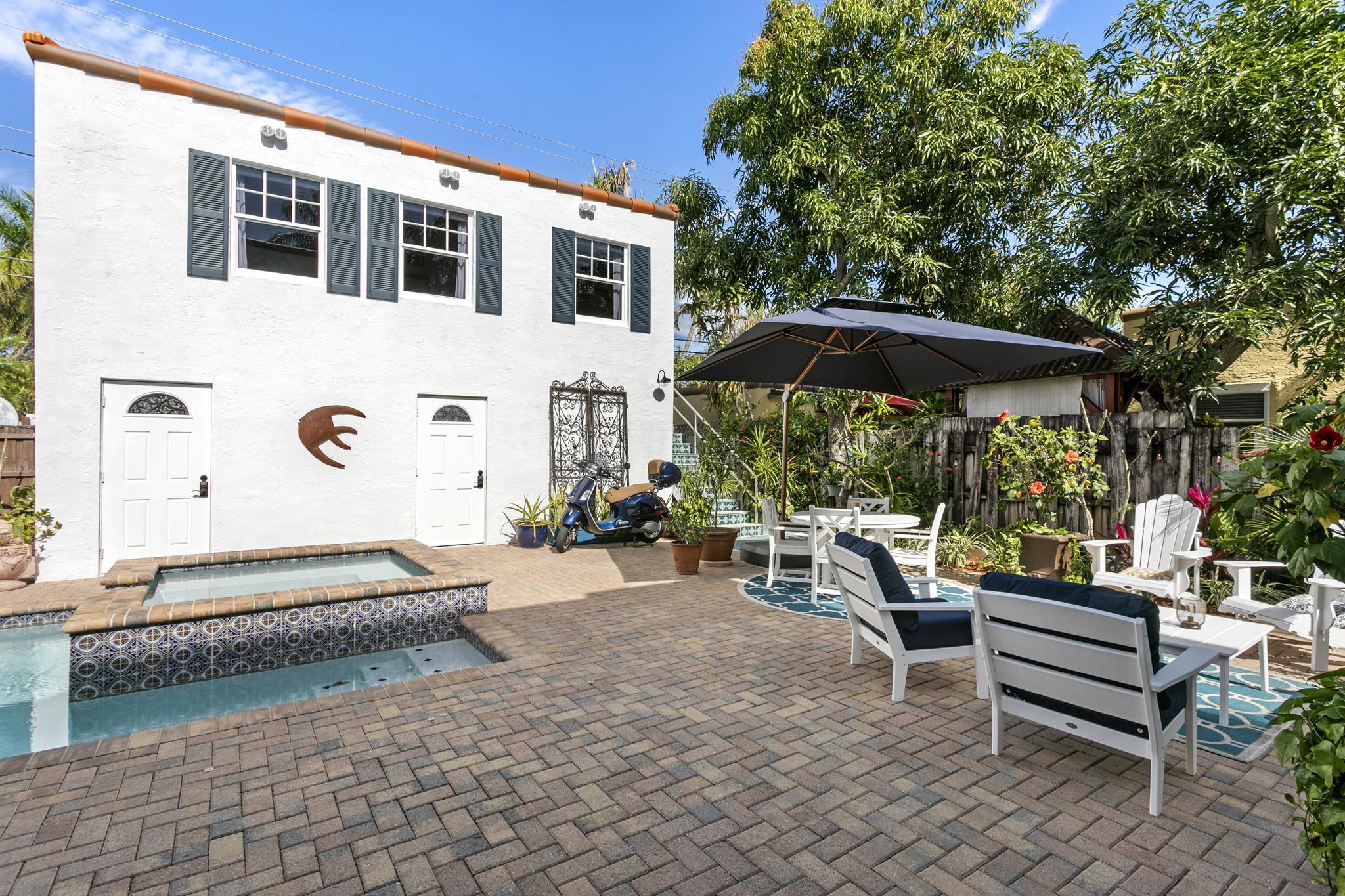 Beautifully restored 1926 Spanish w/ detached carriage house in Historical Old Northwood. Many recent permitted updates to both structures provides for easy maintenance for years! Property has been featured in the Northwood Historic Home Tour from 2014-2023. Full electric update 2014, clay barrel tile roof 2022, high efficiency A/C (2) 2022, exterior paint/doors/arch shutters 2024, new light fixtures/fans throughout 2023. Expansive charming/private rear brick courtyard w/36' lap pool/spa, heater 2023. Fresh, light-filled interiors also has many updates throughout, yet pays homage to its history w/ original solid hardwood floors and 10' ceilings. Main house is 3/ 1-1/2 w/ dedicated separate laundry & pantry and large closets throughout.