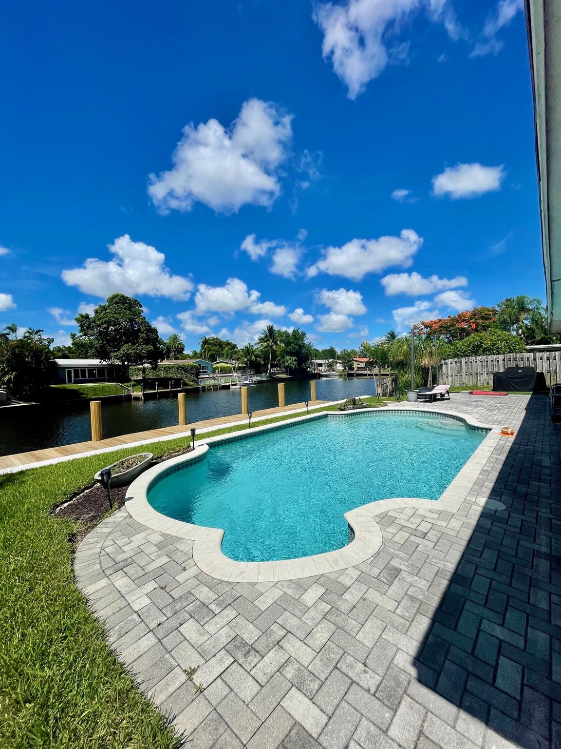 OWNERS SAY SELL!!! ATTN BOATERS/INVESTORS-GREAT DEAL ON THIS OCEAN ACCESS/POOL HOME-Owners Spent $140k on New 90Ft Seawall & Dock-Fixed Bridges-Can Handle up to 11 Ft Boat Draft-Plantation Harbor 3/2 attach.2 Car Carport-Interior Updates Include:Remodeled Kitchen & Cabinets , S/S Appliances, Granite Counters, Both Bathrooms were Updated w/Marble-Hurricane Impact Windows, Interior Utility/Laundry Room, Screened Patio Overlooks Pool & Water-"Paver" Pool Decking- Swimming Pool Professionally Maintained-Backyard Fenced on Both Sides - "Ice Cold" Central A/C-Tiled Roof (2016)-Exterior Electric Service Updated (2021) - Home was Treated for Drywood and Sub Termites (2022) Both under Warranty"Quiet" Cul-De-Sac-Minimal Noise/Traffic. NE Corner Screen Patio has Isolated Termite Damage to Beams.