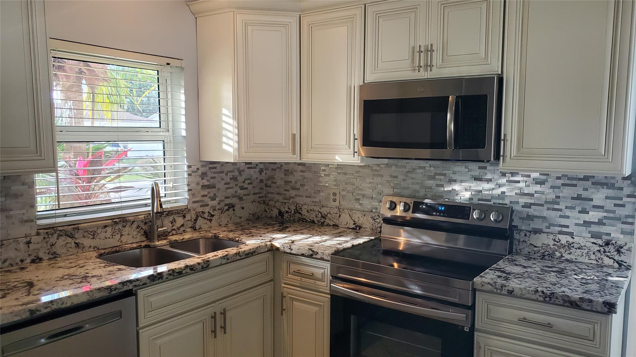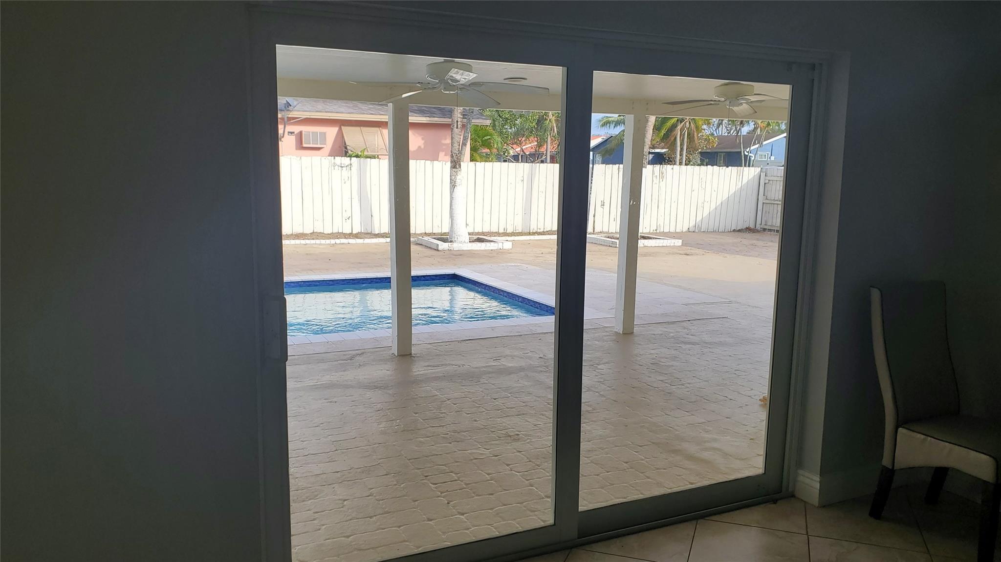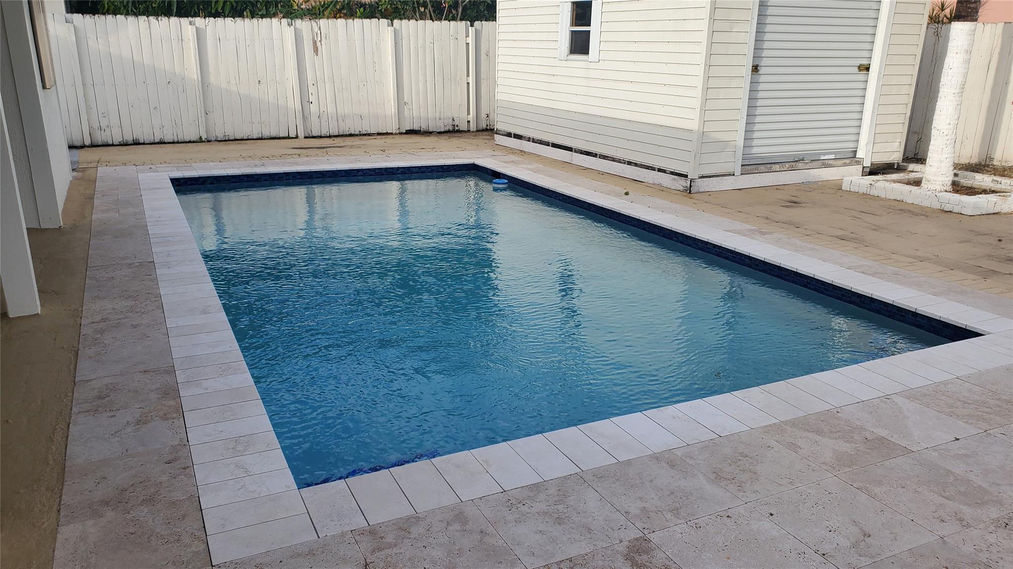 Brand-new roof! This 3-bedroom, 2-bath pool home is nestled on an oversized corner lot, boasting an exceptional swimming pool and ample space for entertaining. Enjoy the outdoors under a covered patio, and benefit from the convenience of a super-sized storage shed. Safety and comfort are ensured with high-impact doors and windows installed throughout the home, excluding the bonus room, with all enhancements properly permitted and finalized. The remodeled kitchen shines with white cabinets, granite countertops, and a stylish backsplash, complementing the home's modern aesthetic. Stay cool with a 3-year-old A/C system, and admire the sleek knockdown ceilings and hi-hat lighting that add a touch of elegance to this captivating residence!