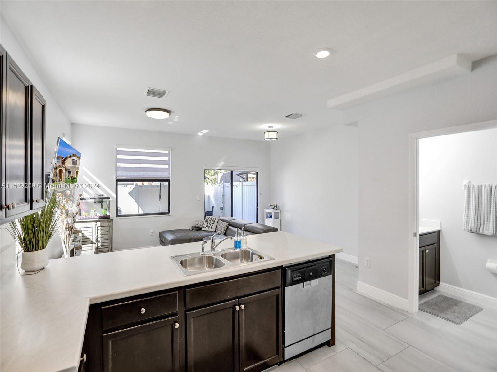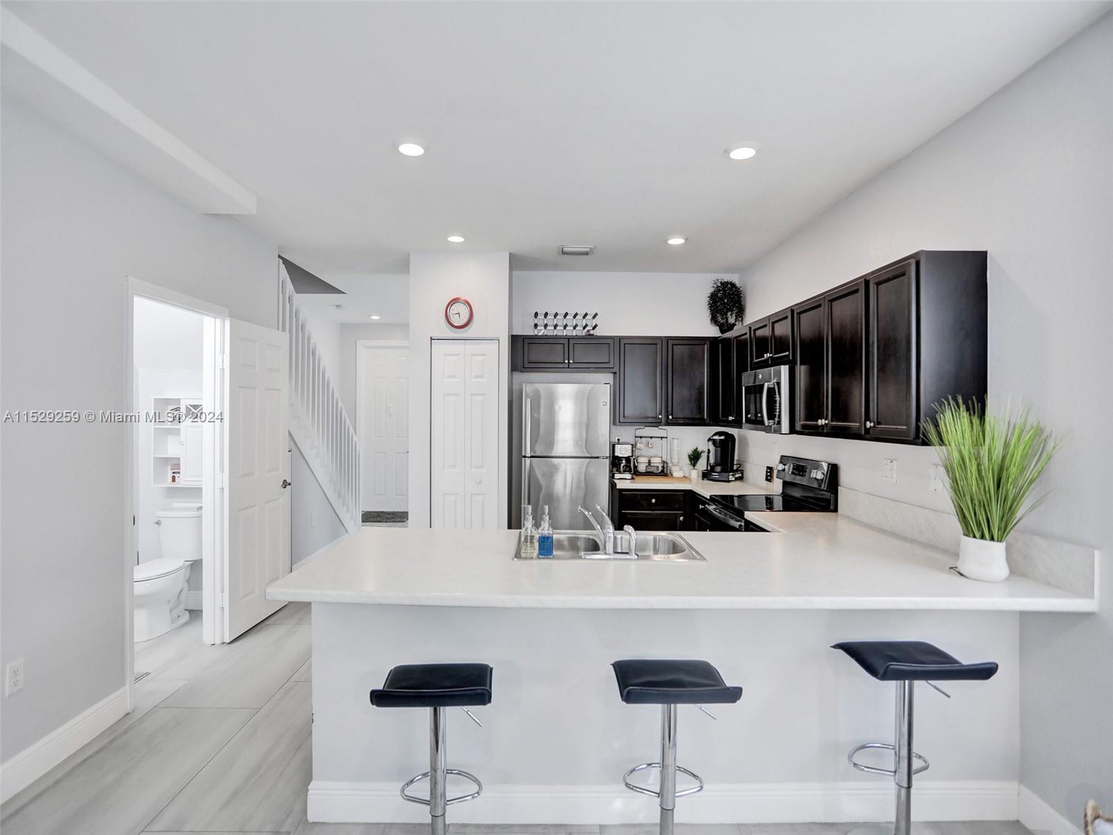 Beautifully updated 2 bedroom 2.5 bath corner townhouse in excellent community of Bonterra. Property has been updated with large format modern tile in the first floor and vinyl in the second floor. There is modern blinds through out the home which allow the perfect amount of light in the property while still being stylish. Corner unit allows for amazing natural light to enter the home. Backyard is fenced and has pavers installed to be able to entertain and have BBQs. The kitchen is an open style kitchen which faces the living area so that it allows for entertaining.On the second floor you will find the Primary Bedroom with walk-in closet. The Primary bathroom has updated shower with glass enclosure. Second bedroom also has walk in closet and nice bathroom. Soccer, basketball, pool and more