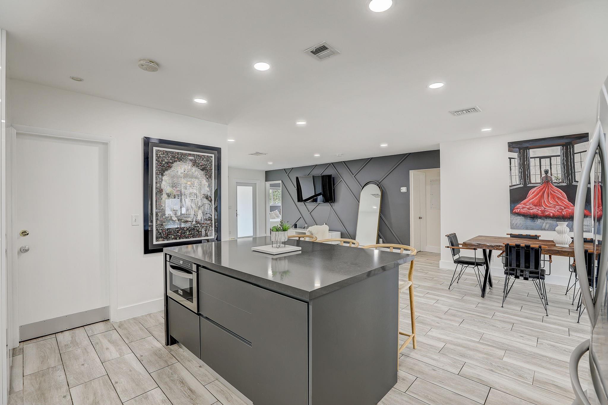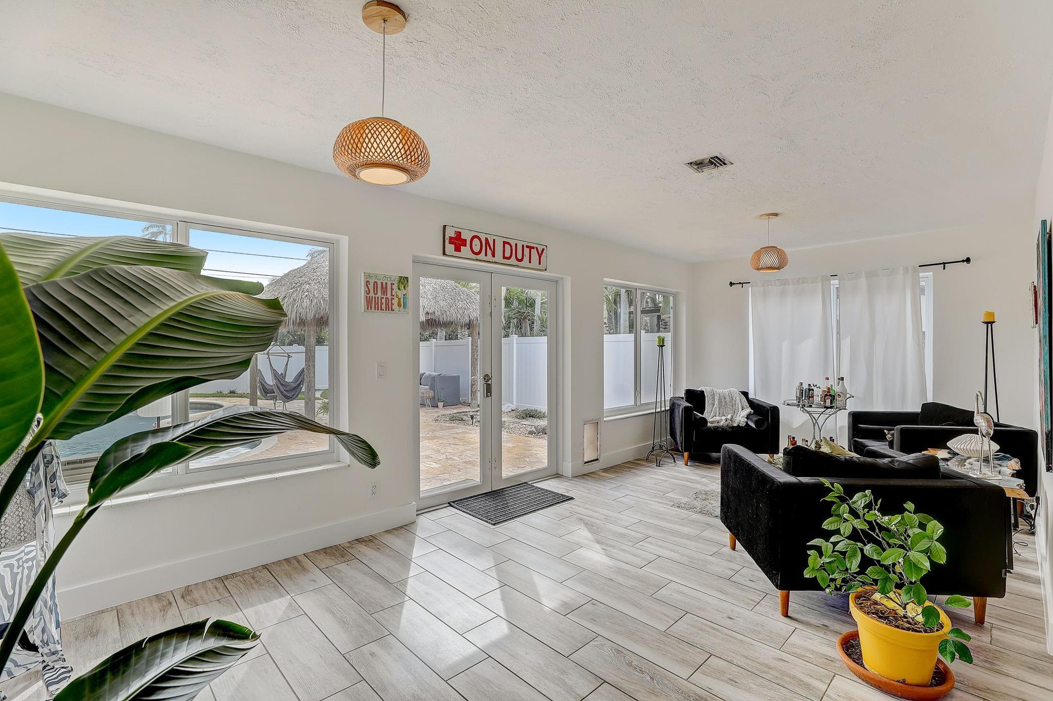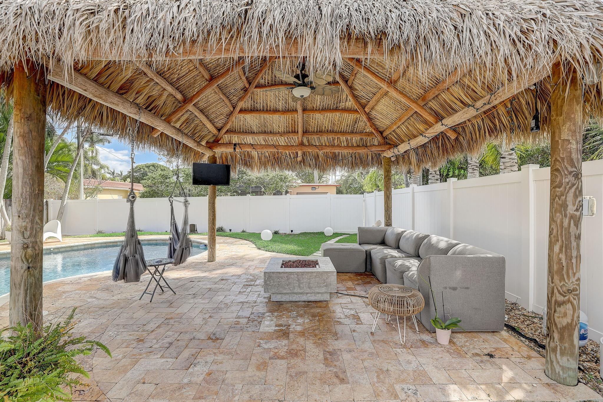 This is the ultimate Florida home! Immaculately maintained, fully renovated 3 Bed 2 Bath home. The backyard is a paradise. Large salt water & heated pool. Awesome Tiki and yard space. Fully fenced. Perfect for entertaining. Inside features a spacious living room & dining area with lots of natural light. Beautiful eat-in kitchen with large island, high end cabinetry and stainless steel appliances. Tile floors throughout. Two beautifully remodeled bathrooms. Master has an en-suite. Custom black out shades in all the bedrooms. Impact windows & doors throughout. Tile Roof 2018. One car garage. Less than 2 miles from the beach, golf, Hollywood boardwalk. Close to many restaurants & shopping. Paradise awaits!