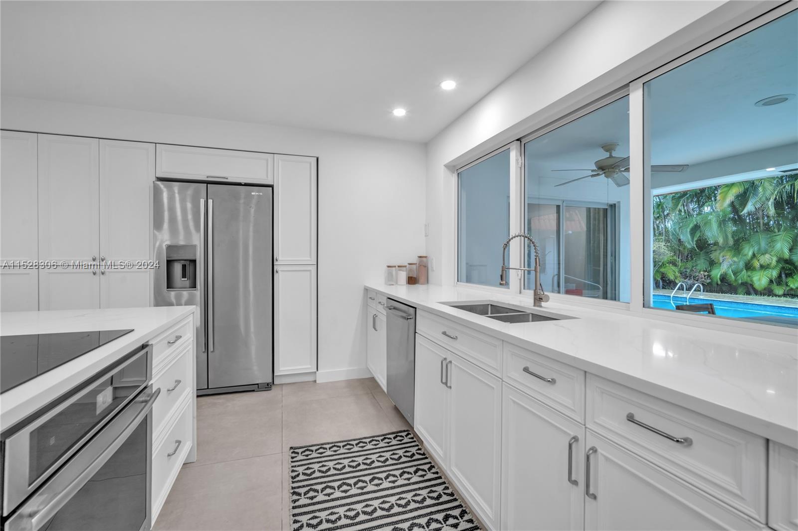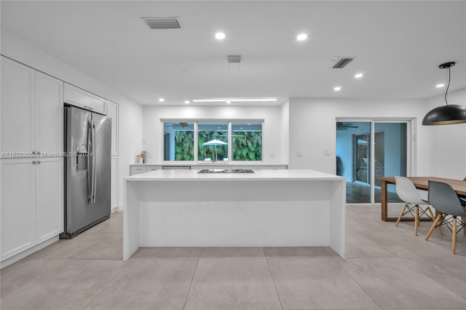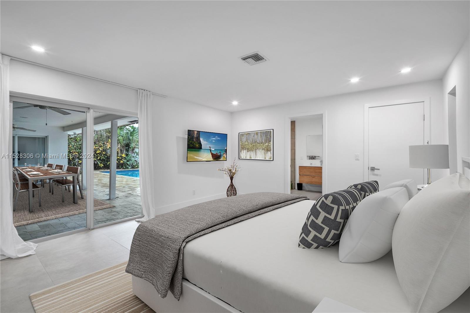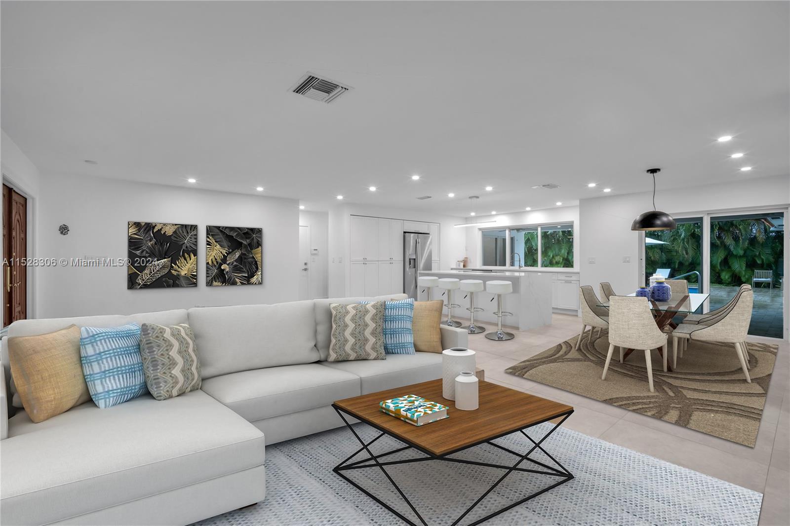 Beautiful location in Hollywood Lakes surrounded by waterfront homes. A few houses from intracostal this pool home with 2-car garage is situated on an oversized lot. As you approach the home, you are greeted by lush landscaping and a grand circular driveway, providing ample parking spaces. Step inside to discover a beautifully renovated kitchen, featuring a center island with quartz countertops/waterfall. The home provides an open concept with the kitchen/living/dining area. The Master Suite has access to the pool/patio area with a renovated glass-enclosed shower. Split floorplan with tile throughout & renovated bathrooms. Oversized pool with a covered terrace and Travertine marble pool deck. Impact windows, sprinkler system, and laundry room! A must-see home close to the famous Broadwalk.