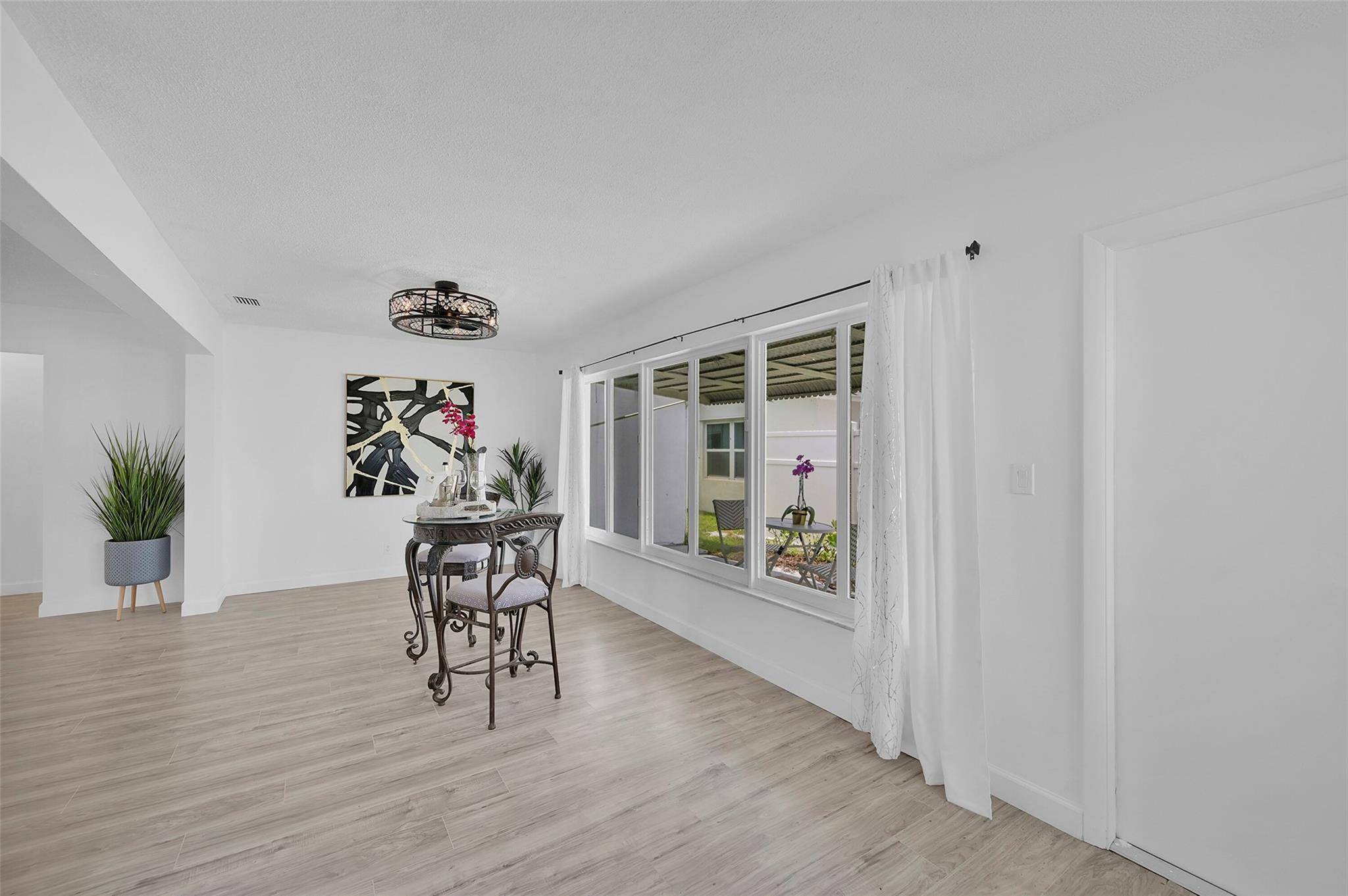 TURNKEY 2-bedroom, 2-bathroom single-family home is situated in a 55+ community and boasts a 1-car garage, along with FREE golf for residents. Embrace resort-style living with a low HOA fee covering amenities like a shuttle bus, a 9-hole 3-par golf course, exterior house painting, water, landscaping, 2 pools, shuffleboard, billiards, and 2 clubhouses, along with scheduled golf leagues. PETS ARE WELCOME! Luxury vinyl flooring throughout, while the kitchen showcases quartz countertops, SS appliances, and white cabinetry. Both bathrooms have been renovated with porcelain tile and glass enclosures. BRAND NEW IMPACT WINDOWS Located less than 3 miles from the beach, upscale restaurants, Pompano redevelopment areas, Pompano Pier & Casino, Schedule your tour today!