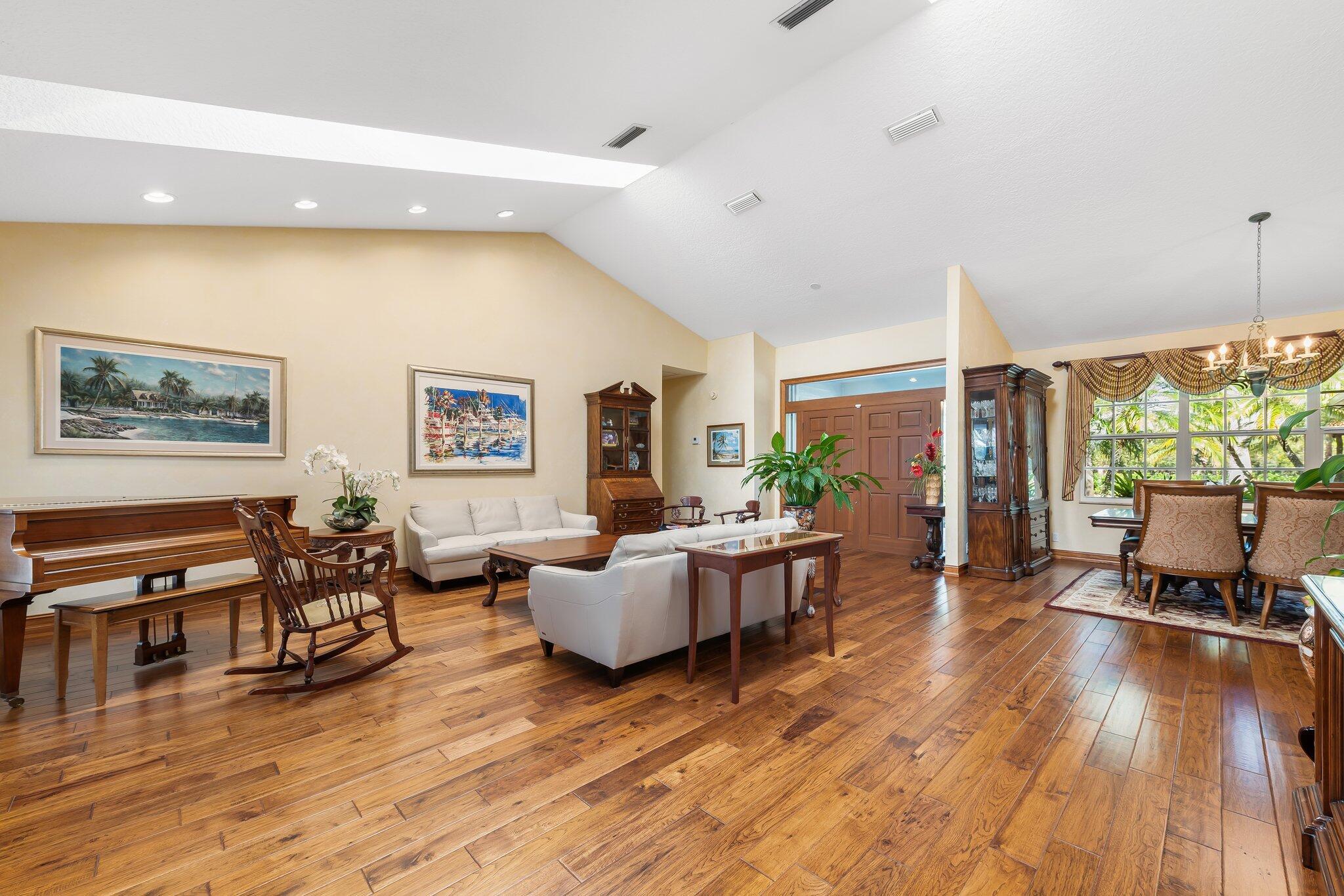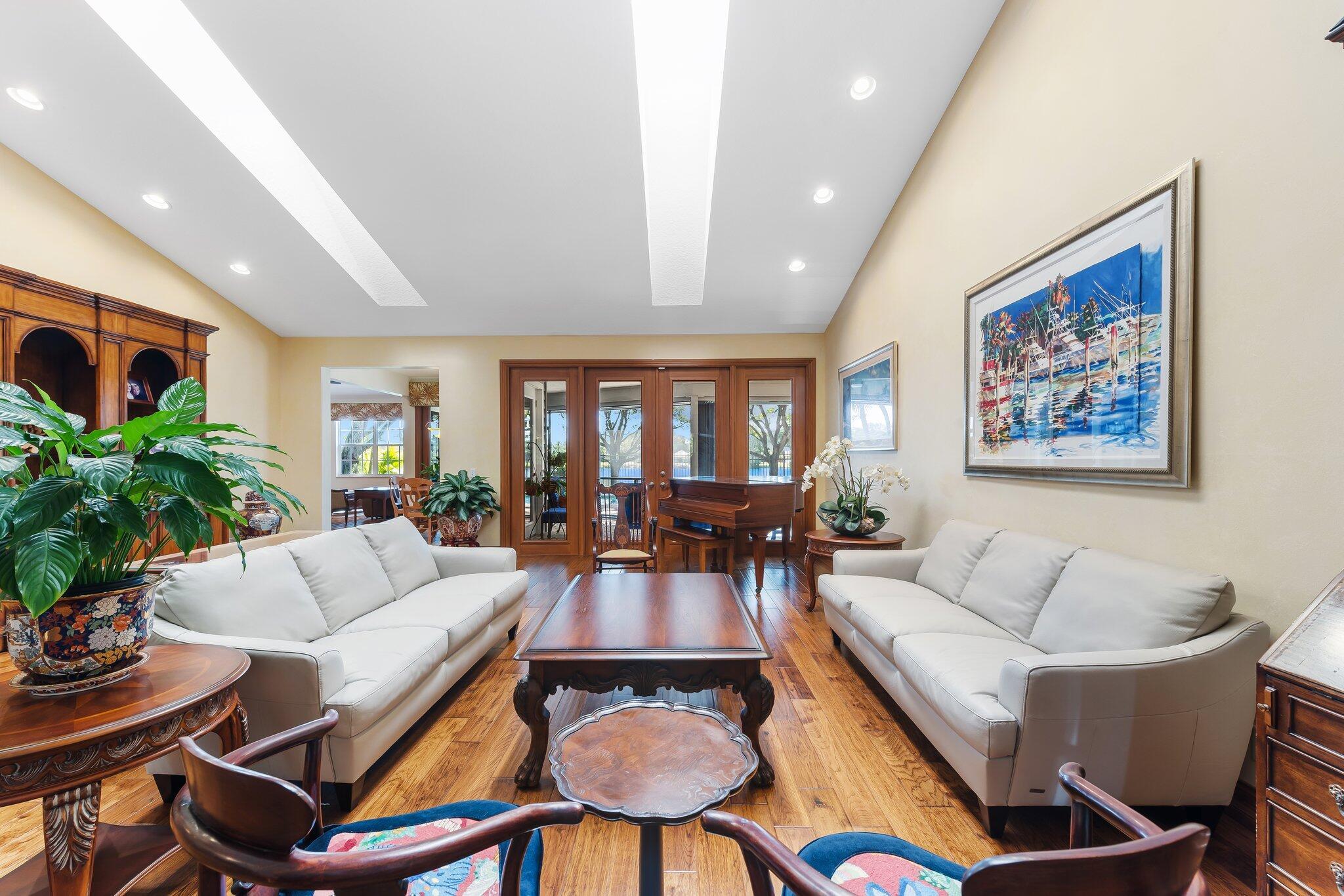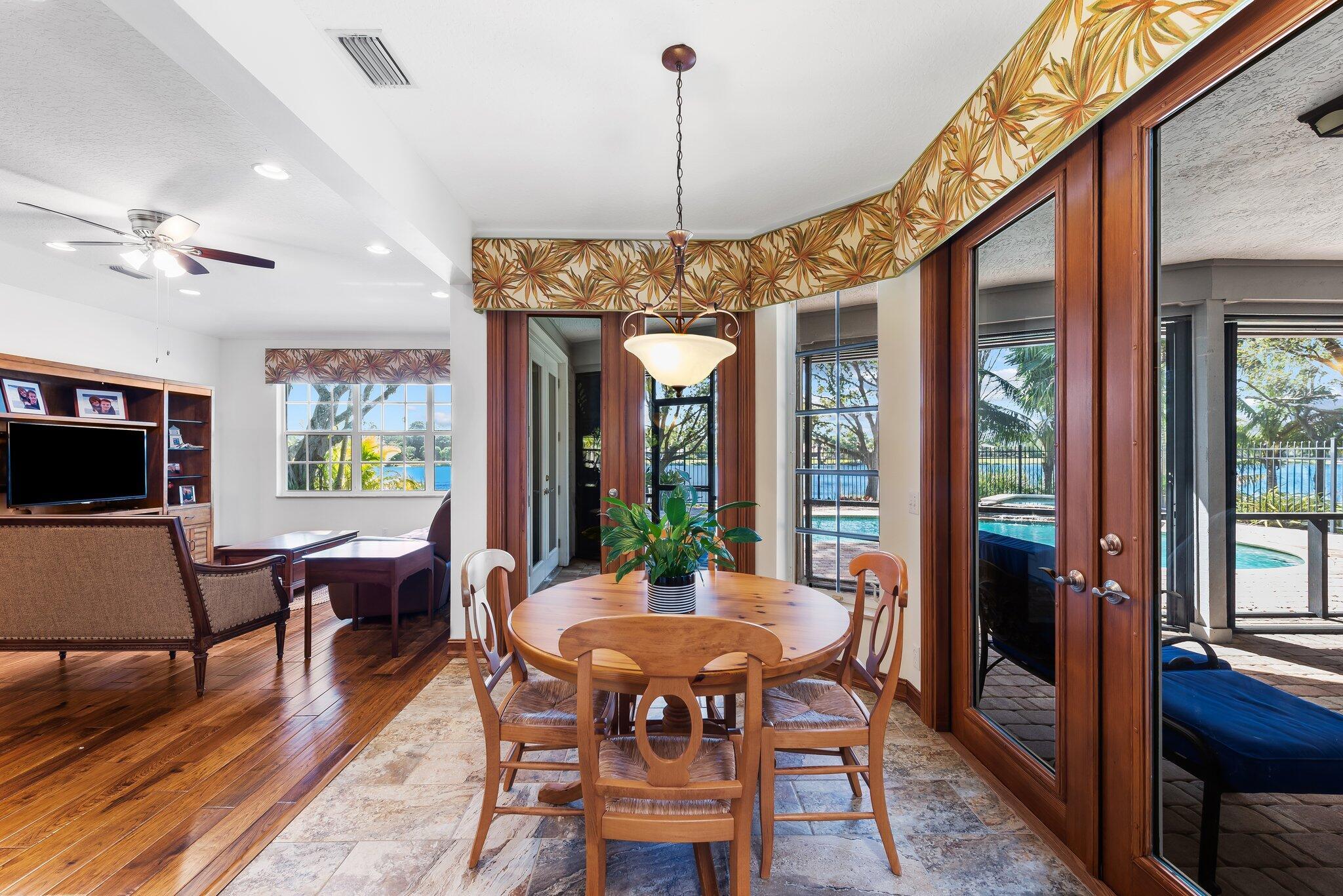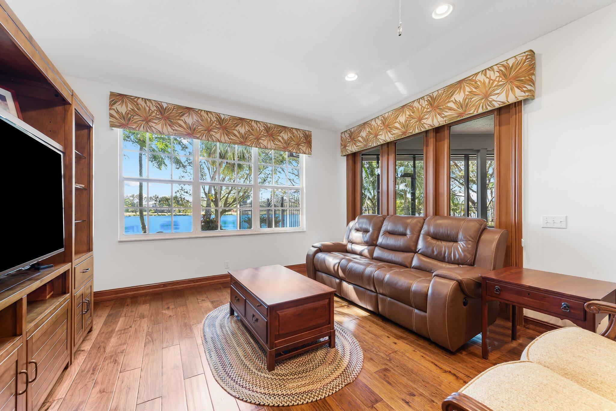 LAKEFRONT ESTATE on WATER SPORTS LAKE. Beautiful custom updated home on just over one acre. Lovely landscaping. A 700 sq. ft. dock in your back yard. Split bedroom plan. Quite, gated community. Tennis courts too. Minutes from Wellington Polo Equestrian Grounds. Move in condition. Mahogany cabinets and flooring to match. Large media room, beautiful wood ceiling. Master bedroom opening onto large screened patio. Cedar wood closets. Impact windows. Impact French doors. Full sun pool with cabana bath. Fabulous lake views and sunsets. Built for comfort and relaxation. Oversized 3 car garage with 1008 sq. ft. unfinished upstairs future apartment or room or your design. Photos do not do this home and development justice. Close to all major highways, restaurants, parks, fairgrounds, and schools.
