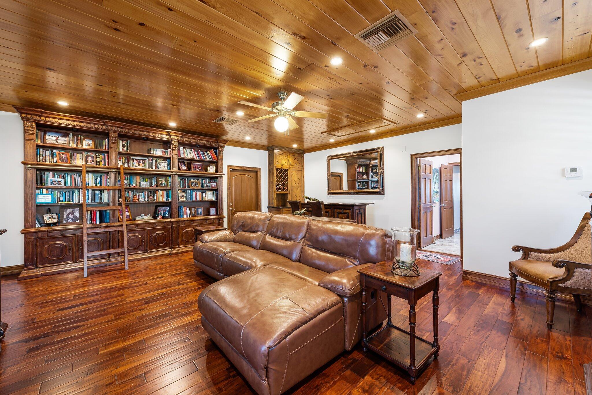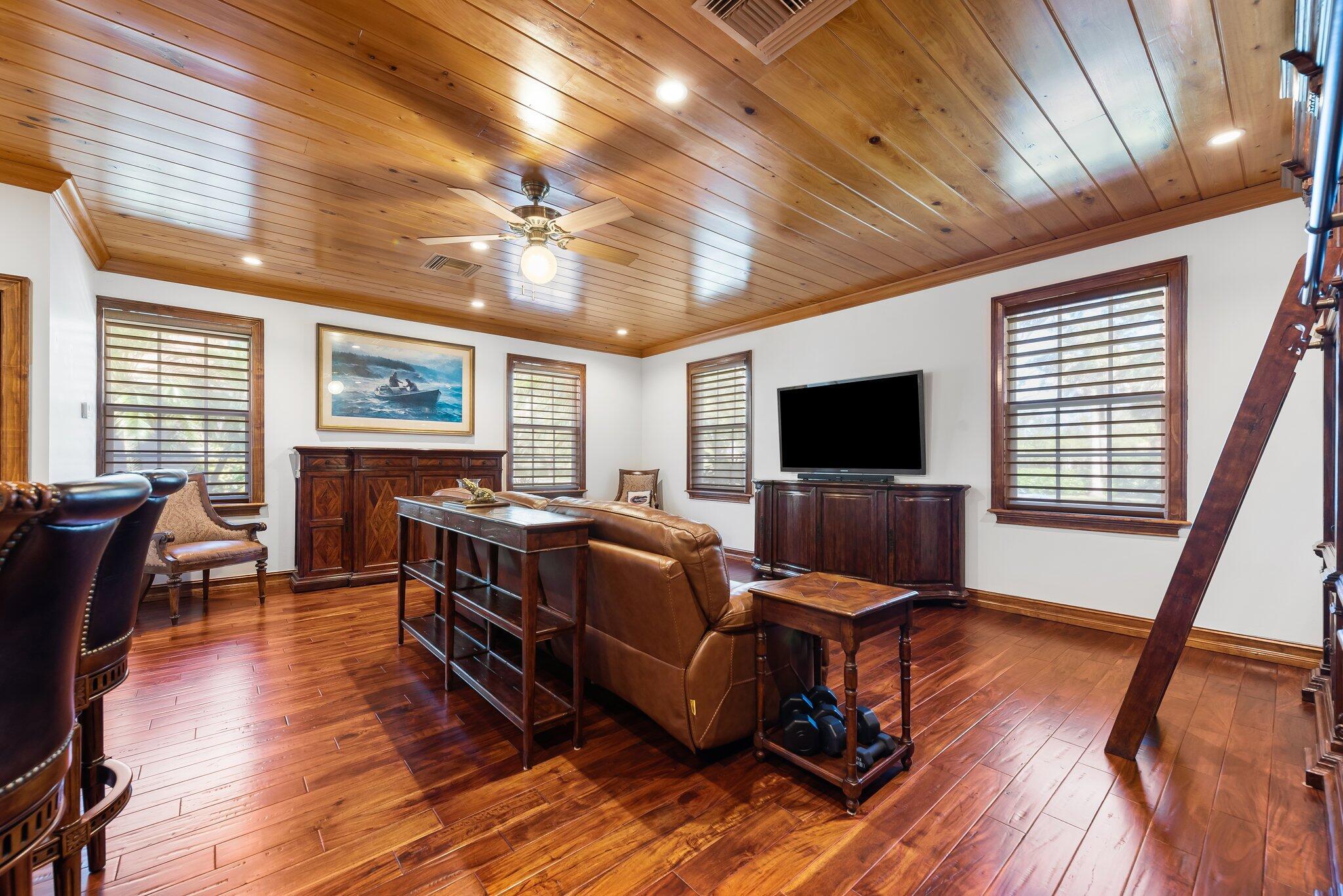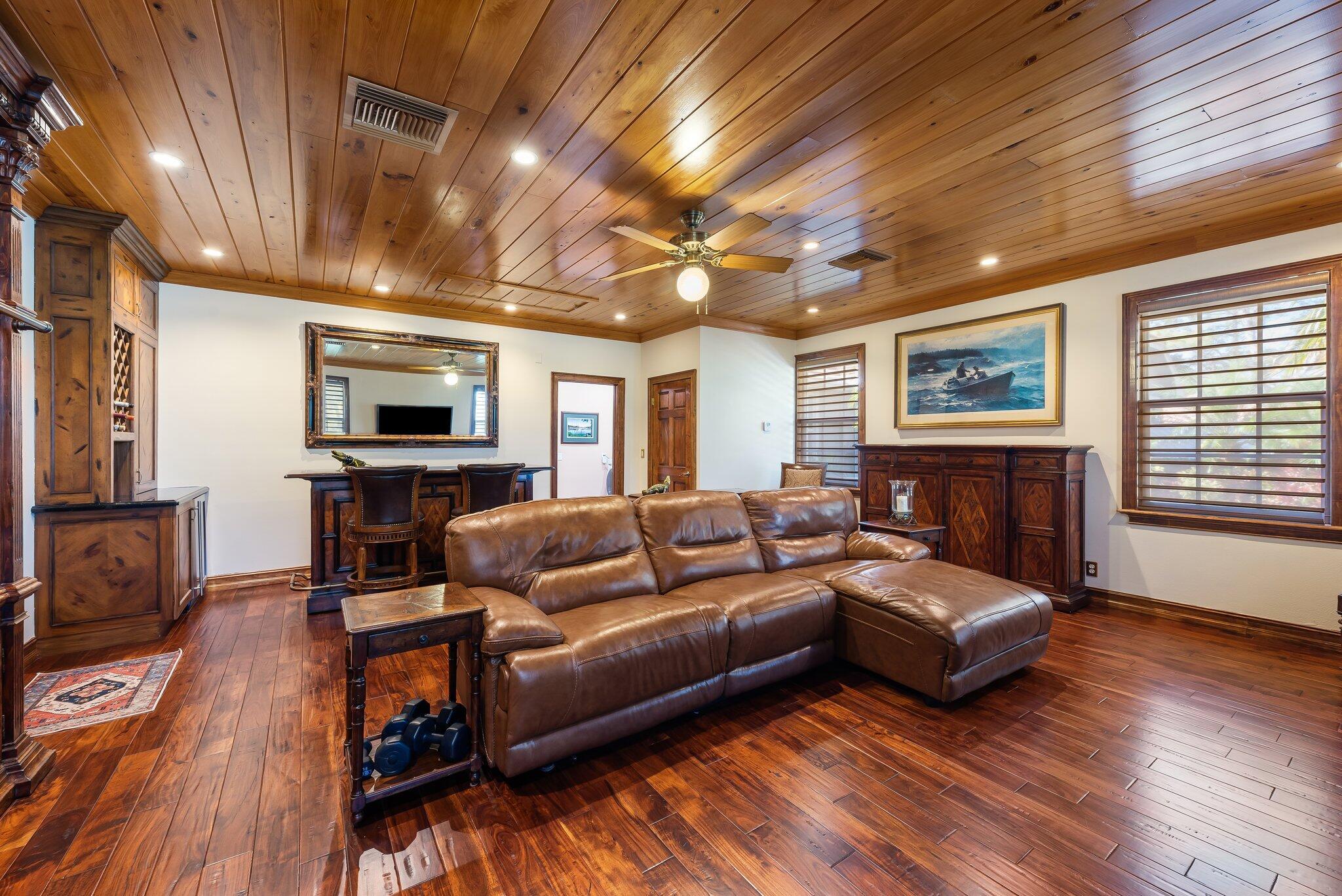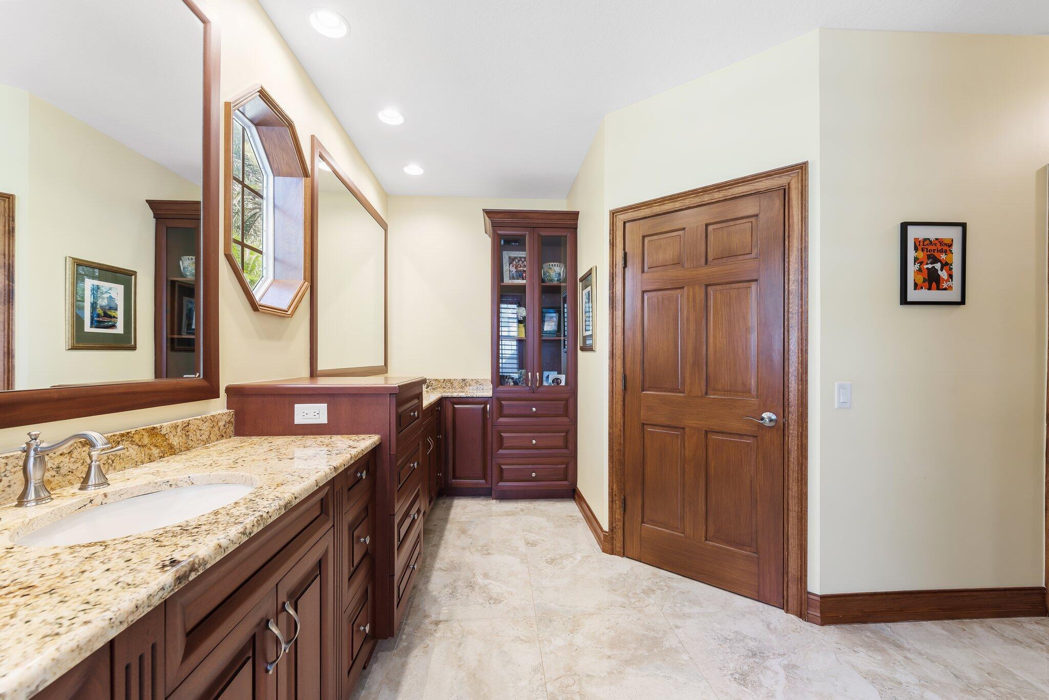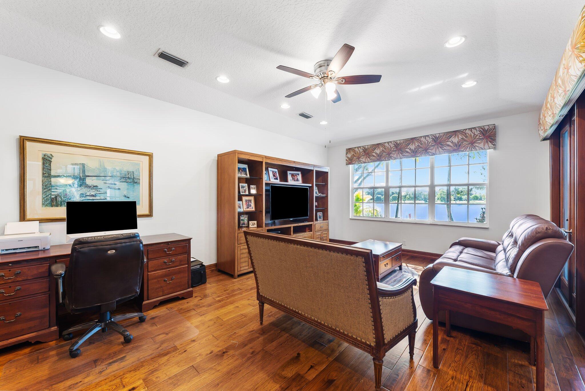 LAKEFRONT ESTATE on WATER SPORTS LAKE. Beautiful custom updated home on just over one acre. Lovely landscaping. A 700 sq. ft. dock in your back yard. Split bedroom plan. Quite, gated community. Tennis courts too. Minutes from Wellington Polo Equestrian Grounds. Move in condition. Mahogany cabinets and flooring to match. Large media room, beautiful wood ceiling. Master bedroom opening onto large screened patio. Cedar wood closets. Impact windows. Impact French doors. Full sun pool with cabana bath. Fabulous lake views and sunsets. Built for comfort and relaxation. Oversized 3 car garage with 1008 sq. ft. unfinished upstairs future apartment or room or your design. Photos do not do this home and development justice. Close to all major highways, restaurants, parks, fairgrounds, and schools.