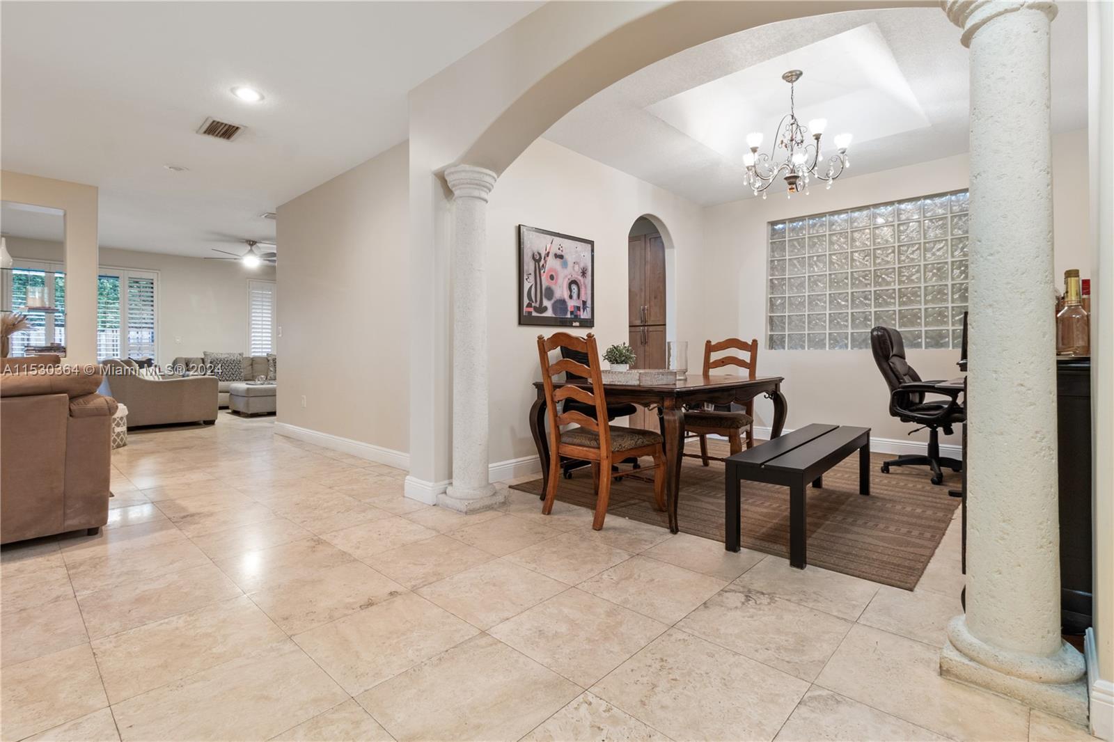 Welcome to the gated community of Goldvue Estates with beautiful & spacious home with a serene atmosphere. This one floor property features a comfortable living room area, separate formal dining room, an inviting open kitchen, and family room. Enjoy a free form pool on an enjoyable sized patio. Excellent location, in the heart of Doral. Close to fine restaurants, Shopping Malls and entertainment. Walking distance to Walgreens, Publix & Starbucks, easy access to the main streets and highways, and close to Excellent Schools. LOW HOA $260, 24Hs security guard. Community amenities are a pool and a kid’s playground.