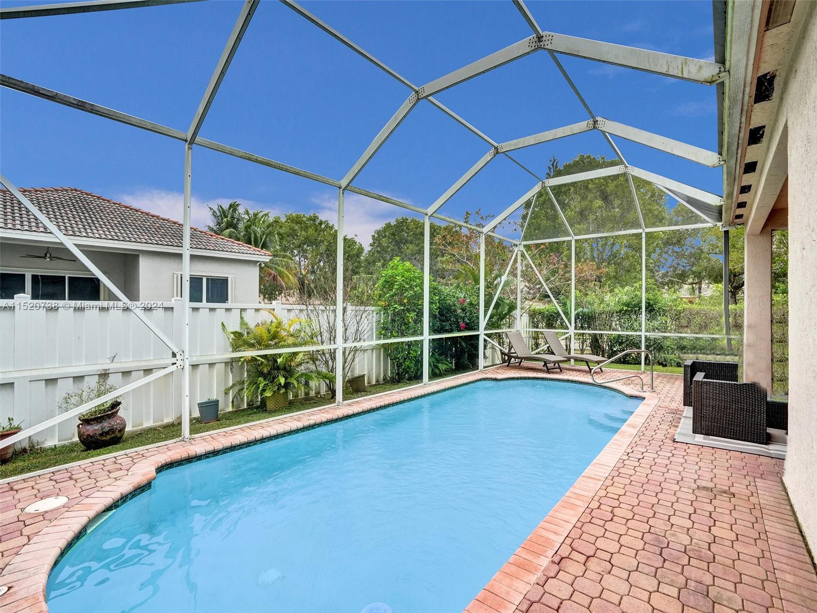 Welcome to this stunning one-story pool home in the resort-style community of Pembroke Falls. This 3-bedroom, 2.5-bathroom corner lot home features an open layout with high ceilings, stainless steel appliances, and a 2-car garage. Outside, you'll find a screen patio and a private pool perfect for entertaining. Centrally located in a gated community, you'll be close to shops, restaurants, and top schools. Club house features oversize pool, jacuzzi, fitness center, tennis, pickleball and basketball courts and 4 manned 24/7 security gates. Experience luxury living at its finest - schedule a showing today!