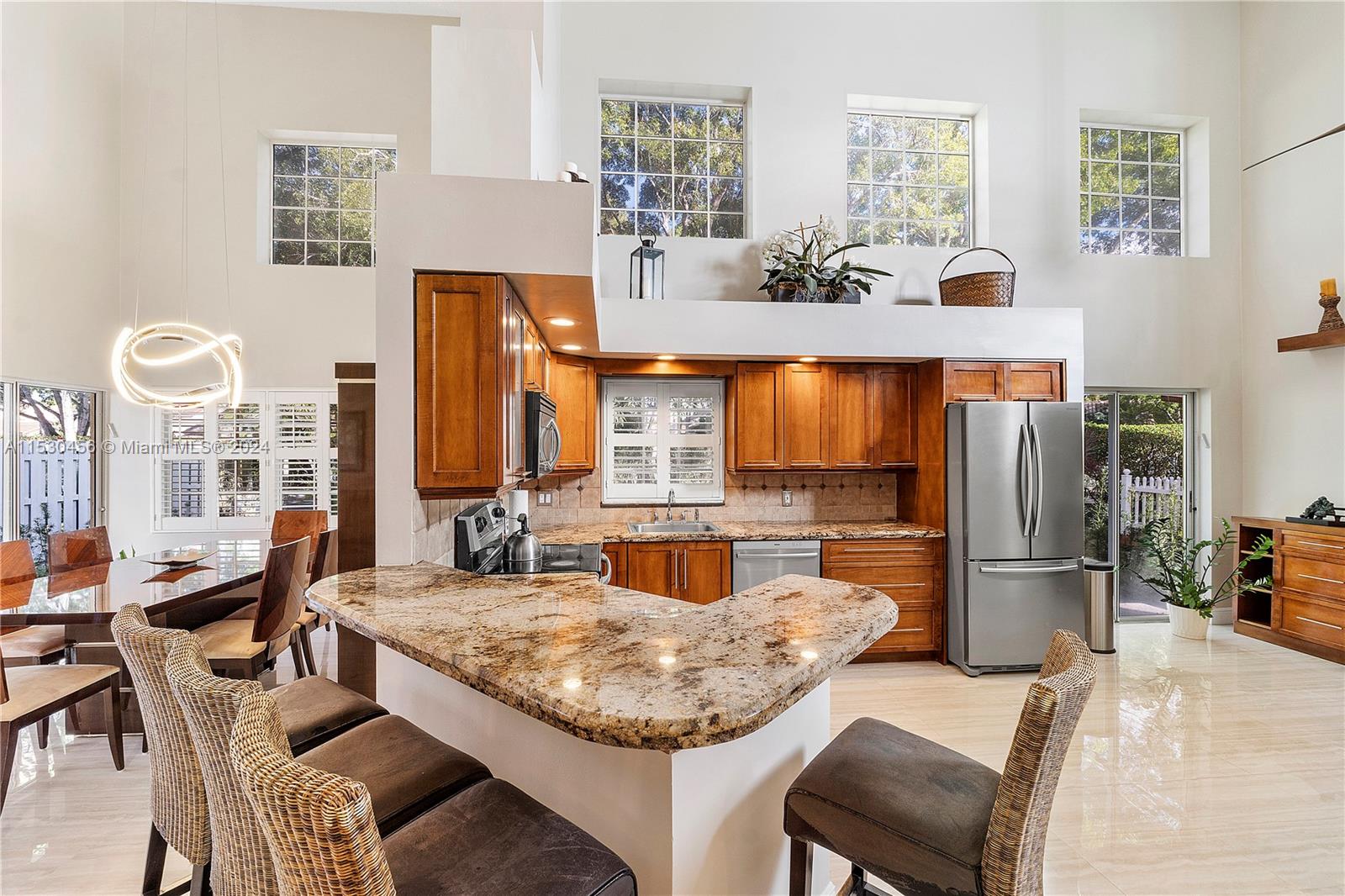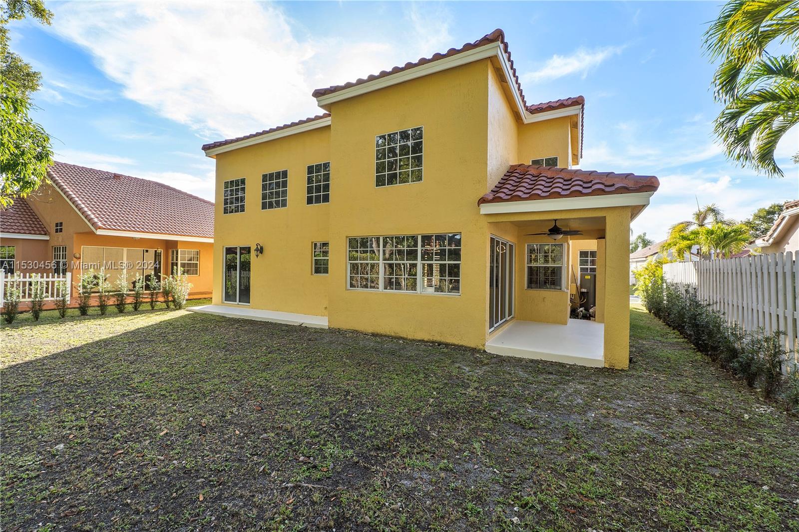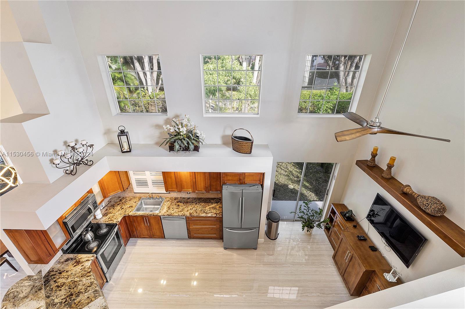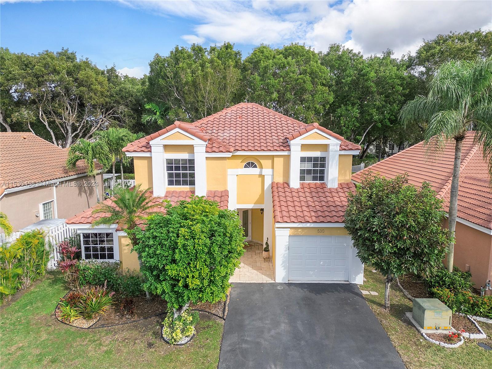 A magnificent modern Mediterranean style single-family home in the desirable boutique gated community of Bermuda Springs in the heart of Weston. The property features 3 bedrooms, 2.5 bathrooms (Primary downstairs, secondary bedrooms with Jack & Jill Bathroom, upstairs), soaring 18' ceilings in the common area and many upgrades throughout. NEWER roof 2019, top of the line NEW Rheem energy efficient Prestige series HVAC 2023, HVAC UV light, NEW Rheam Water-heater 2023, Impact glass double front door and garage door, LED lighting fixtures in common areas, wood kitchen cabinets, granite countertops, SS appliances. Spacious backyard surrounded by mature trees. Walking distance to Indian Trace elementary and houses of worship. One of the lowest HOA fees in Weston.
