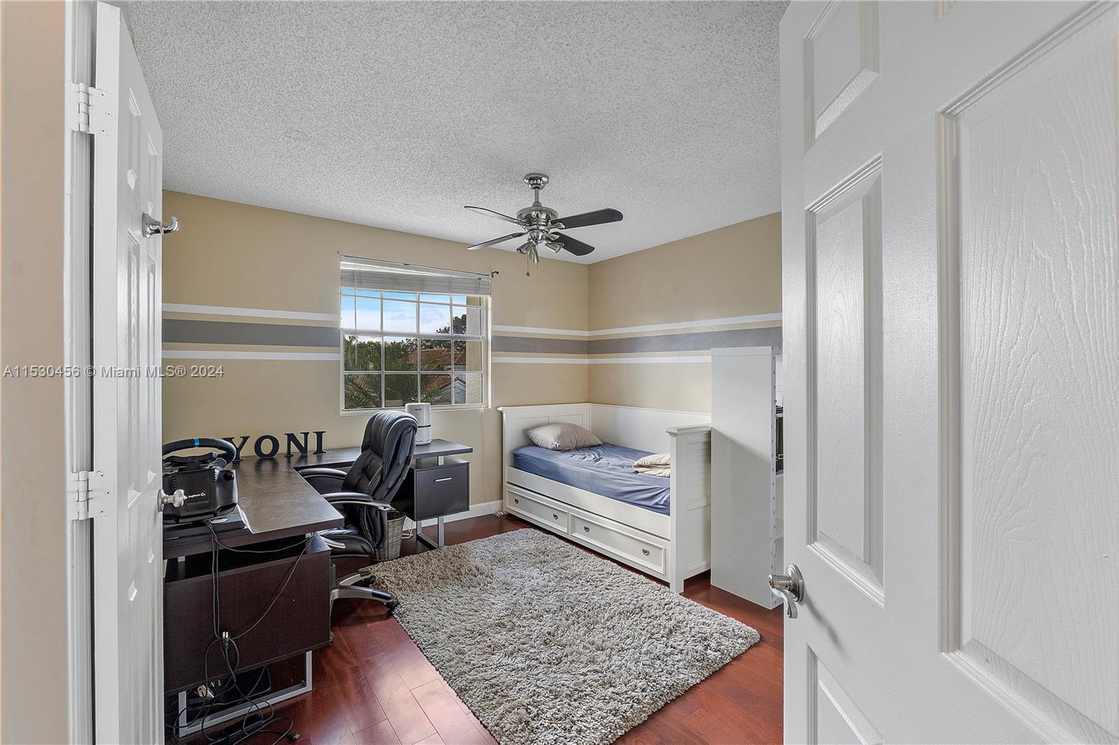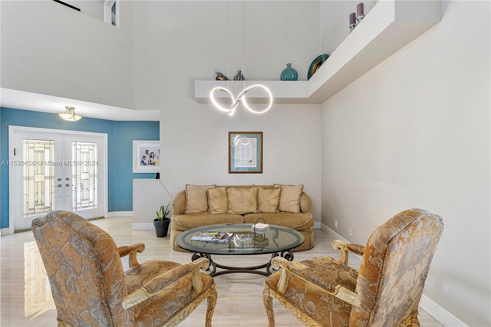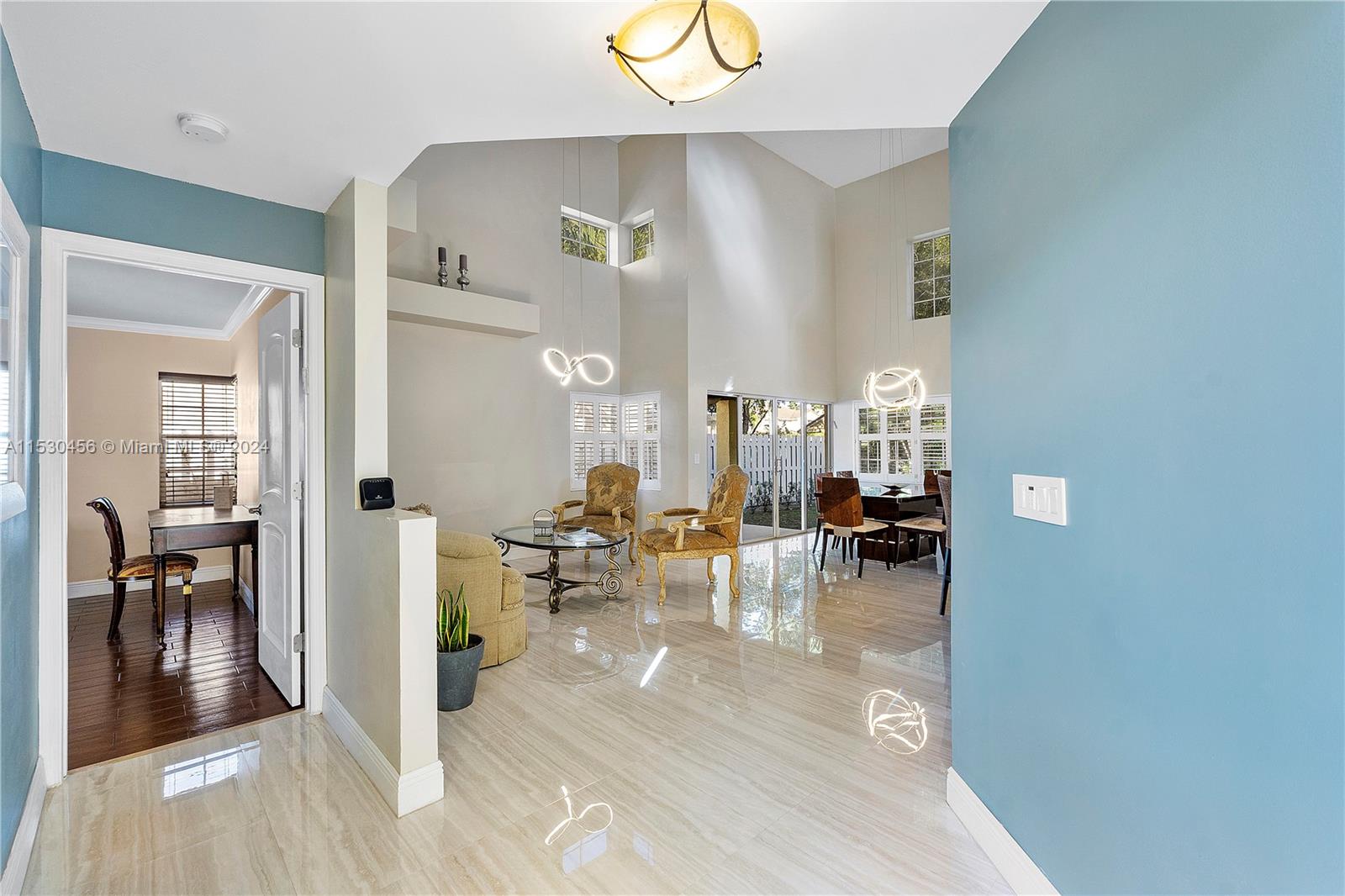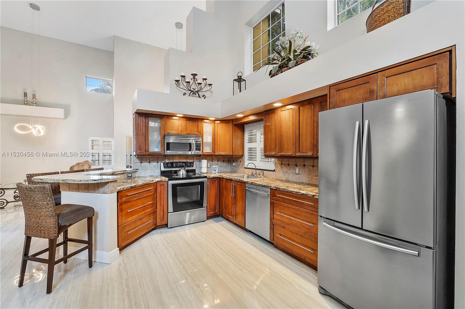 A magnificent modern Mediterranean style single-family home in the desirable boutique gated community of Bermuda Springs in the heart of Weston. The property features 3 bedrooms, 2.5 bathrooms (Primary downstairs, secondary bedrooms with Jack & Jill Bathroom, upstairs), soaring 18' ceilings in the common area and many upgrades throughout. NEWER roof 2019, top of the line NEW Rheem energy efficient Prestige series HVAC 2023, HVAC UV light, NEW Rheam Water-heater 2023, Impact glass double front door and garage door, LED lighting fixtures in common areas, wood kitchen cabinets, granite countertops, SS appliances. Spacious backyard surrounded by mature trees. Walking distance to Indian Trace elementary and houses of worship. One of the lowest HOA fees in Weston.