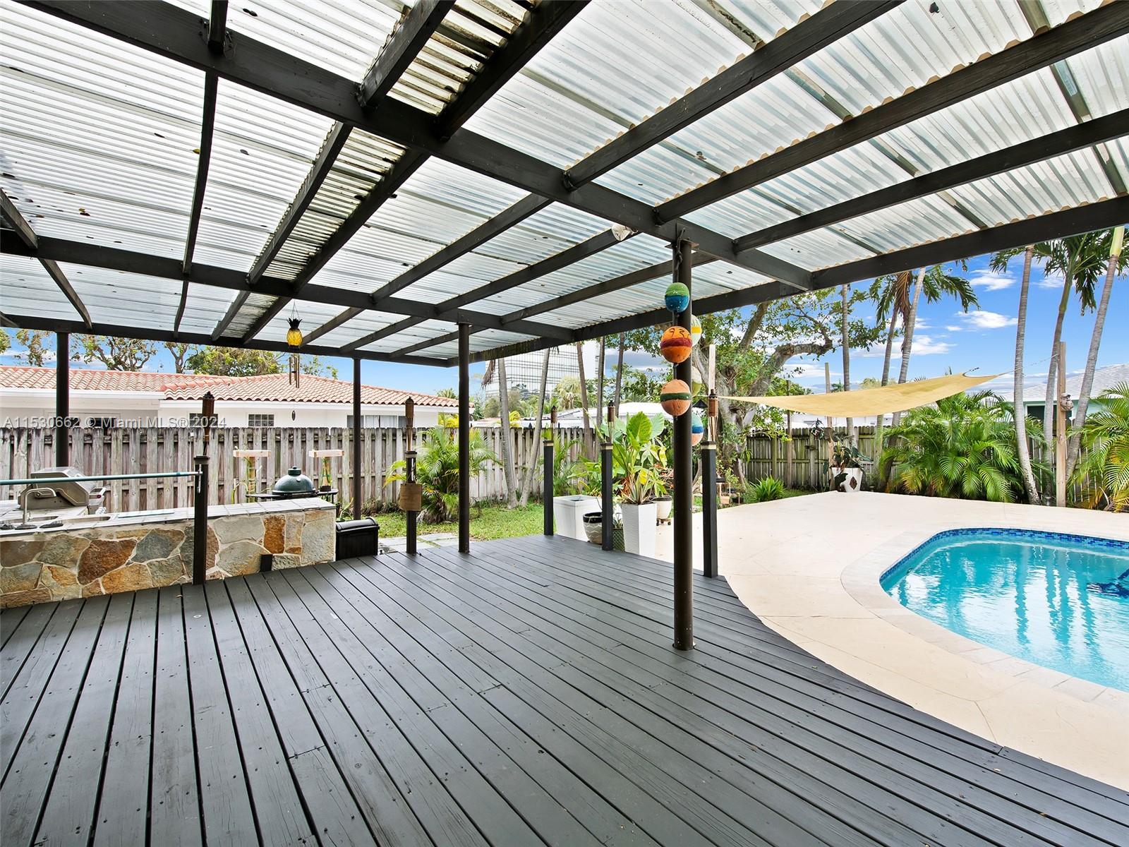 Welcome to 3444 Pierce Street, a stunning residence in the heart of Hollywood, FL. This elegant home boasts 3 bedrooms, 2 bathrooms, and a generous 2009 square feet of living space, all nestled on a remarkable 12,000 square foot lot. As you step inside, you'll be greeted by a meticulously renovated interior, featuring a renovated kitchen with stainless steel appliances and granite countertops. The home features a 2017 tile roof and is equipped with hurricane impact windows and doors. The expansive backyard is an oasis, offering a sprawling pool and a charming summer kitchen. In addition to the large circular driveway this property also has parking for a boat and/or RV. Prime location proximate to highways, the beach, airport, shopping, schools, Hard Rock and places of worship.