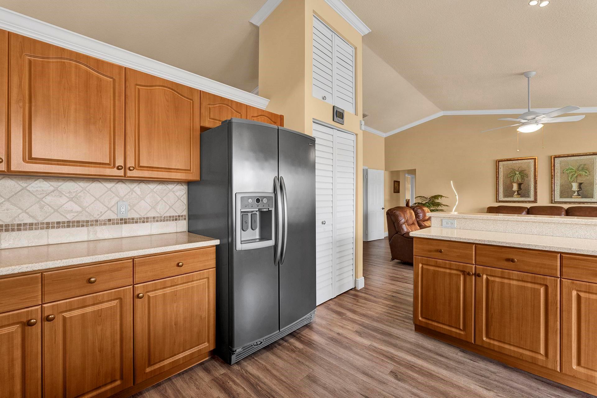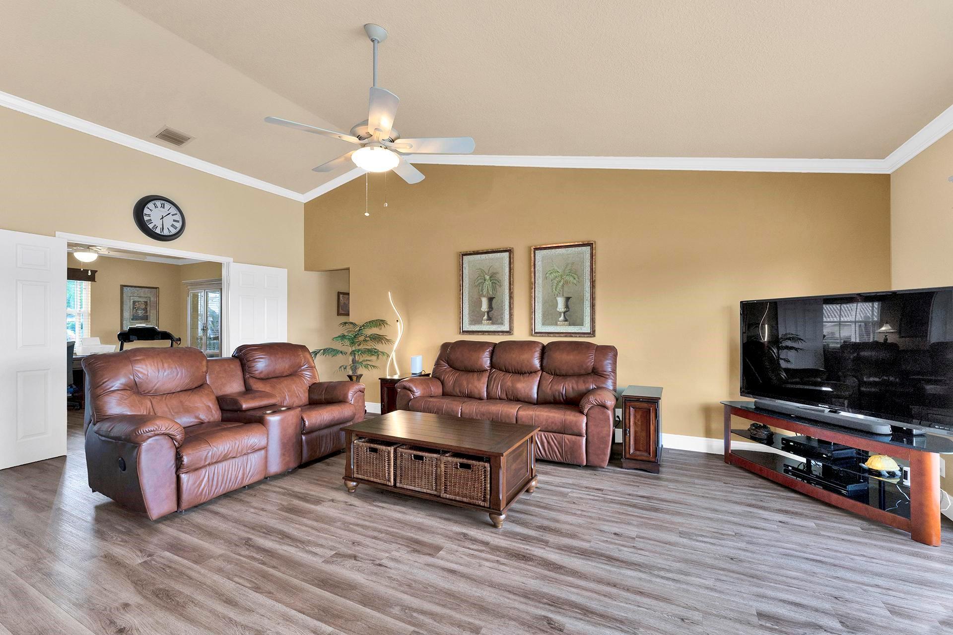 Beautiful Home in Chapel Trail boasts a 4 bed, 2.5 bath with 2,537' of living area, on a large lot. The property has a pool sized 30' X 15’. The pool is enclosed with a metal fence, paver flooring, and beautiful views of the lake. All bedrooms have walk-in closets. Crown molding & luxurious plank flooring throughout. Windows and doors are high impact and include accordion shutters for additional protection. The master bedroom has two walk-in closets. The master bath boasts dual sinks, a soaking tub, a large walk-in shower, a two-sink vanity, granite countertops, and a 32-inch flat screen TV. The kitchen has Corian countertops, dual sinks, wood cabinets, and a large island for family gatherings. High-volume ceilings, formal dining room and living room. See this GEM before it is gone!
