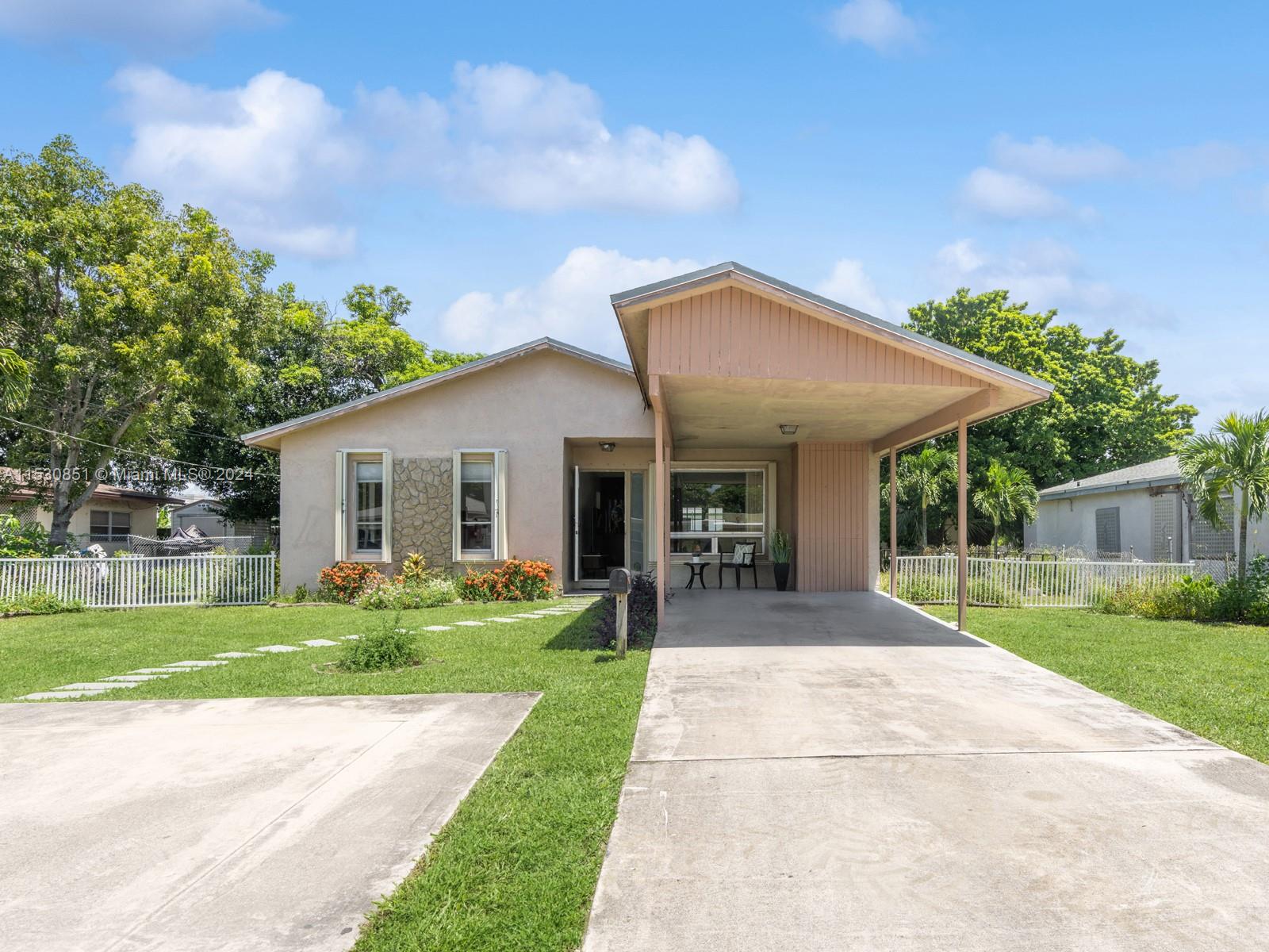 Best priced 3 bedroom Single Family in Downtown Pompano! Excellent floor plan designed for modern living, this home has a spacious living and dining area that offers room for relaxation and entertainment. Beautiful new porcelain floors throughout living space and in all bedrooms. Spacious closets. Linen closet next to the bathroom. The Kitchen has plenty of natural light and a pantry with countertop dishwasher included. Brand new washer/dryer. Large Lot 7,000 sq. ft. with spacious side yards. Plenty of space for an RV or Boat. Accordion hurricane shutters throughout the home, outdoor storage space, an additional attached covered carport and ample parking spaces for your guests.