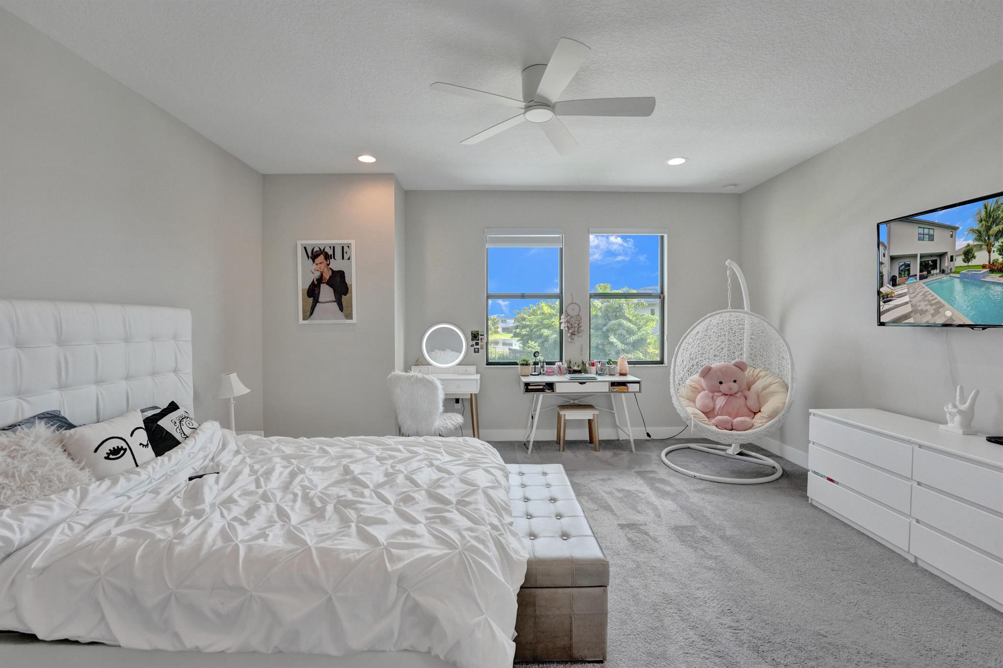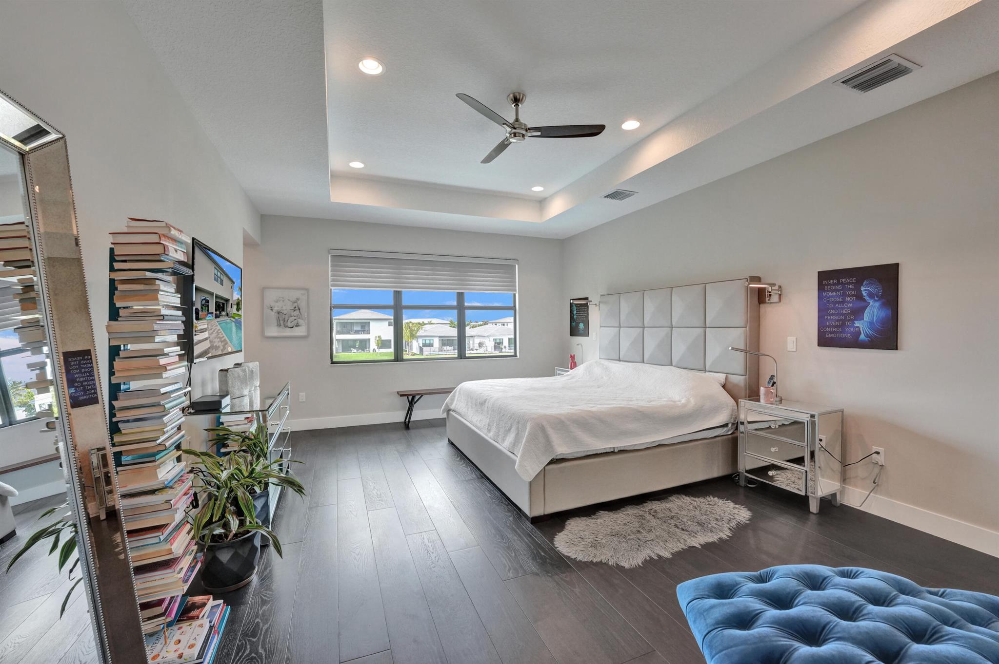 Polynesia Premium model on an oversized lot (8,847SqFt with easement) great lake view. The large lot allows for sunlight indoors all day long and beautiful sunsets in the evenings. The sun sets on the heated pool and spa! This quiet lot is far from the Turnpike, Lyons RD and the main community road. There are 5 bedrooms and 7 bathrooms and a den, the cabana bathroom is accessible from the pool. Many upgrades, including glass staircase, 3in granite countertops throughout, porcelain floors on the first level and engineered wood on the second level. This amazing home is located in a A-rated school zone. Lotus has an exceptional resort style clubhouse with many amenities for all ages. The community is located close to major roads, restaurants and shops. Close to major airports.