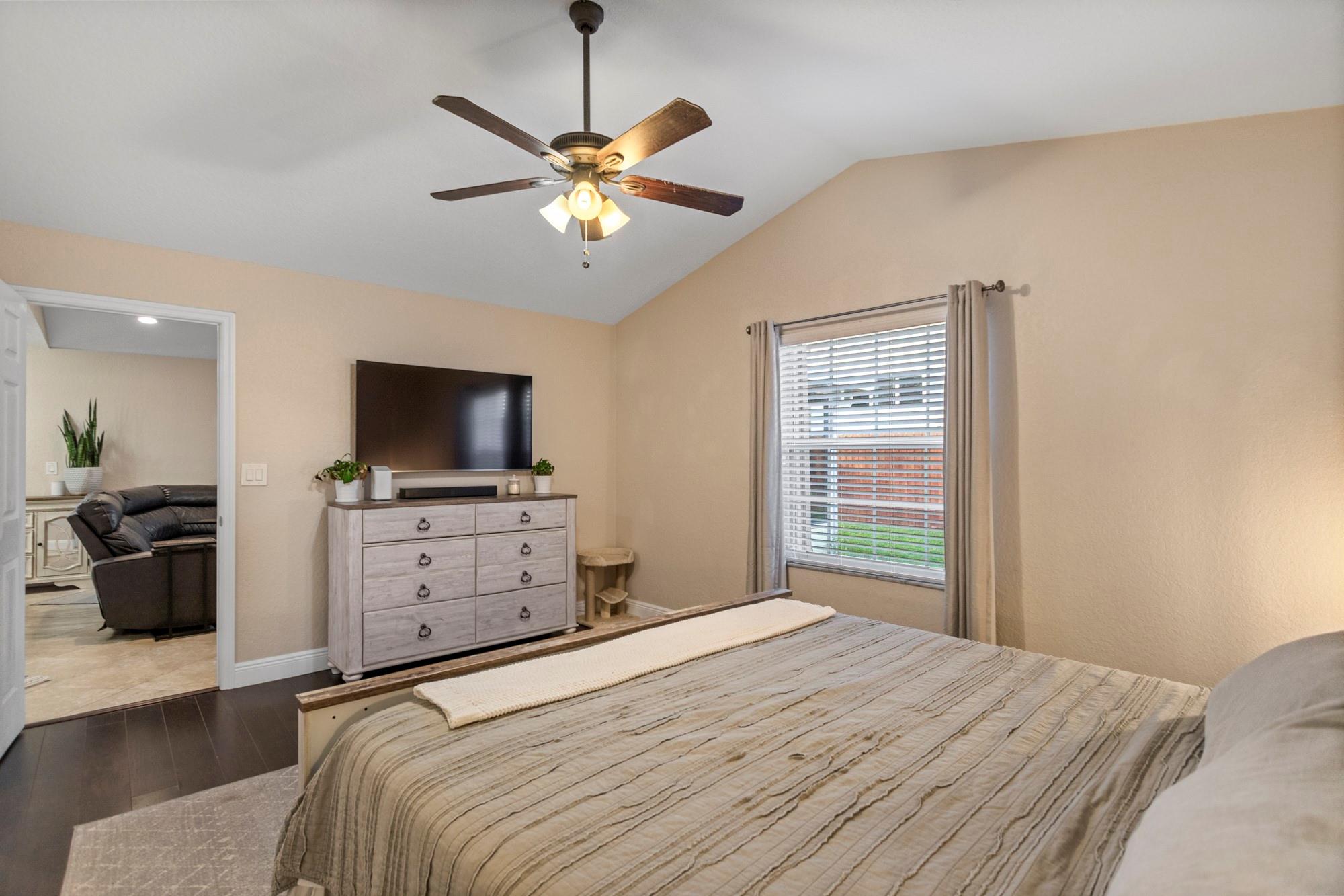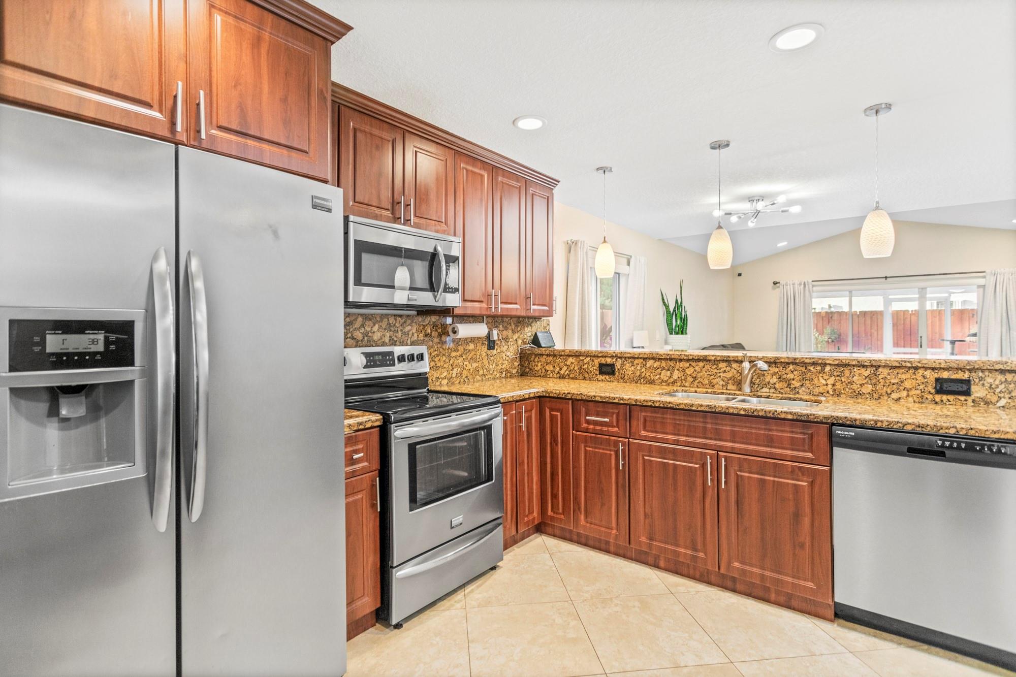 Stunning 3 bedroom 2.5 bath 2 story home located in the sought after neighborhood of the Trellises at Embassy Lakes. Open floorplan with oversized tile in the main living area and wood laminate floors throughout the bedrooms and stairs. Walk in closets in all bedrooms with master located on the first floor. Kitchen has wood cabinets and granite countertops with stainless steel appliances. 2014 tile roof, tankless water heater, Fence, Landscaping, Garage door all from 2021/22. Garage features washer/dryer and 220 electric car outlet New light fixtures and blink security system with Accordion shutters included! The newly enclosed patio and fence allow for maximum privacy. Multiple amenities including tennis, gym, pool, playgrounds and tennis court. Plus, the best A rated schools around!