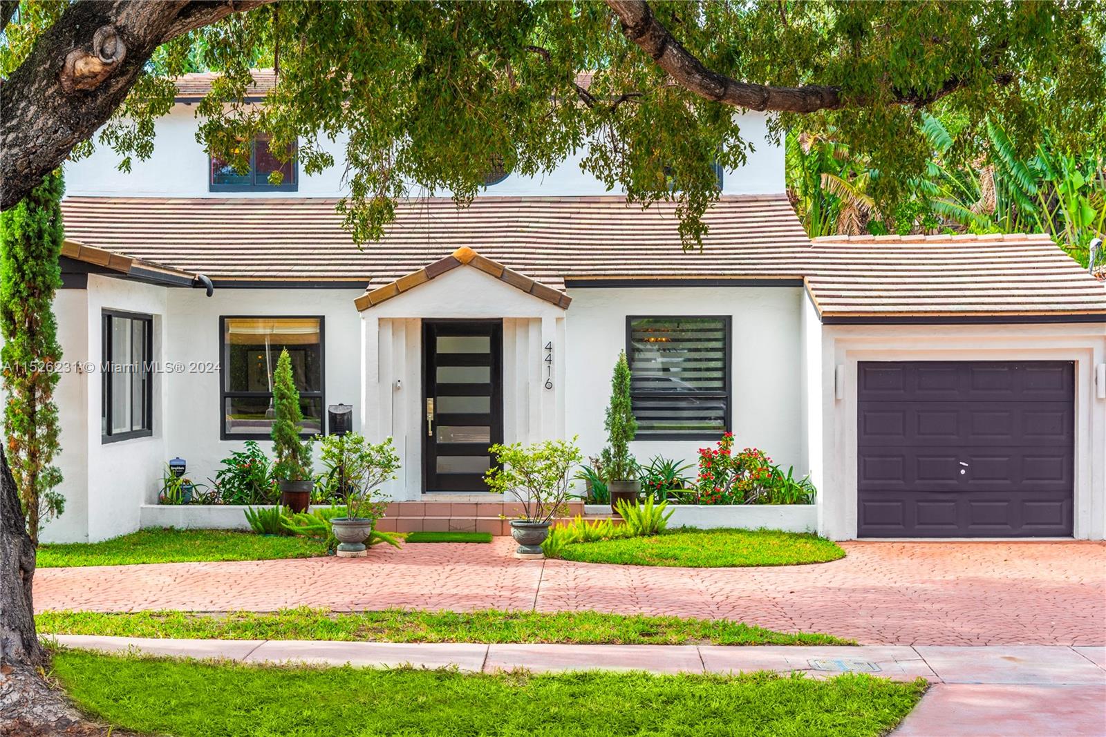 Tastefully modernized deco pool home in the heart of Miami Beach! This rarely available, move-in ready residence offers carefully crafted interiors & upgrades galore. Enter the great room to find high 11ft wood-beam ceilings, an original working fireplace, impact windows & doors, & stunning architectural details throughout. The fantastic floor-plan includes 3 bedrooms + office, 3.5 bathrooms, sitting room w/ bar, & an eat-in gas kitchen w/ wine cooler, quartz island, & ample storage. Entertainers will love the brand new private & fenced backyard with turf, boasting a large patio & a 42-foot heated saltwater lap pool w/waterfall, sun shelf & built-in chaise lounge chairs. Live like you're on vacation! Spacious circular driveway & 1-car garage!