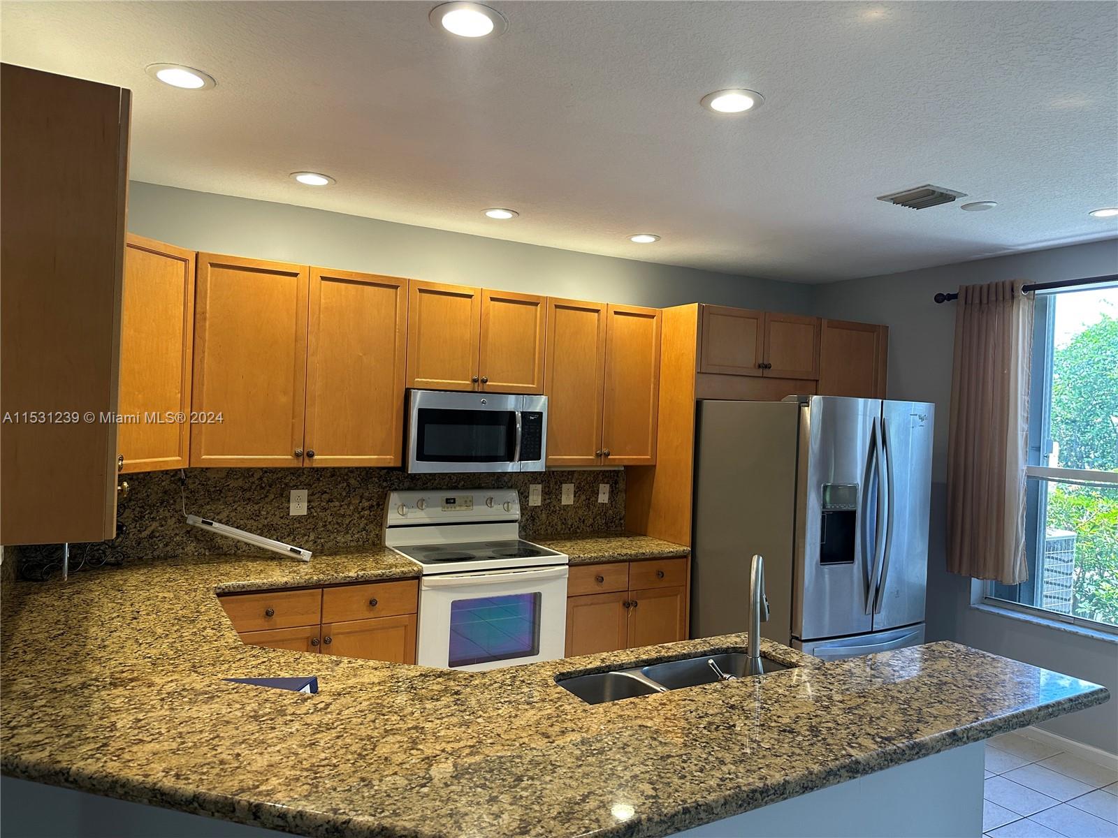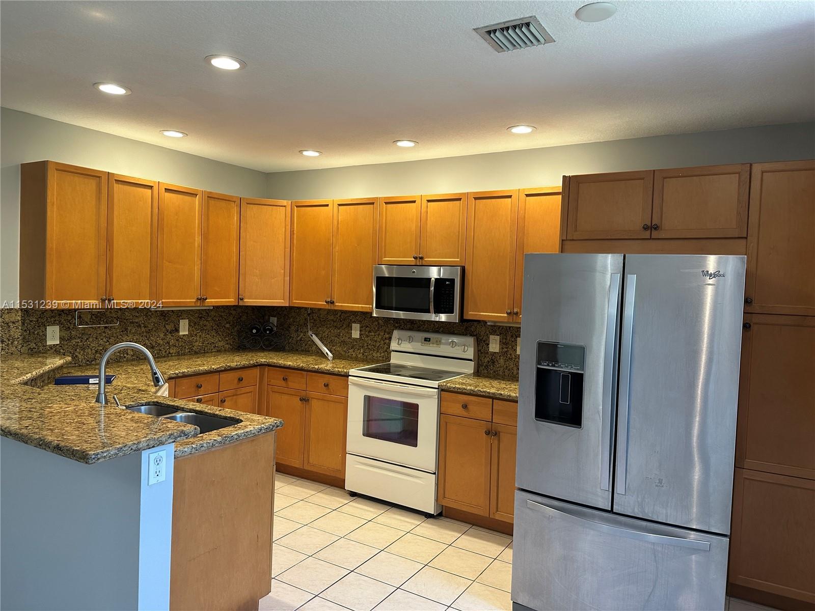 Vacant Townhouse located inside the gated community of Regalo - Miramar. This property has tiles downstairs and laminated floors upstairs. Interior was painted, Renovated master bathroom shower area with a separate soaking tub. Upstairs there are 3 bedrooms, 2 bathrooms, there is 1 bathroom downstairs, and the garage has been converted to another room and storage area. There is a laundry room equipped with a washer and dryer. Enclosed patio. Additional guest parking spaces just steps from the home. Amenities include a resort style swimming pool and children's playground