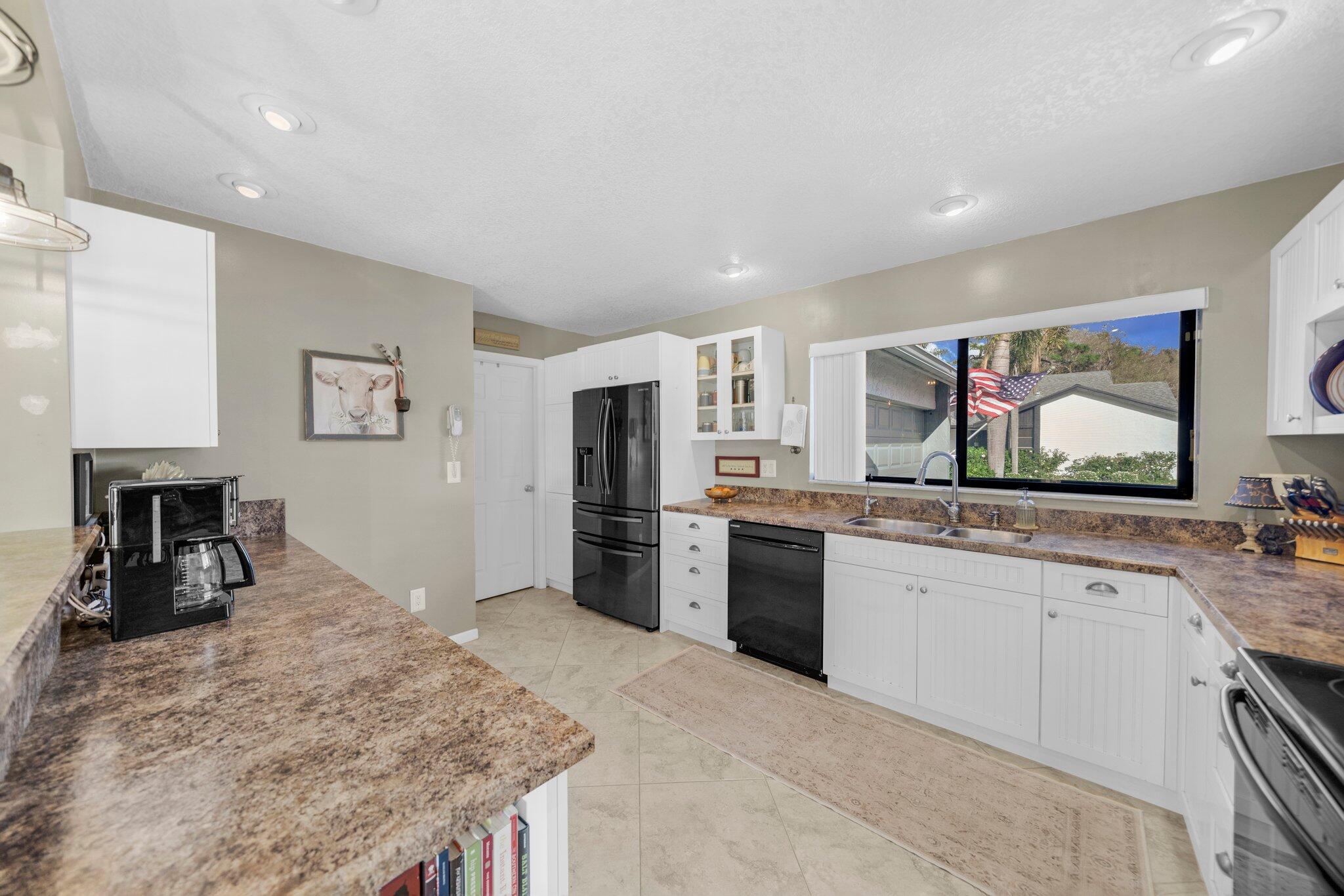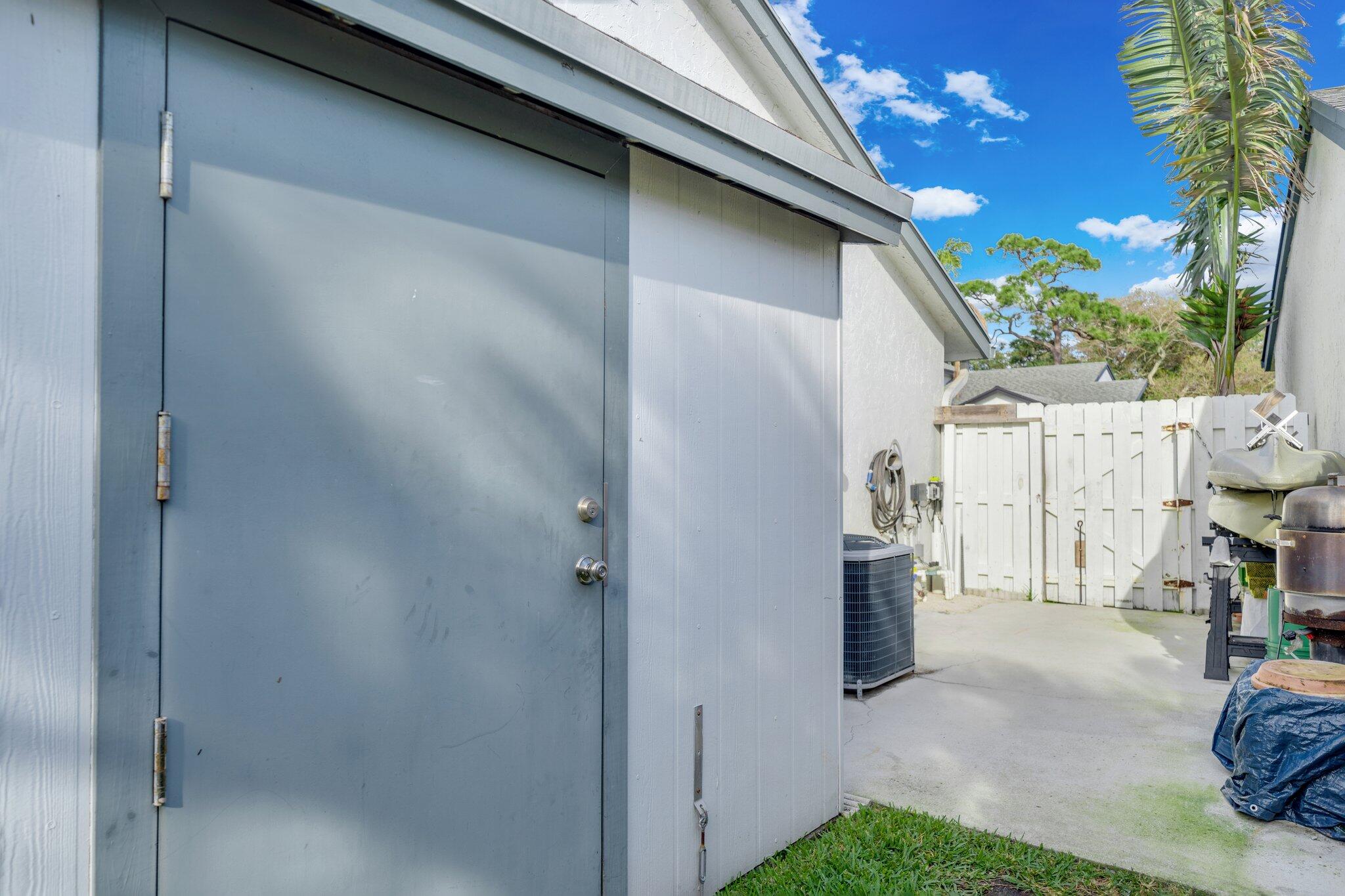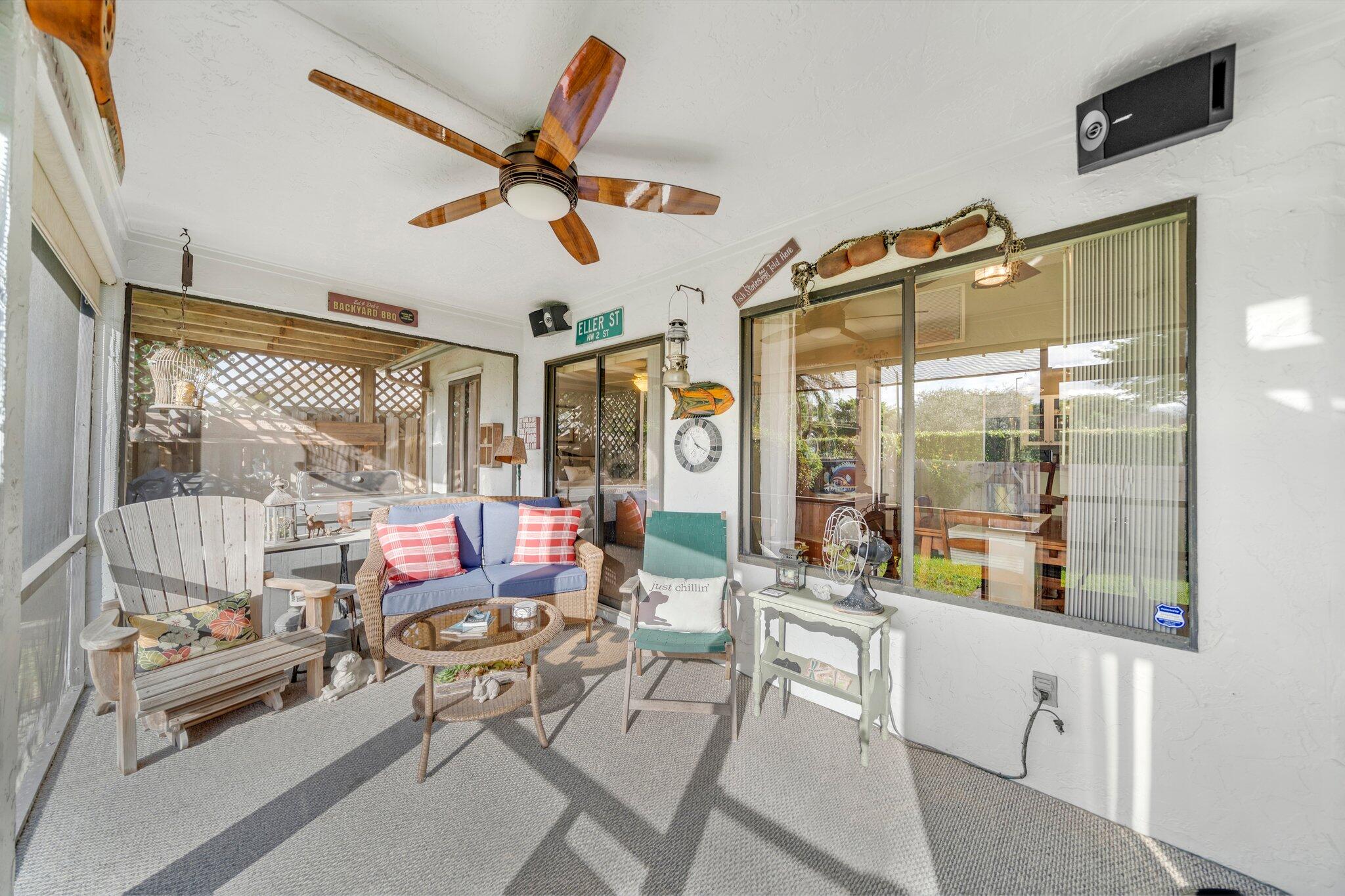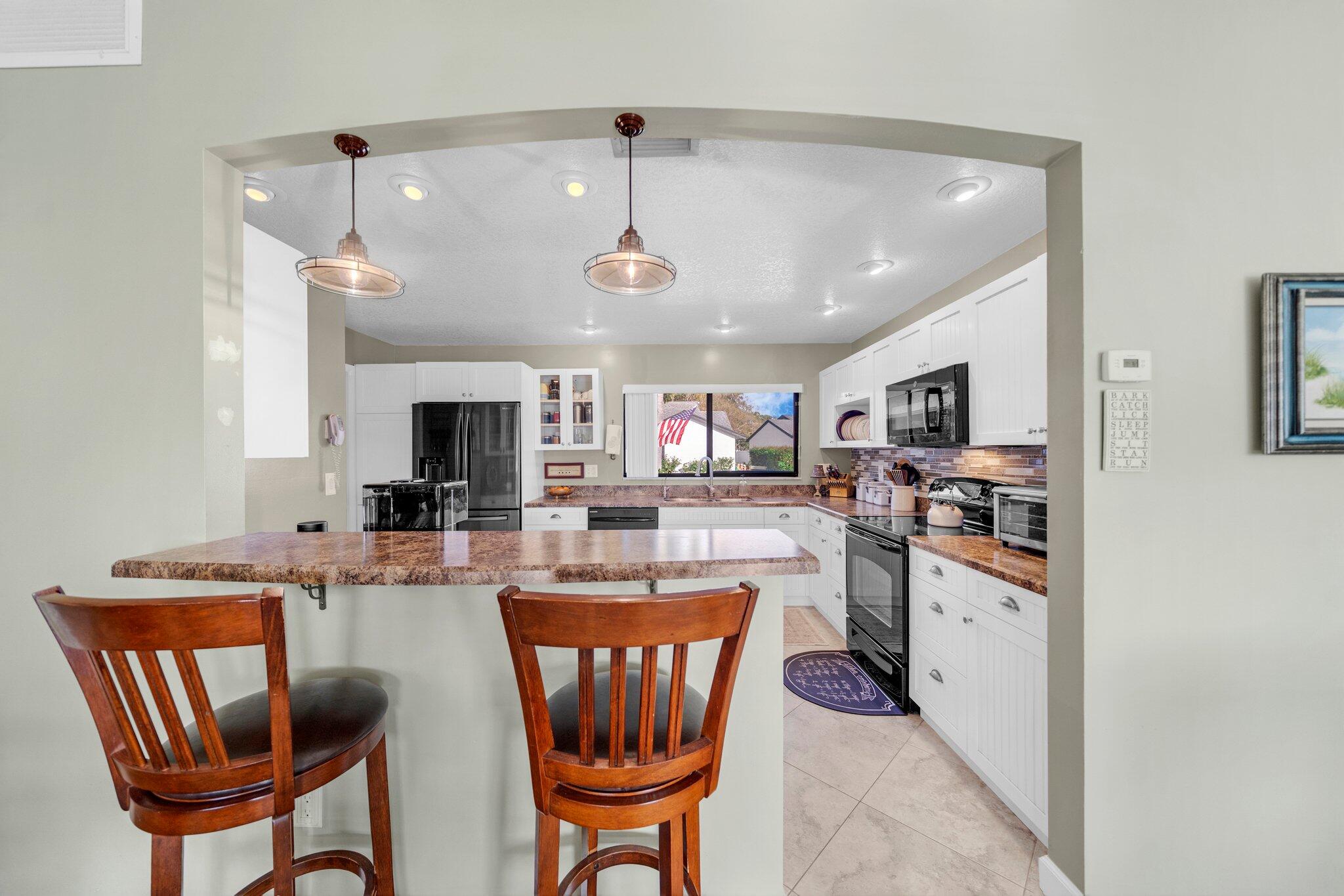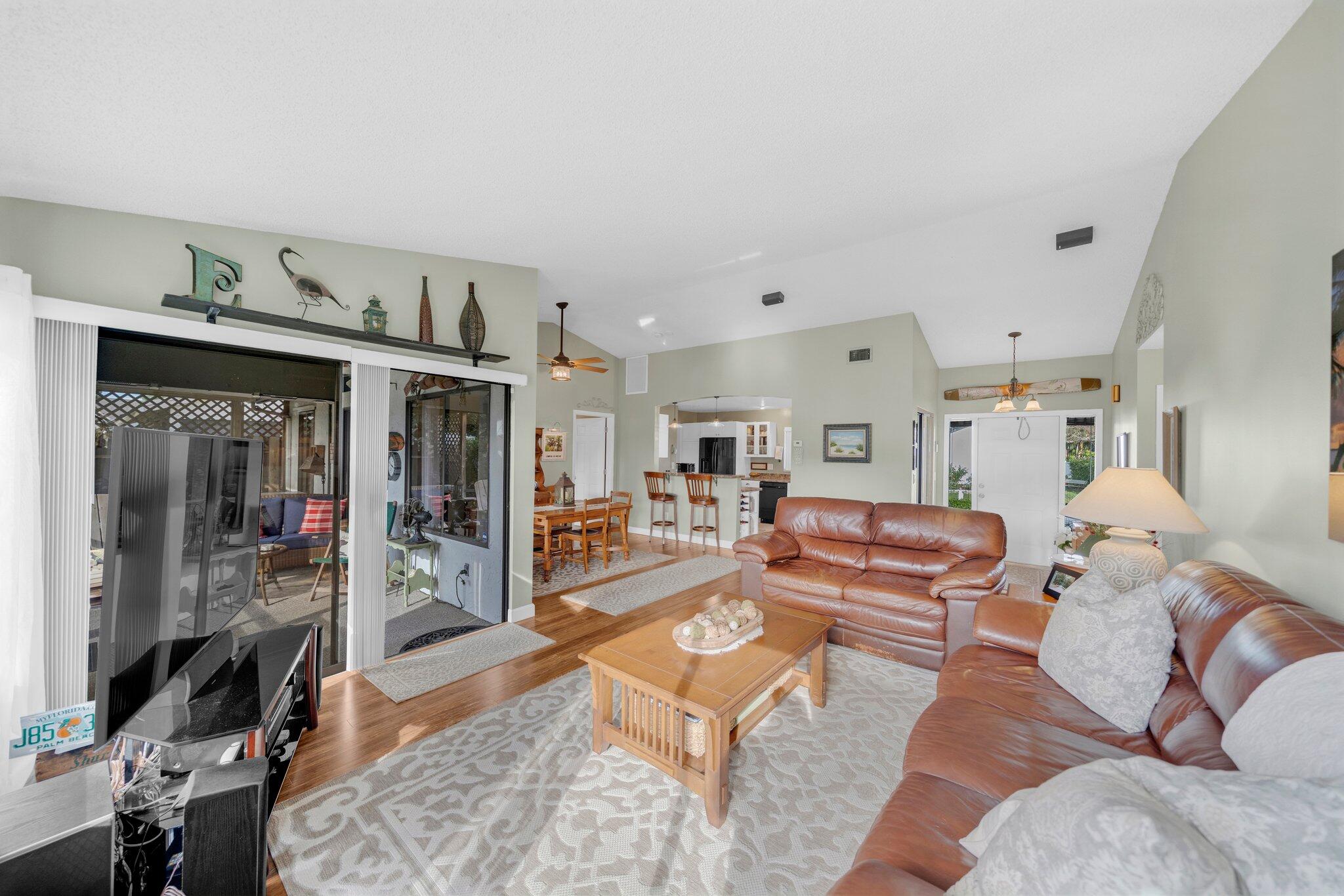 Come see this MOVE-IN Ready, meticulously kept home with an open floor plan, updated bathrooms and kitchen with ample storage, upper cabinet lighting and breakfast bar. The split bedroom floorplan has vaulted ceilings, a mud/washroom. Picture yourself bird watching on your cozy screened patio, with your fully fenced and well-maintained lush backyard. A pergola with a potting bench; a planter's delight. The home comes with hurricane shutters, roll-down sunshades on west windows for additional protection, 6x12 shed for storing all your lawn and garden equipment. Shelf system and work bench in the garage! Terrific location, walking distance to shopping, restaurants, hospital, JCC. The neighborhood features a pool, tennis courts, racquetball, basketball and a playground. Welcome Home!