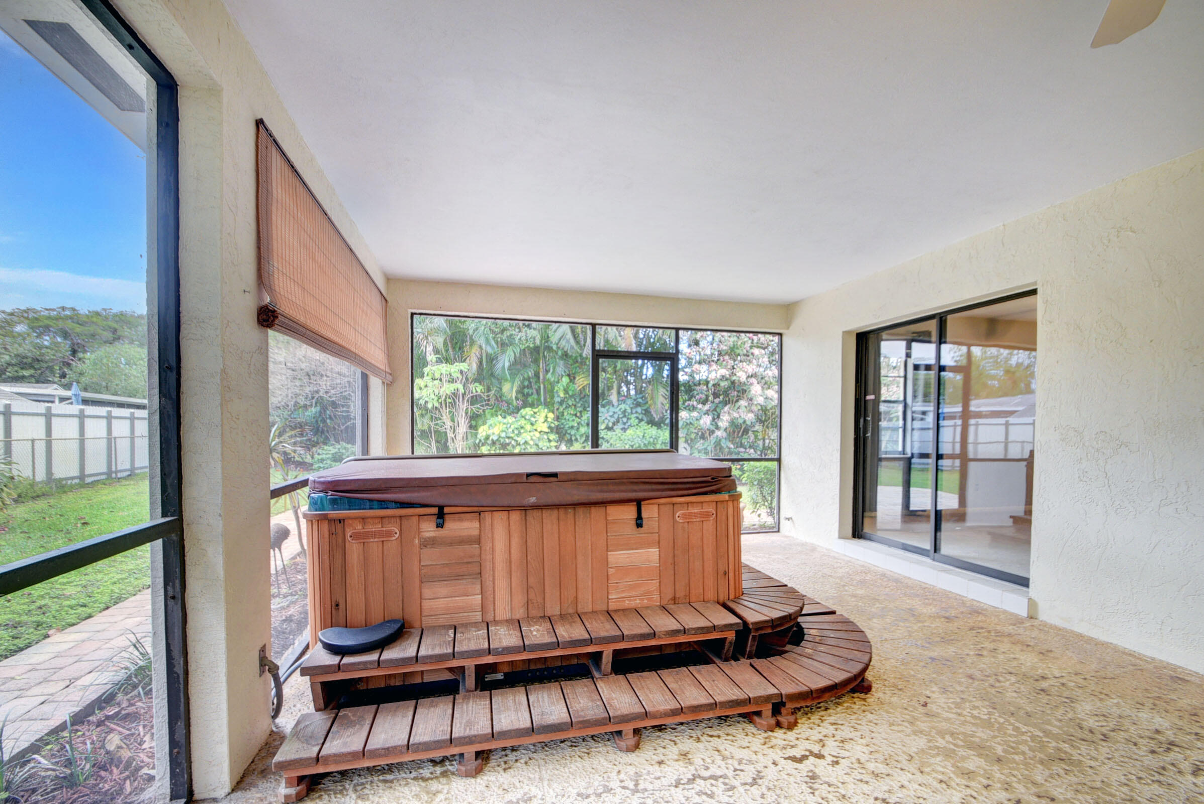 Are you looking for a home with NO HOA? No Dog Restrictions? A fenced in backyard? How about close to Downtown, the Beaches and the highway? Well here it is. One owner and very well taken care of. Extra large screened in porch with a great fenced in yard. This home is on the coveted ''Christmas Tree Street'' in Lake Clarke Shores, IYKYK . Large covered porch to sit and people watch. The home is original and is a 2/2 BUT it can be easily converted back into a 3/2 (see photos). Split floor plan and 2 car garage with finished flooring. The roof is 2001, AC is 2018 and the Hot Water heater is 2021. Hurricane panels for all openings. Hot tub is being left for Sellers convenience. Seller has never lived in home so will not be filling out a Sellers Affidavit