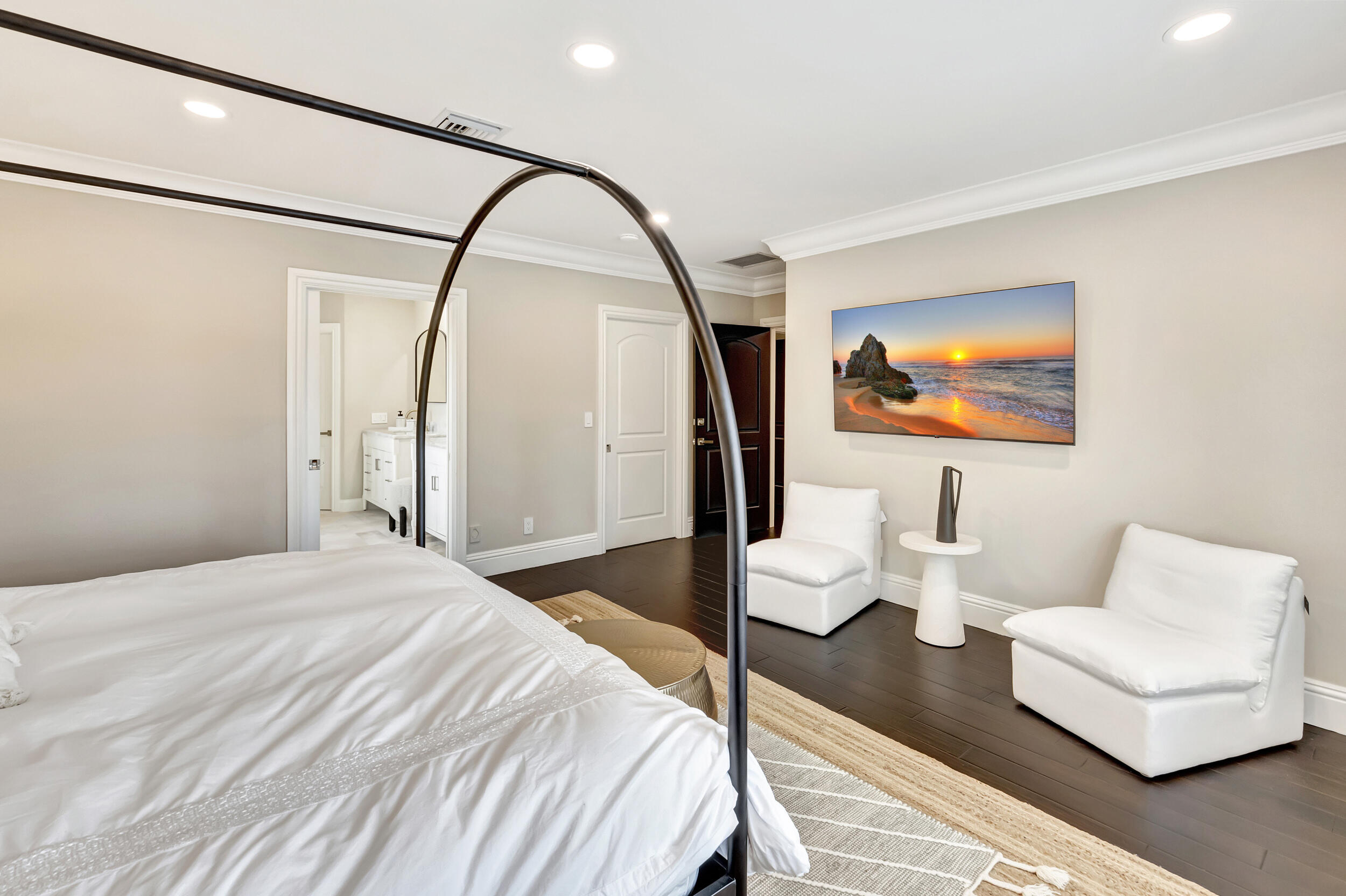 East Boca modern estate has been masterfully remodeled. Rarely available 6 bedroom home is thoughtfully designed-offering 2 first floor bedrooms (one ensuite) with the primary + 3 more upstairs. You'll love entertaining in the oversized kitchen w/custom cabinetry, new marble counters, new appliances-flowing seamlessly into the expansive family room. Pamper yourself in the grand primary bedroom-a dream oasis w/his & her custom closets, oversized custom bath w/ marble walk-in wet room, soaking tub & shower. Enjoy the backyard year round in the resort inspired heated pool w/grotto, waterfall & kids pool. Oversized lot also features a putting area, lush landscaping & abundant patio space.2023 roof, impact windows. Close to downtown shops, dining, beaches-A prime East Boca location