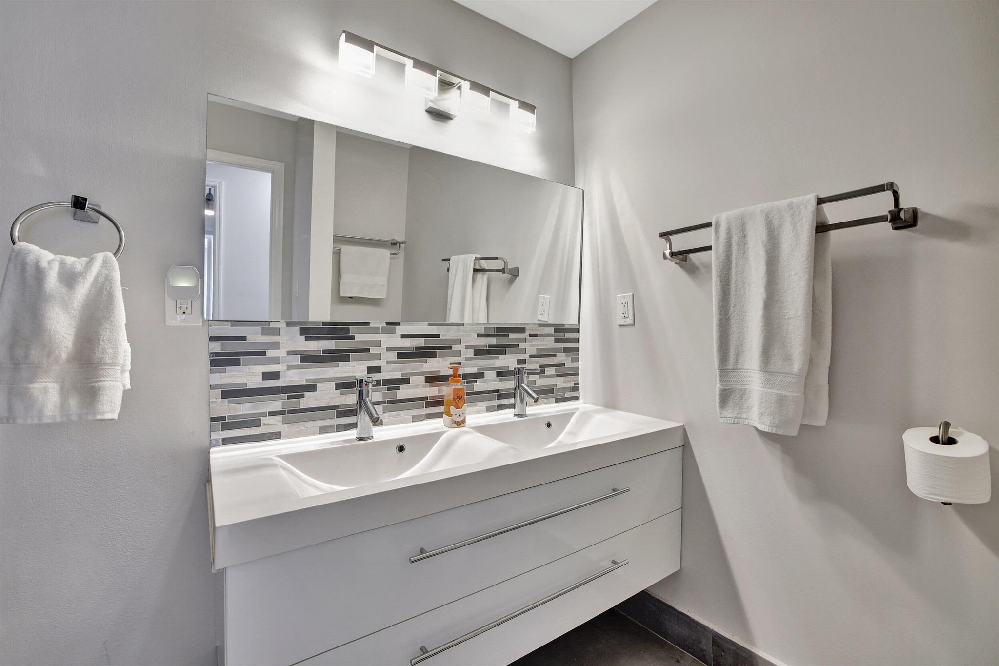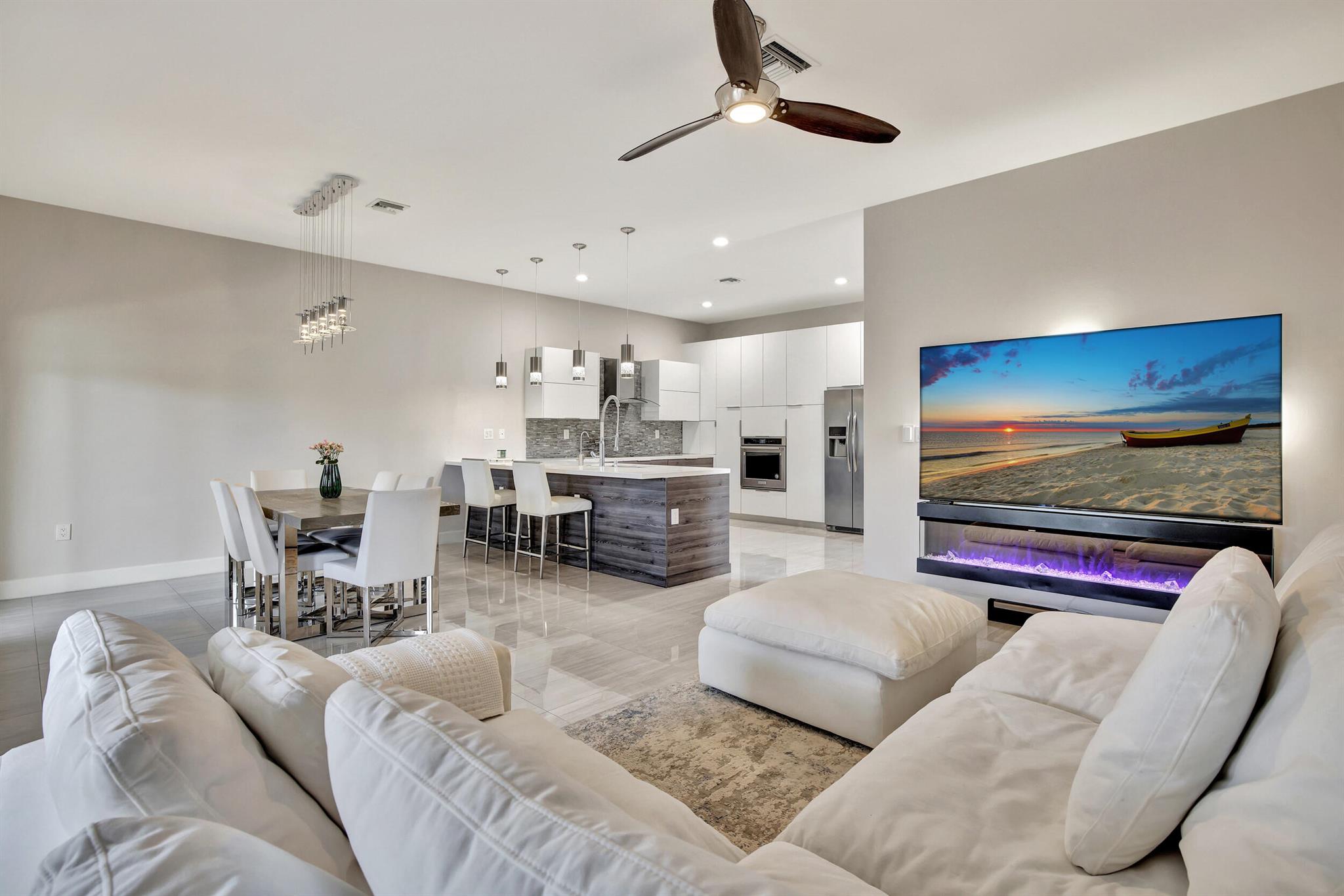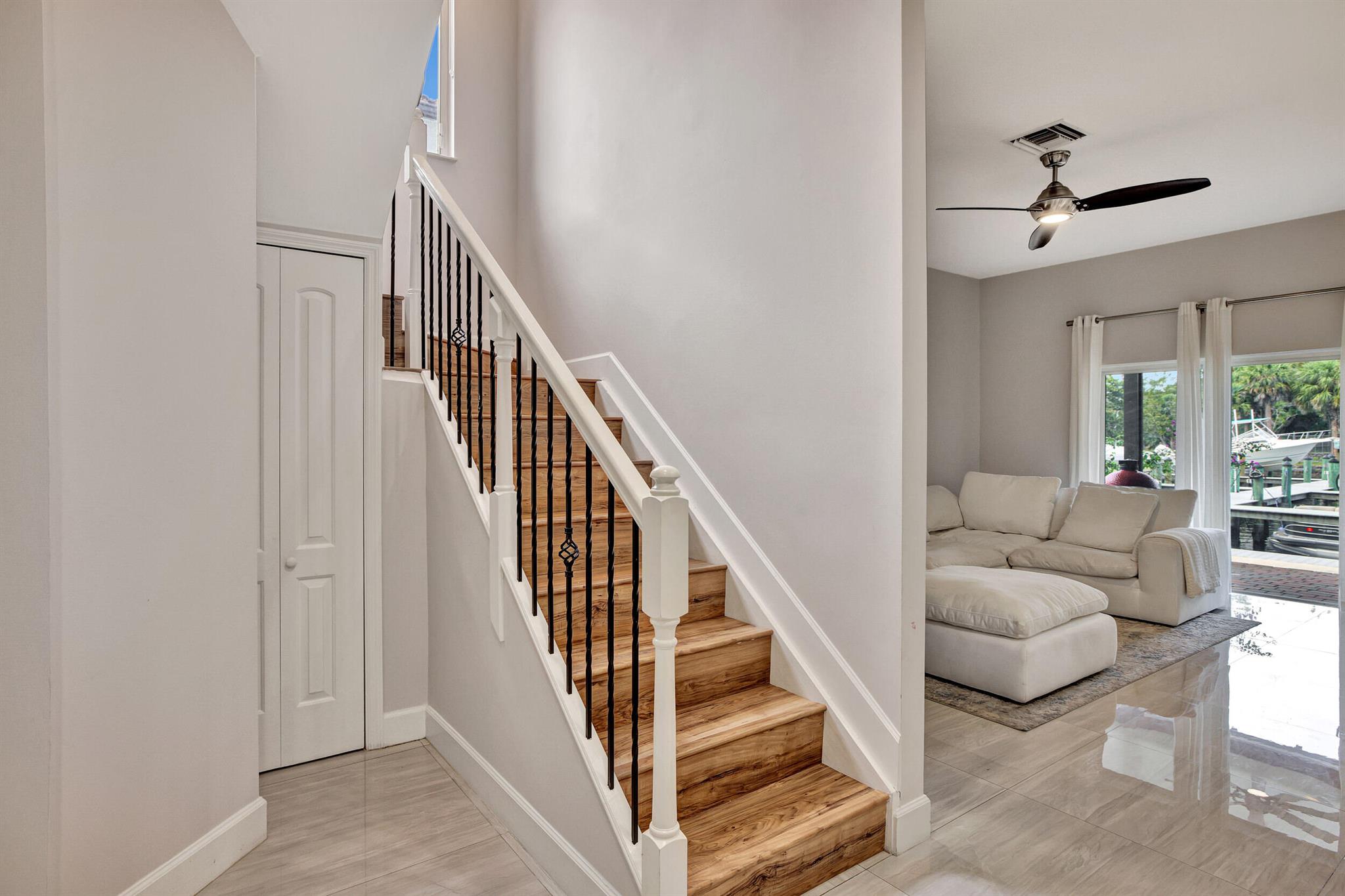 Absolutely spectacular modern townhome boasting sweeping water views just outside its doors. Recently painted with carefully chosen neutral and rich colors by interior designers, this home is move-in ready - just pack your bags and settle in. Completely remodeled with no expense spared, this residence features gorgeous oversized rectified porcelain floors throughout.The spacious master suite offers stunning wood floors, a walk-in closet, and a master bath that rivals a spa experience. The gourmet kitchen is a chef's dream, equipped with endless gorgeous white quartz counters, high-end cabinets, top-of-the-line stainless steel appliances, and a custom tile backsplash. Custom compartments in the cabinets discreetly conceal smaller appliances, maintaining the sleek aesthetic.