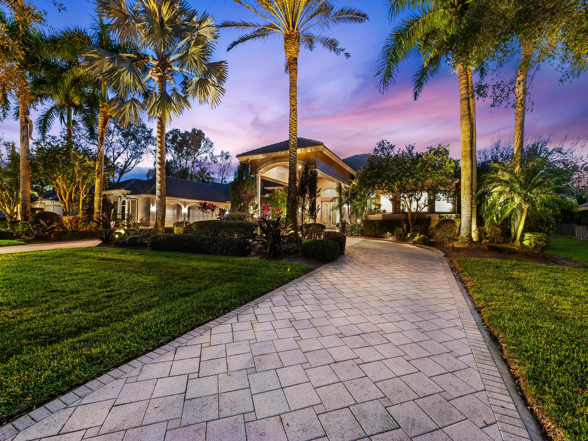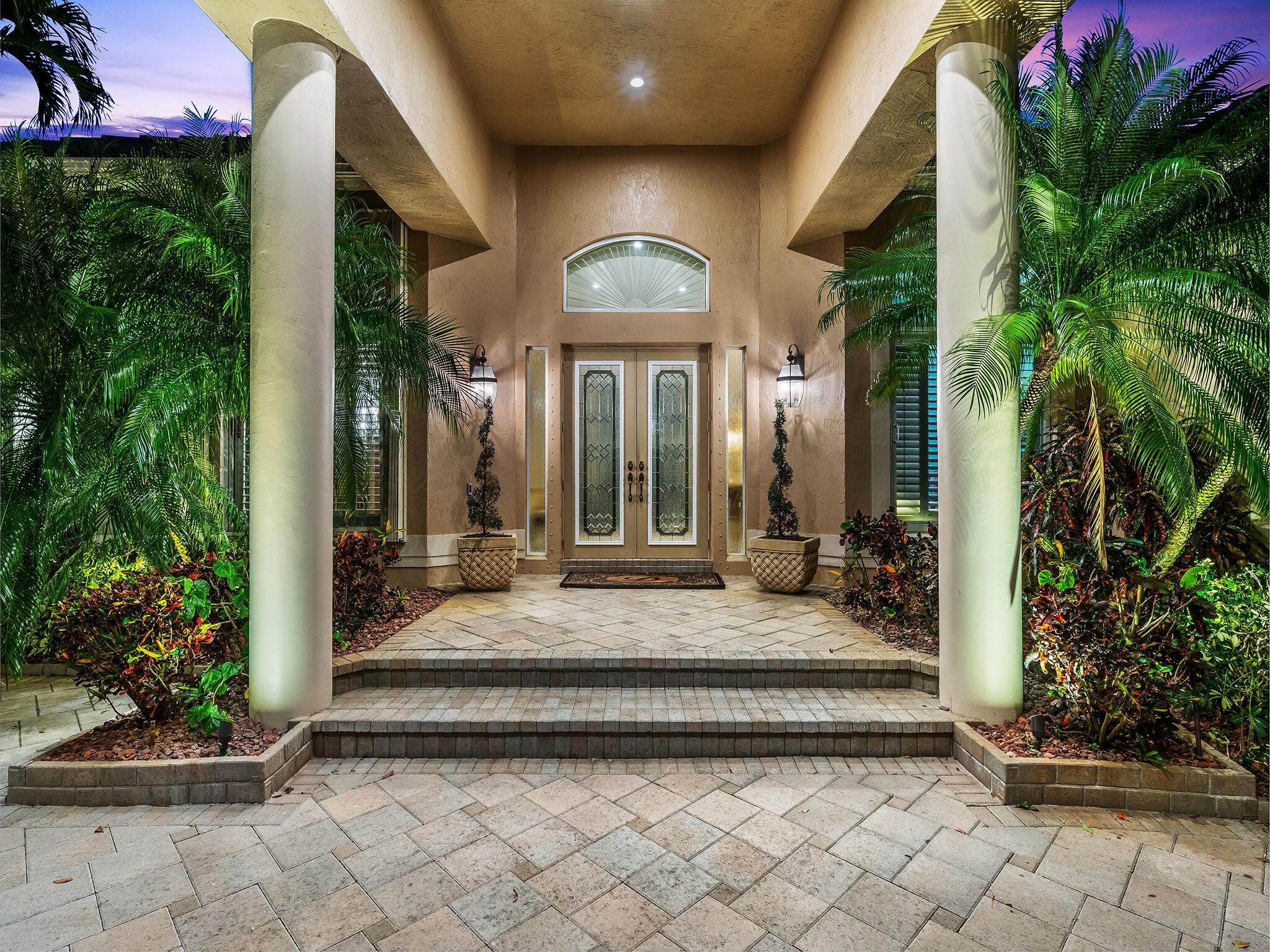 Stunning!!! Expanded Vanderbilt floor plan, with transitional Decor, featuring 5 Bedroom, 5.5 baths. plus, office and children's playroom. Split floor plan with each bedroom an ensuite. Grand entrance with porte-cochere, circular driveway and 3-Car side entry garage. Lush landscaping with total privacy. All updated bathrooms, high flat ceilings, and 8 ft doors. (NEW ROOF) currently being installed April 2024. All openings with hurricane protection. Screened patio, heated 20x40, saltwater pool and spa. Open kitchen with 2 sinks, center Island, stainless steel appliances with granite counter tops. Oversized master bedroom with sitting area, his and hers closets, house generator, with 500-gal gas tank, entire house water purifier system, summer kitchen with Tiki hut, and much more...