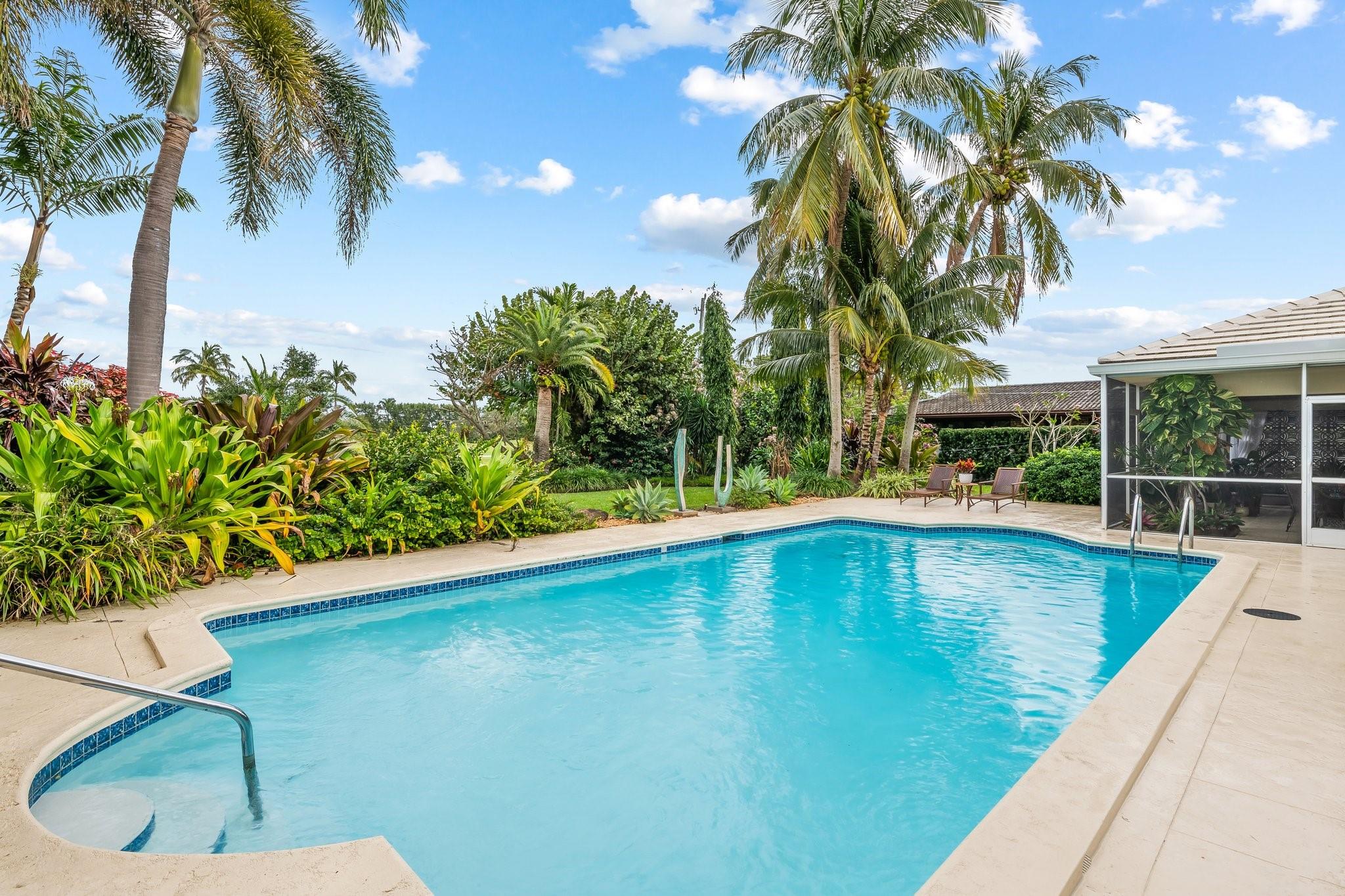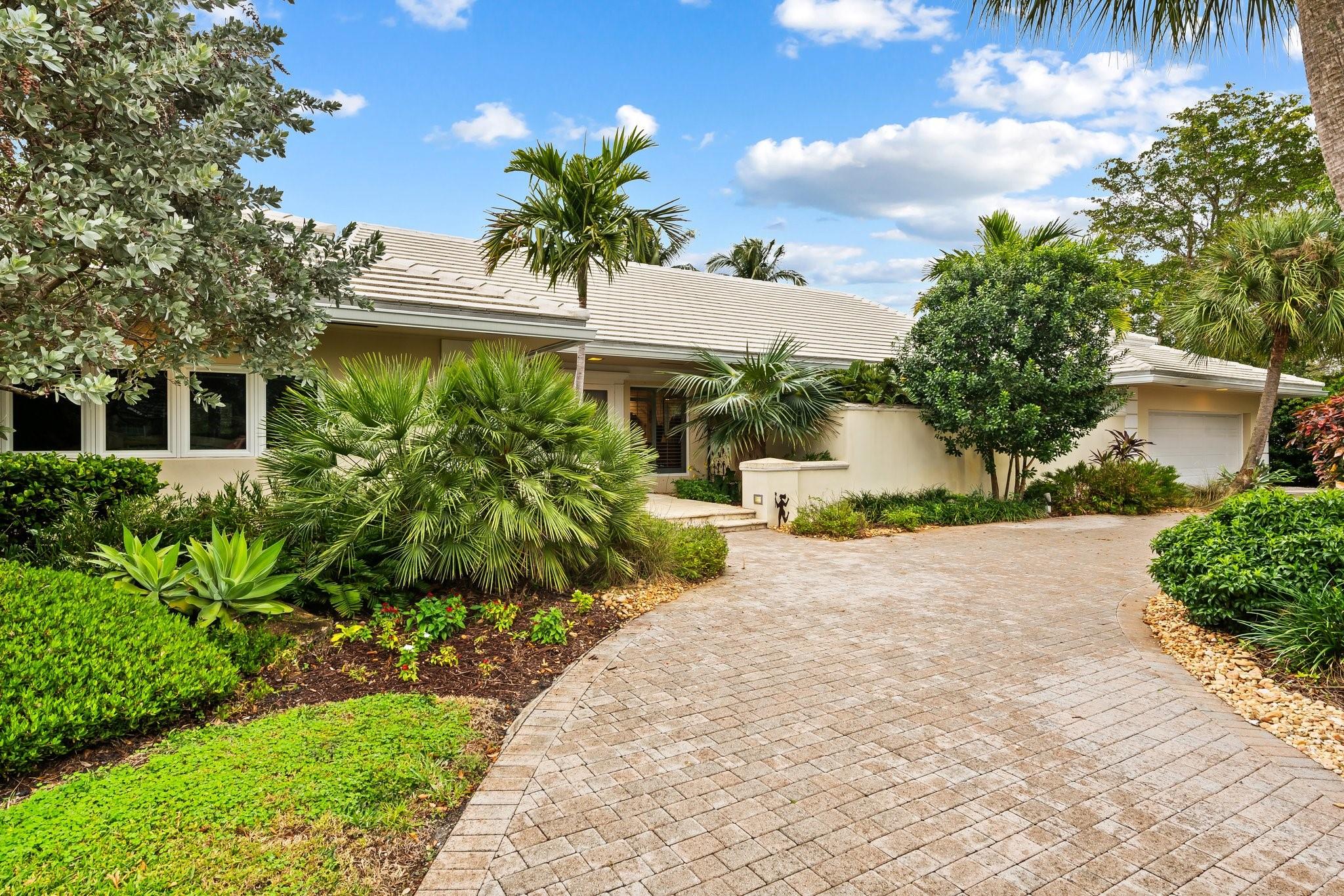 One story estate overlooking 11th fairway of Coral Ridge Country Club with lush, tropical and mature vegetation. Resort-like golf course open air patio includes a large deep pool & covered space, with proper circular driveway and oversized garage.
