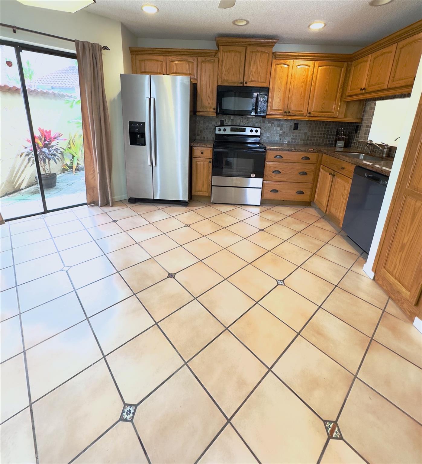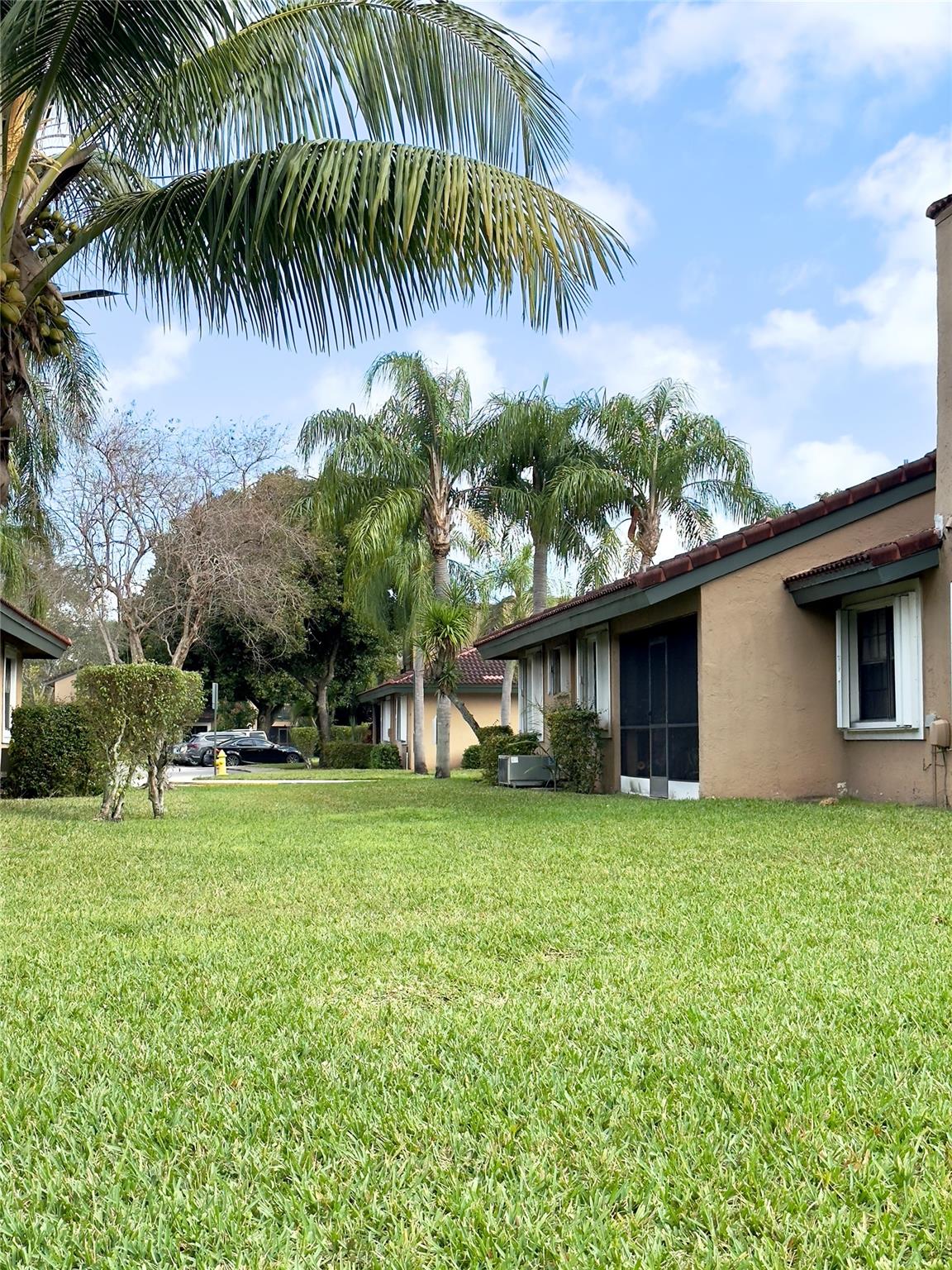 This rarely available one story, 3 bedroom 2 bathroom townhome with garage offers extra privacy as it's situated on a corner within a cul-de-sac. Enjoy the convenience of a one-story layout with vaulted ceilings & an open split floor plan. Kitchen has all new appliances complemented by granite countertops & wood cabinets. The large master suite includes a walk-in closet, recently renovated bathroom (2023) and plenty of space for an office or sitting area that overlooks the covered screened in patio, perfect for relaxing while enjoying the views of palm trees and the expansive grass area. Includes 2 parking spaces, brand new water heater, newer washer, fresh coat of paint & an electrical panel that hooks up to a portable generator. Special assessment was recently paid by Seller.
