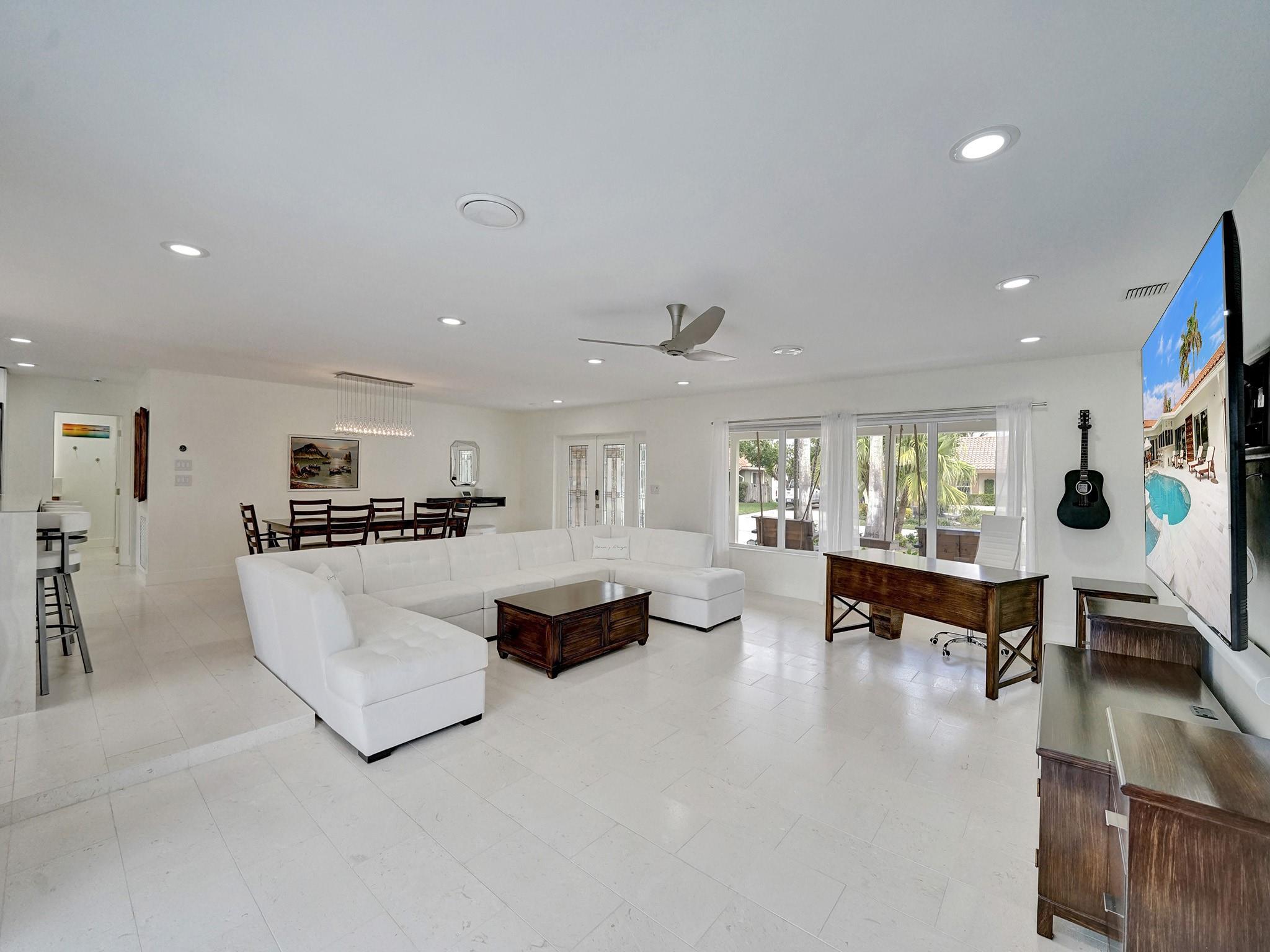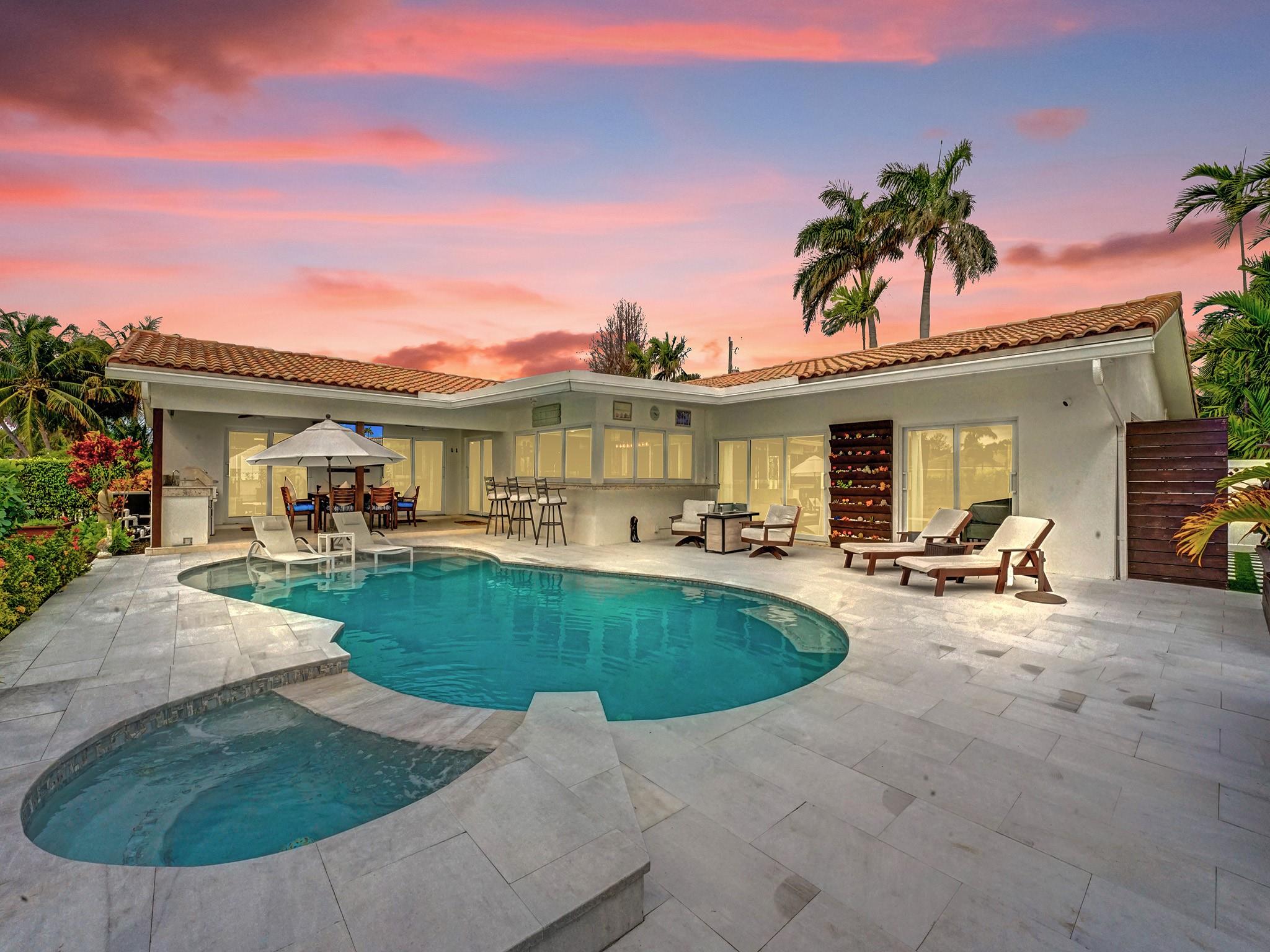 This amazing home is located in the exclusive The Landings/Lake Estates neighborhood. It’s a boater’s paradise with 80’ waterfront with a private dock and ocean access. It’s an entertainer’s dream home offering the best luxury of resort feeling with a South facing heated newly renovated saline pool and a pristine and beautiful new marble deck. The outside area is equipped with a fully functional outdoor kitchen which includes a built-in BBQ grill perfect for entertaining and alfresco dining. This newly renovated home offers 3 en-suite bedrooms. An open concept with a spectacular kitchen opens to conveniently serve as a bar for the pool area. It has Florida limestone floors throughout, including front porch and lanai. Impact sliders and windows. Just minutes away from the beach.