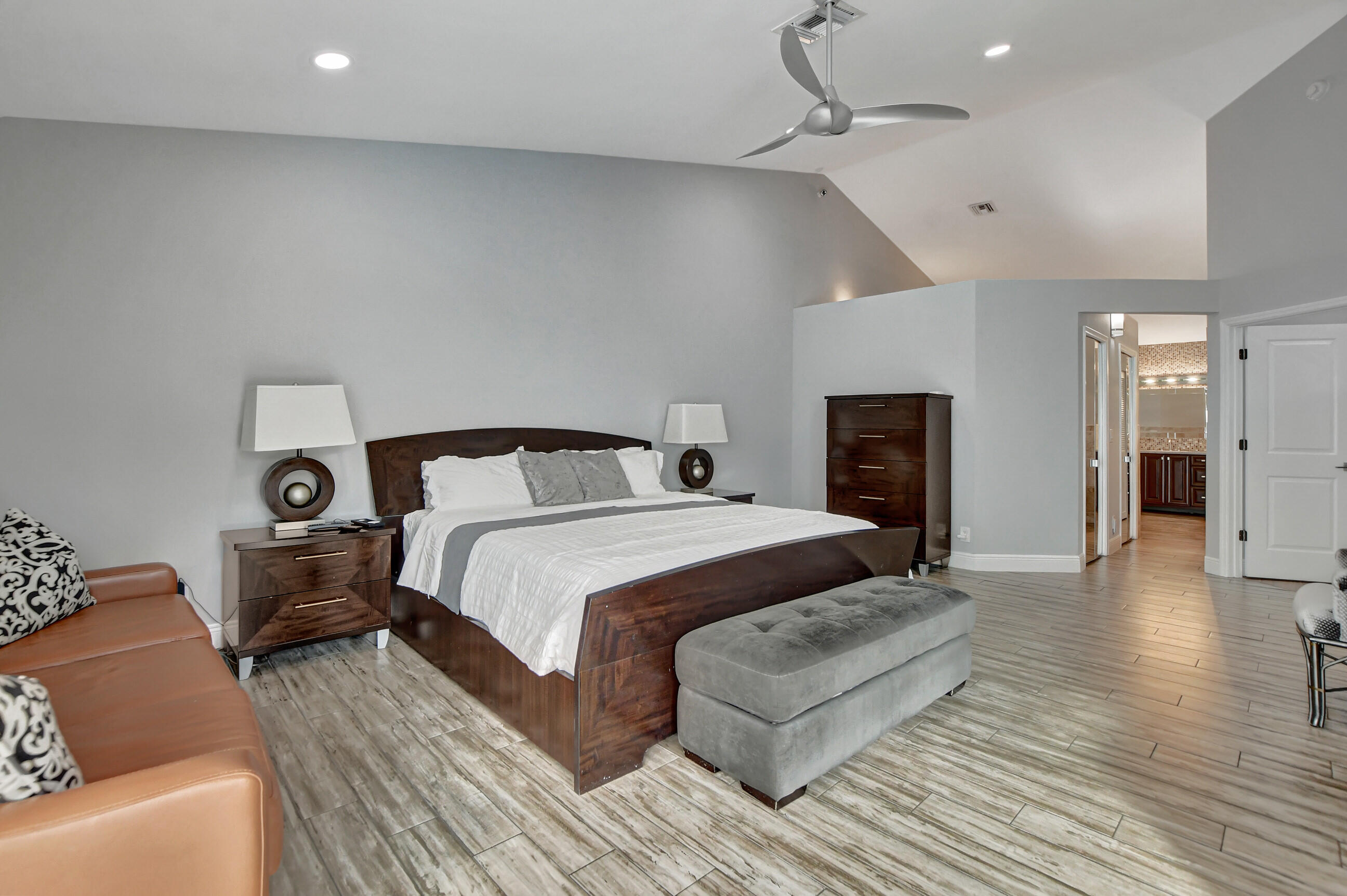 Welcome to paradise in East Boca Raton's exclusive Estoville community. This stunning 3 bedroom + den pool home embodies luxury and sophistication, boasting an endless list of upgrades and meticulous attention to detail.Step inside this immaculate renovated large corner lot home. The master bedroom and bath, renovated in 2014, offer a tranquil retreat featuring porcelain wood-look tile, custom-cabinets, an oversized jacuzzi tub, quartz countertops, and a huge luxurious custom built closet.Continuing the journey through this remarkable residence, discover the 2016 updated bathrooms, adorned with a stone wall in the powder room, vessel sink, custom cabinets, quartz countertops, double sinks and more...