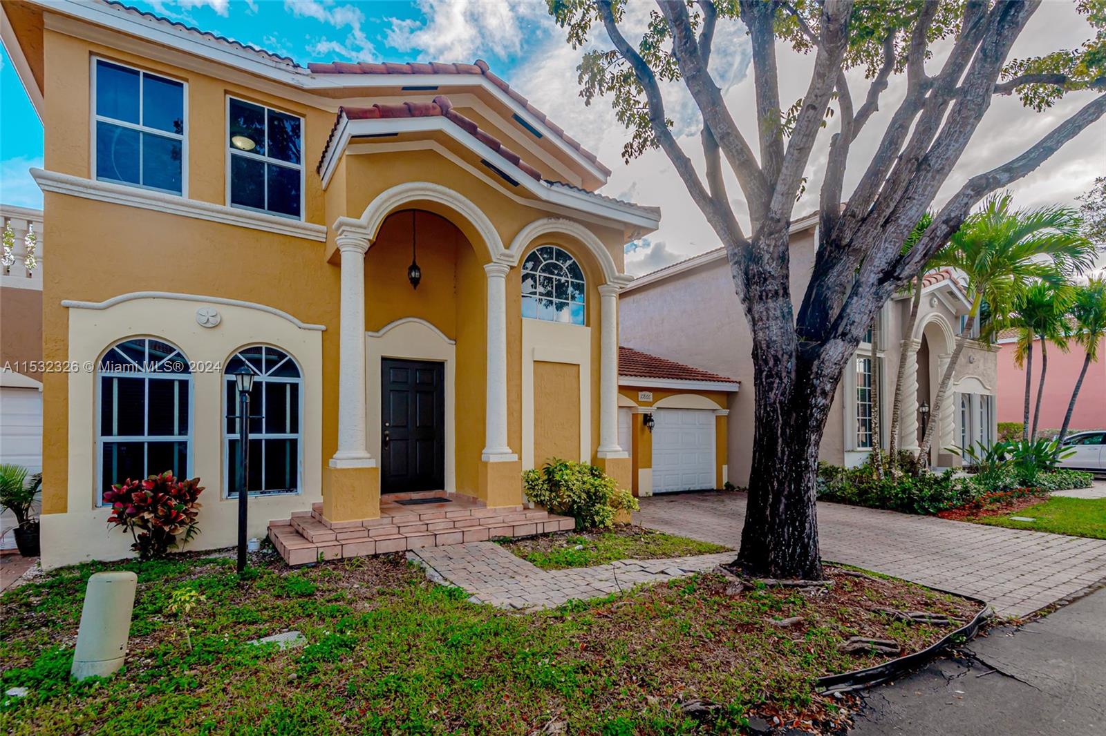 This Mediterranean, coach-style 3 BR/2.5 BA home is located in a gated community in the heart of Doral. Prime location: It is just minutes from all major highways. 2 Car garage. All 3 bedrooms are located upstairs. The Master bedroom boasts a walk in closet and a spacious bathroom with shower, tub, and bidet. Low HOA includes gated security, cable, alarm, and lawn maintenance. Tenant occupied until 3/15/2024.
