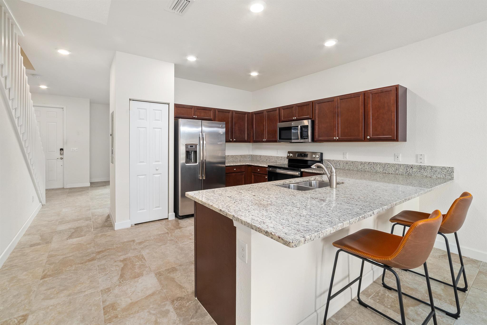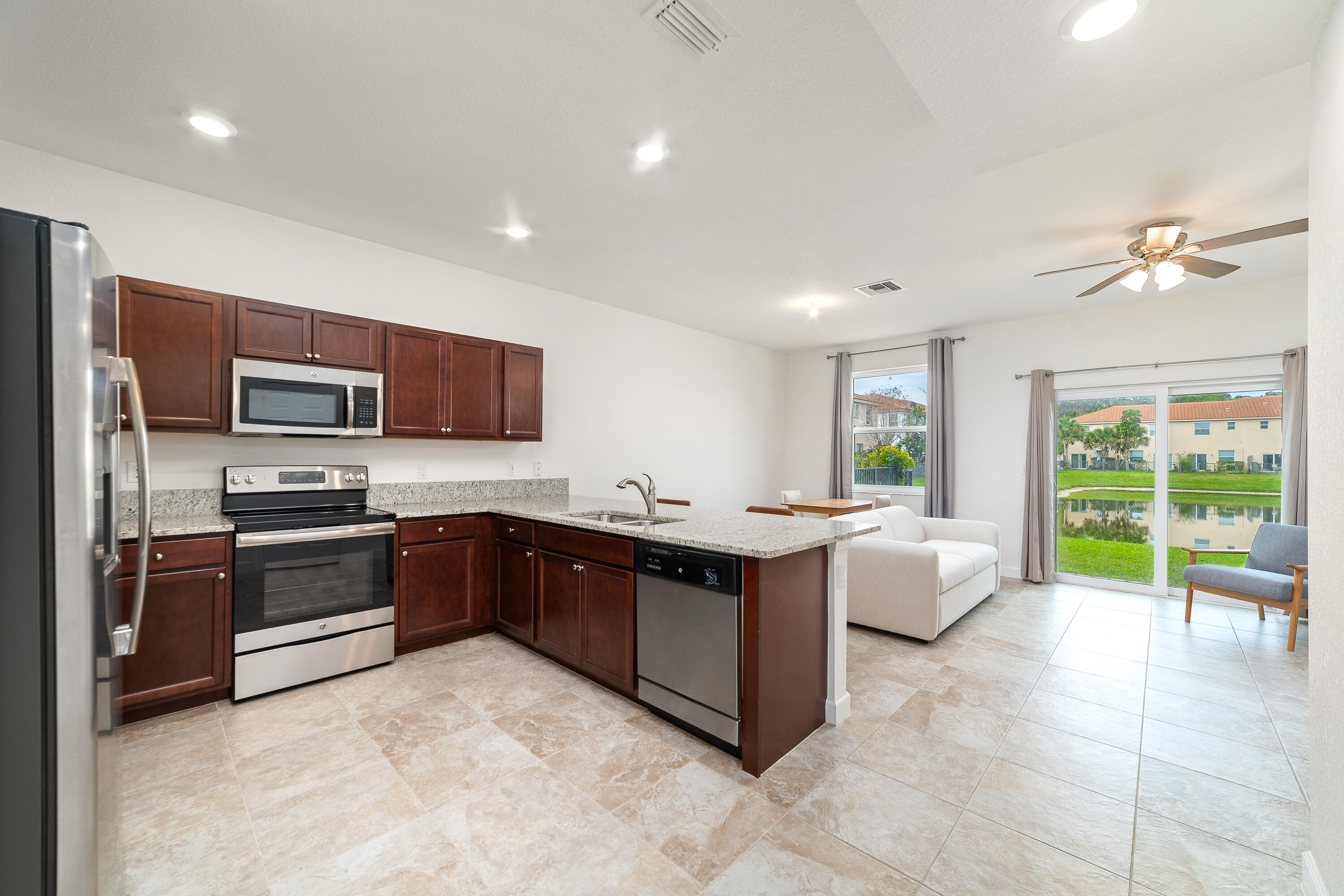 Welcome to your dream home in Charleston Commons located in beautiful West Palm Beach ! This stunning townhouse in a gated community offers 2 bedrooms, 2.5 bathrooms. You will love the hurricane impact windows that provide natural light and security, enjoy the relaxing views of the lake from your private backyard. The townhouse features a modern kitchen with granite countertops, stainless-steel appliances, and a breakfast bar, a large main bedroom with an ensuite bathroom, and a laundry area located on the second floor for your convenience. The second bedroom also has its own bathroom and a walk-in closet. The community offers a pool, a playground, and is conveniently located near schools, shopping, and entertainment. This property was built in 2017 and comes completely furnished.