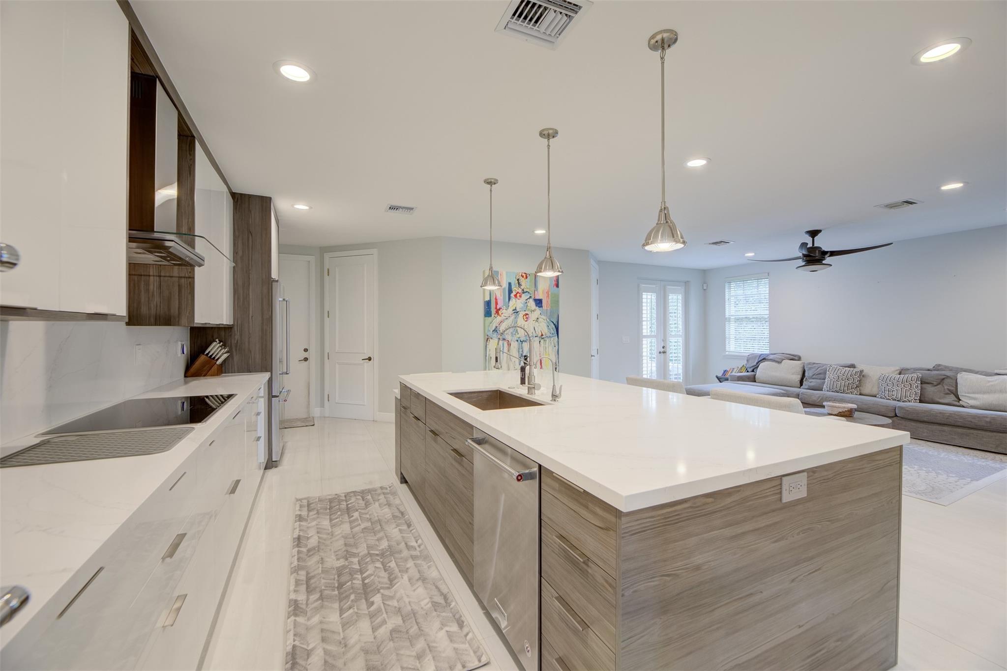 This Contemporary home effortlessly blends modern sophistication with the timeless charm of Florida Living. The fantastic new kitchen is equipped with all the latest amenities, including a spacious island perfect for gatherings. A convenient butler station adds an extra touch as well as the large walk in pantry. With both formal living and great family areas, this home offers versatility for every occasion. Step through the doors and indulge in the outdoor space , complete with a pool featuring a beach entry for ultimate relaxation and enjoyment. The private quarters are upstairs. Great size primary bedroom as well as creatively designed kids rooms. Home is perfectly located within walking distance to worship and also minutes to beach and downtown.