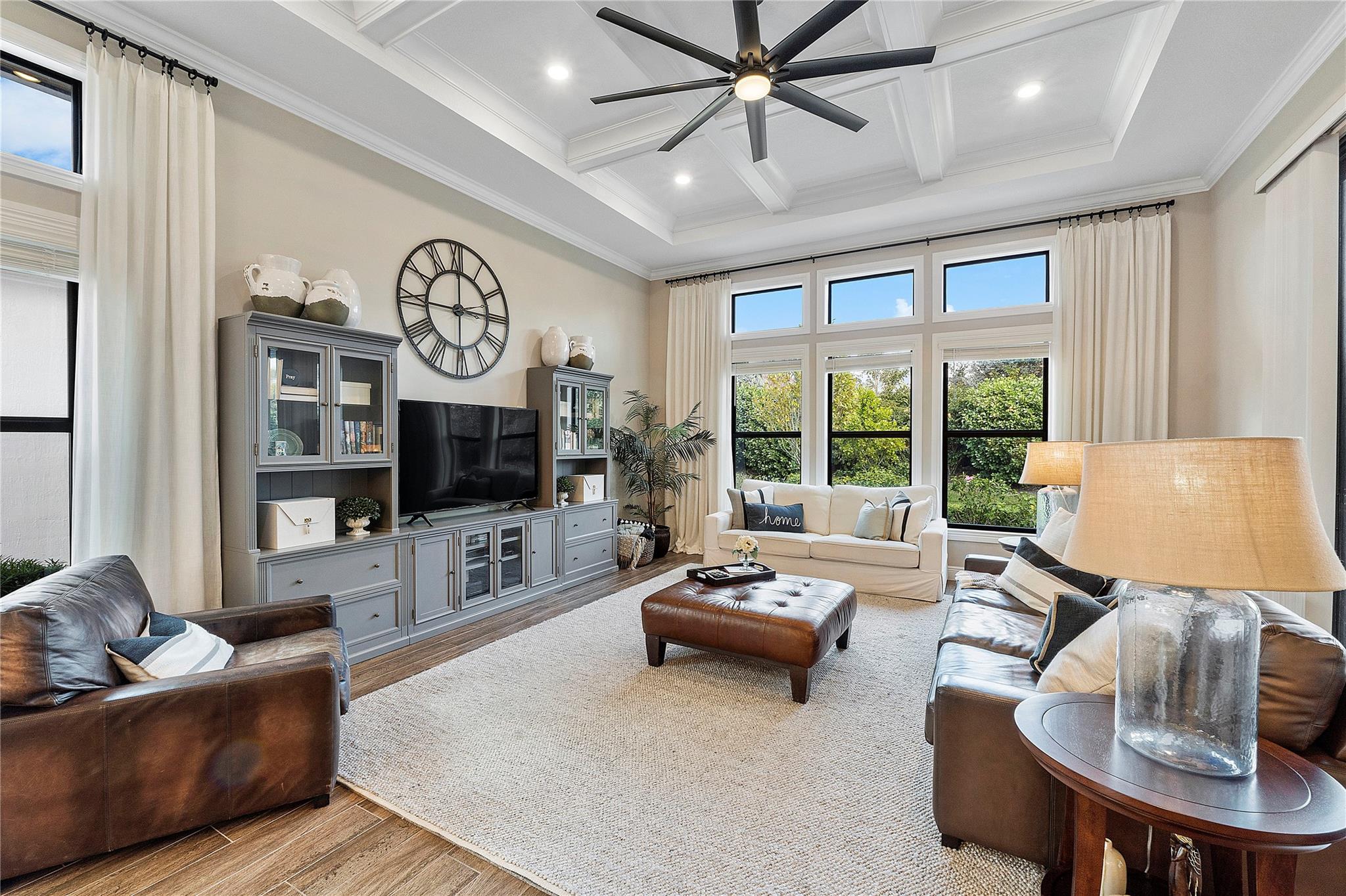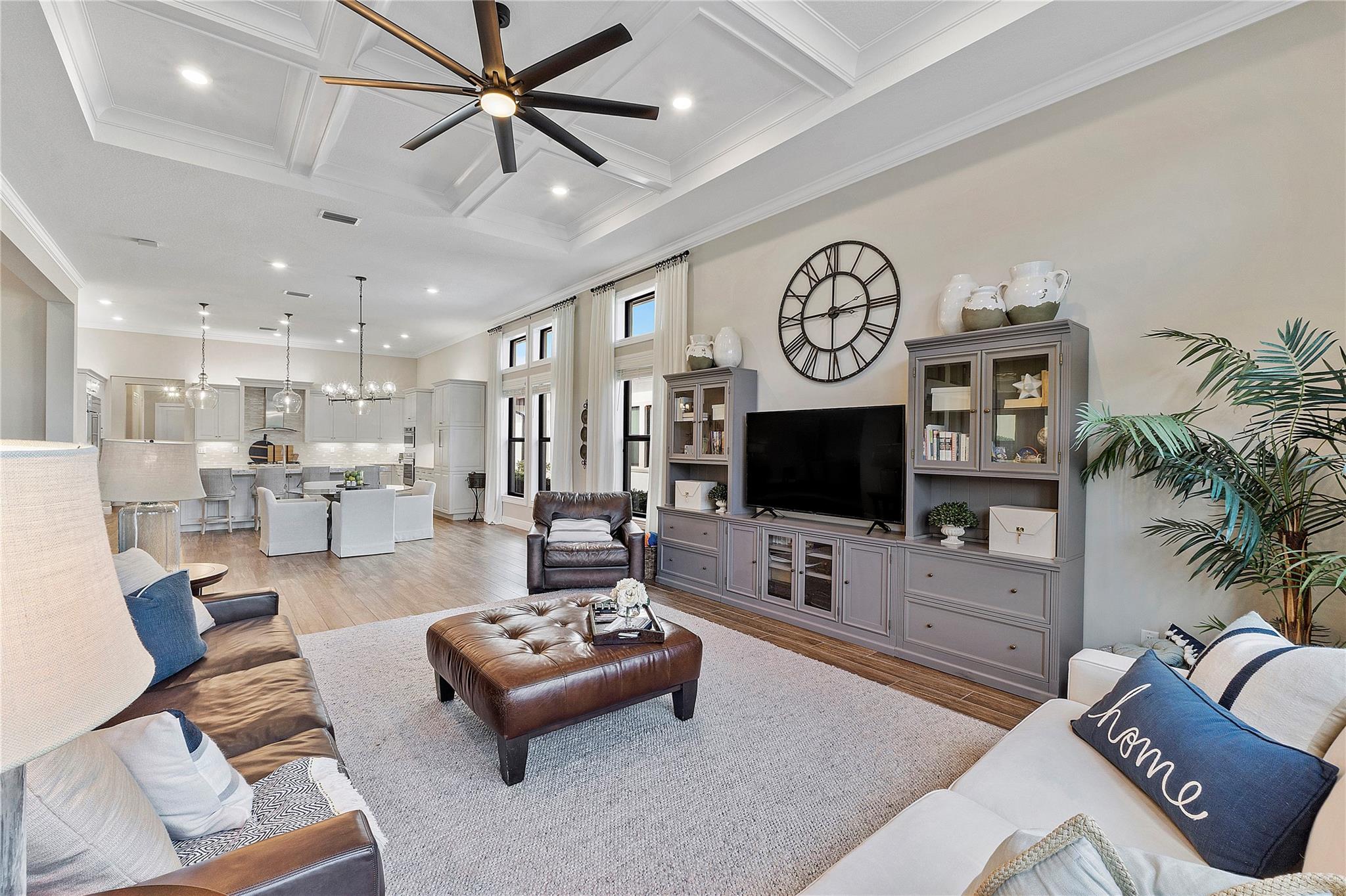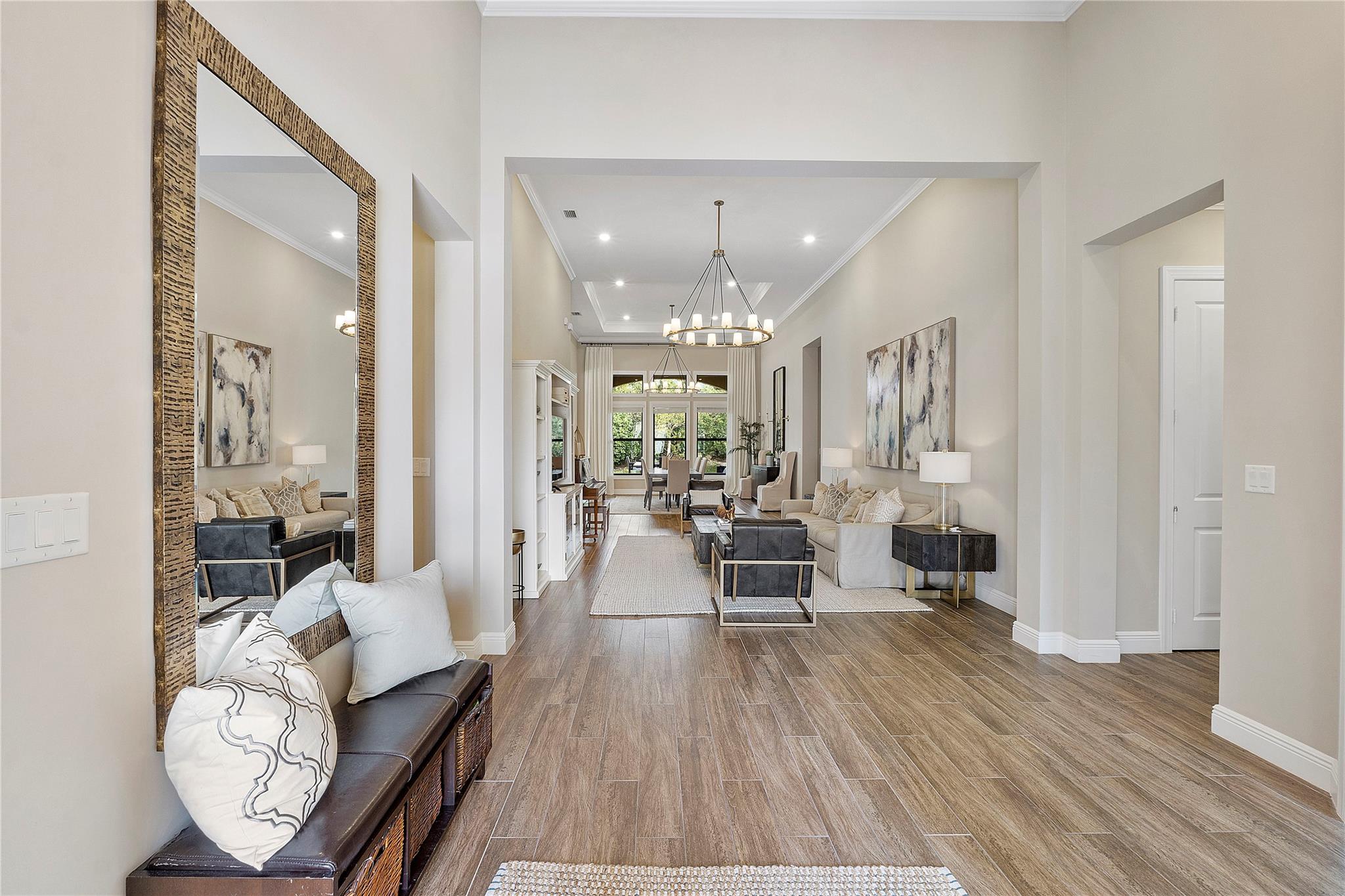 Indulge in luxury living in Parkland's gated community. This single-story gem, with 5 beds and 4 1/2 baths, epitomizes opulence. The chef's kitchen, great room, and formal dining flow seamlessly, showcasing upgrades galore. The primary suite is a haven with coffered ceilings and a spa-like bathroom. Soaring 14' ceilings in main areas and 12' ceilings in bedrooms create an expansive feel. Backyard has room for a pool, please see renderings. Enjoy exclusive amenities like a beach entry pool, culinary kitchen, fitness center, kids club, tot lot, tennis and basketball courts and more. Live the Parkland luxury lifestyle in this model-like home – a masterpiece of elegance and comfort. Contact us for an exclusive viewing.