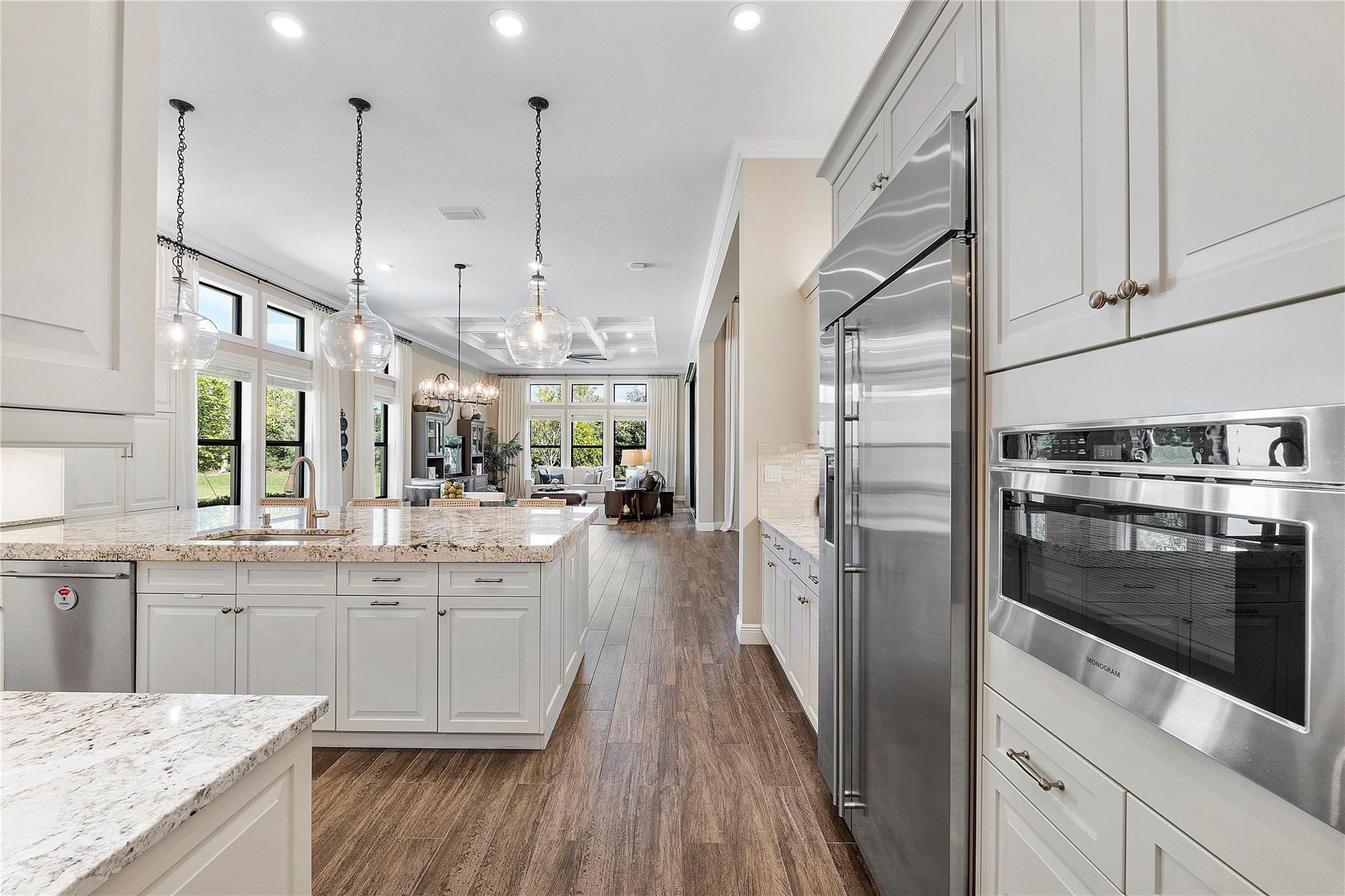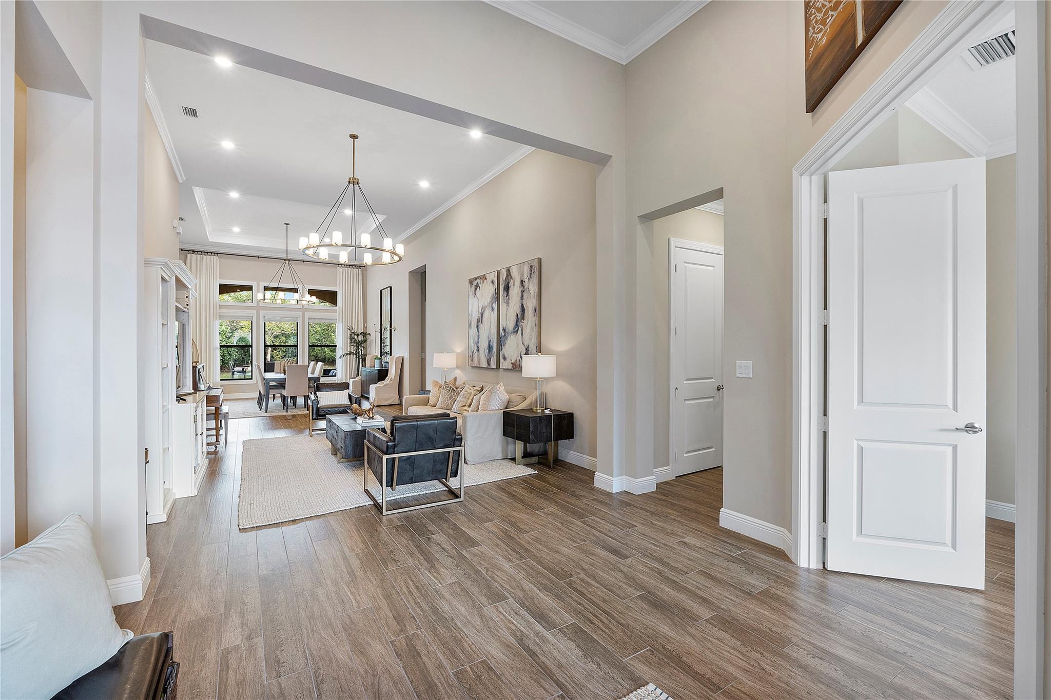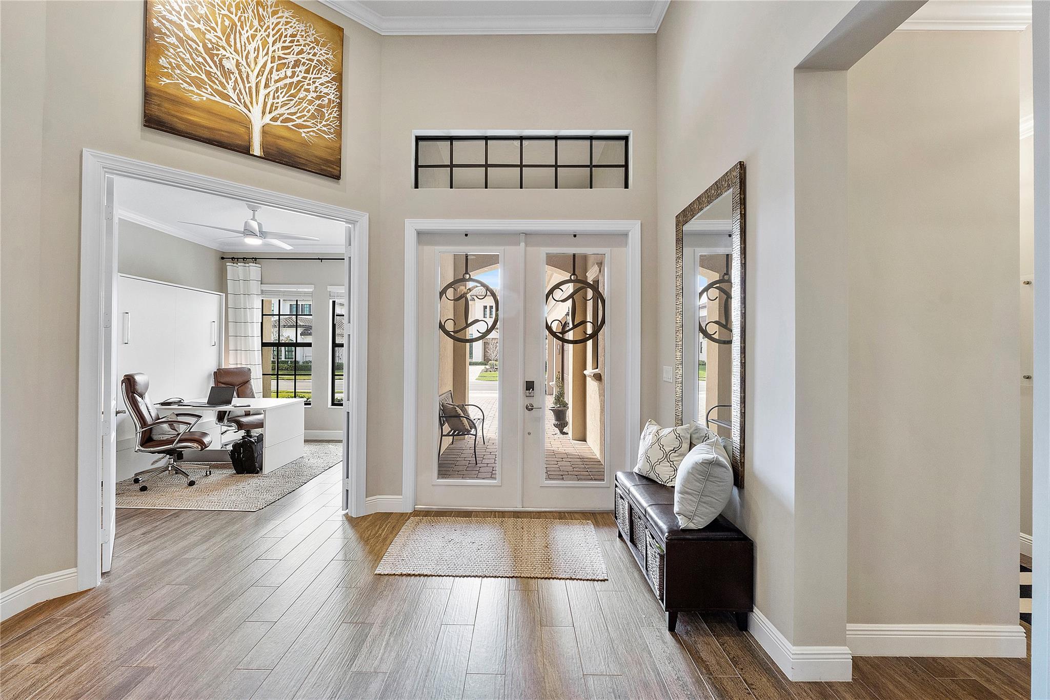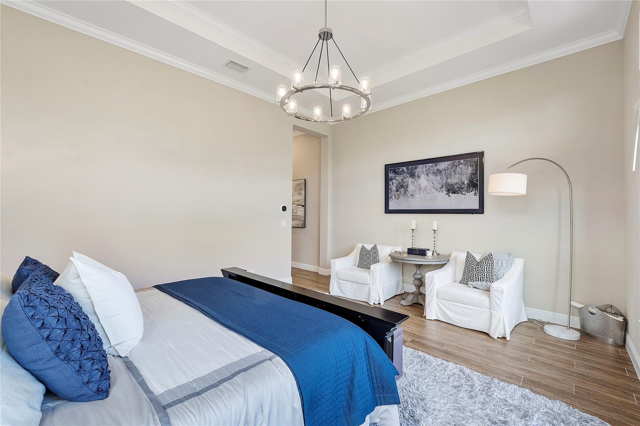 Indulge in luxury living in Parkland's gated community. This single-story gem, with 5 beds and 4 1/2 baths, epitomizes opulence. The chef's kitchen, great room, and formal dining flow seamlessly, showcasing upgrades galore. The primary suite is a haven with coffered ceilings and a spa-like bathroom. Soaring 14' ceilings in main areas and 12' ceilings in bedrooms create an expansive feel. Backyard has room for a pool, please see renderings. Enjoy exclusive amenities like a beach entry pool, culinary kitchen, fitness center, kids club, tot lot, tennis and basketball courts and more. Live the Parkland luxury lifestyle in this model-like home – a masterpiece of elegance and comfort. Contact us for an exclusive viewing.