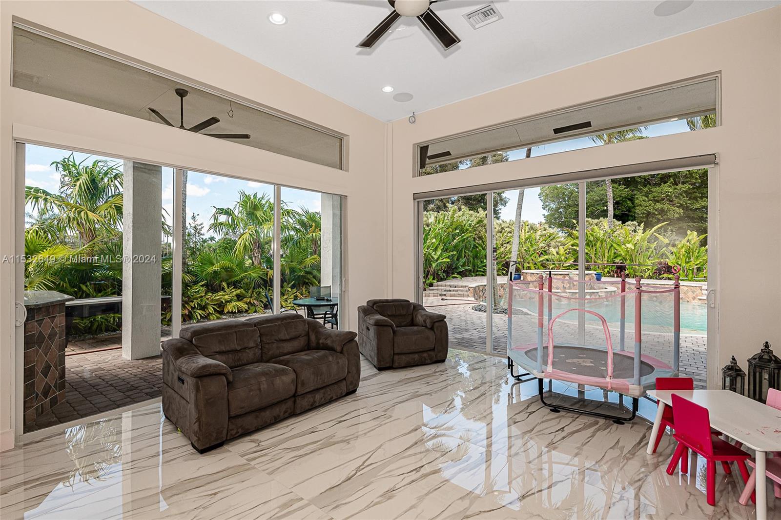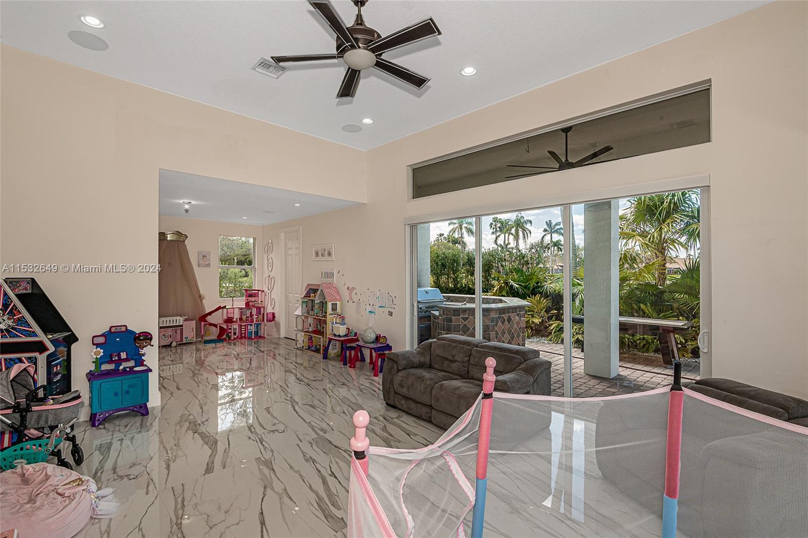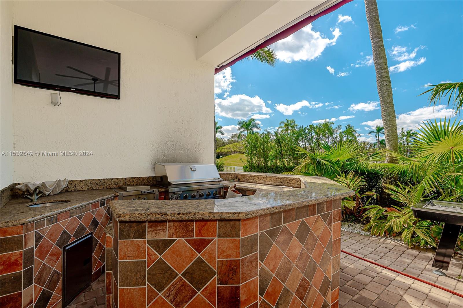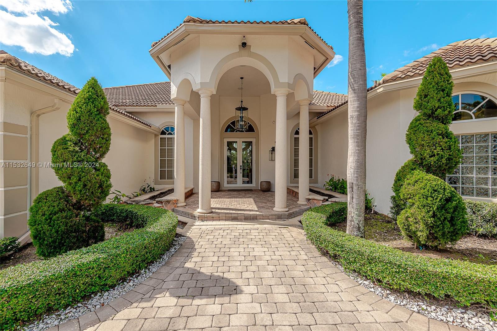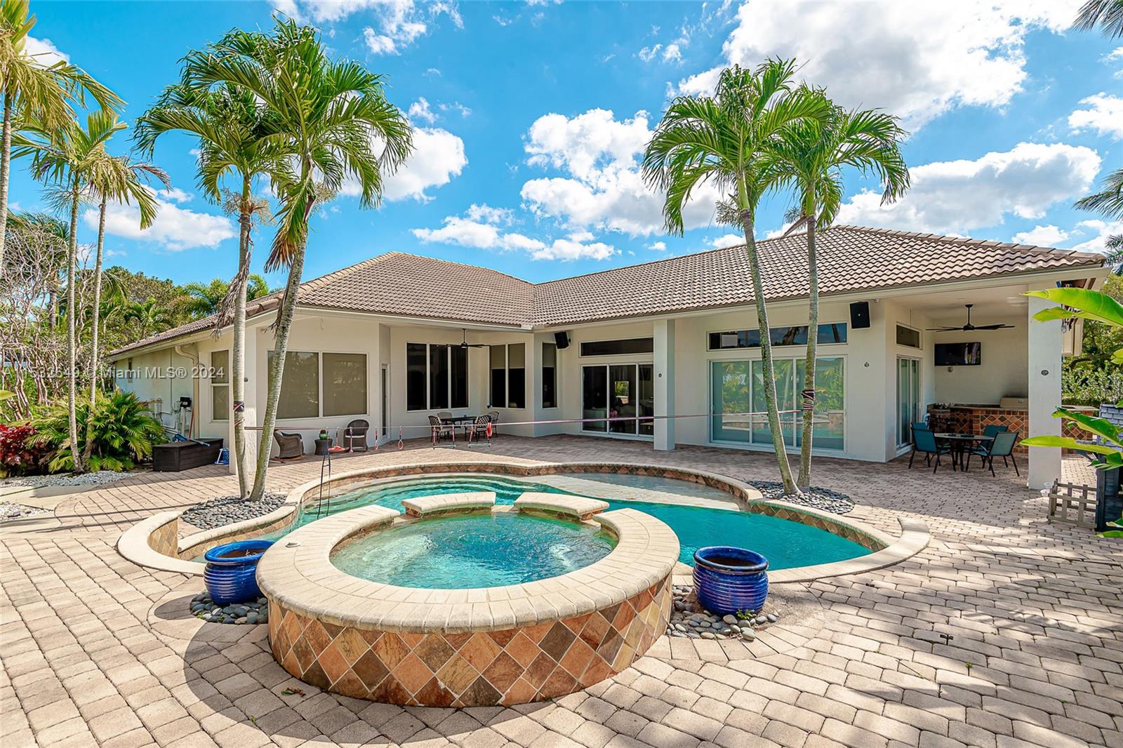 GORGEOUS ONE-STORY GOLF AND WATER VIEW HOME AT THE EXCLUSIVE ENCLAVE GRAND PLAMS GOLF AND COUNTRY CLUB. Double gated community. 5 bedrooms, media room, 4 1/2 baths. Master suite with two walking California Closets, master bath with HIS and Hers showers. Home has all impact glass, yard features with mini basketball court behind the pool. Home has 3 car garage plus circular driveway. Kitchen with Sub-Zero appliances & wine cooler. The property is wired for Smart Home and has 5.1 surround sound system throughout the house inside and outside.