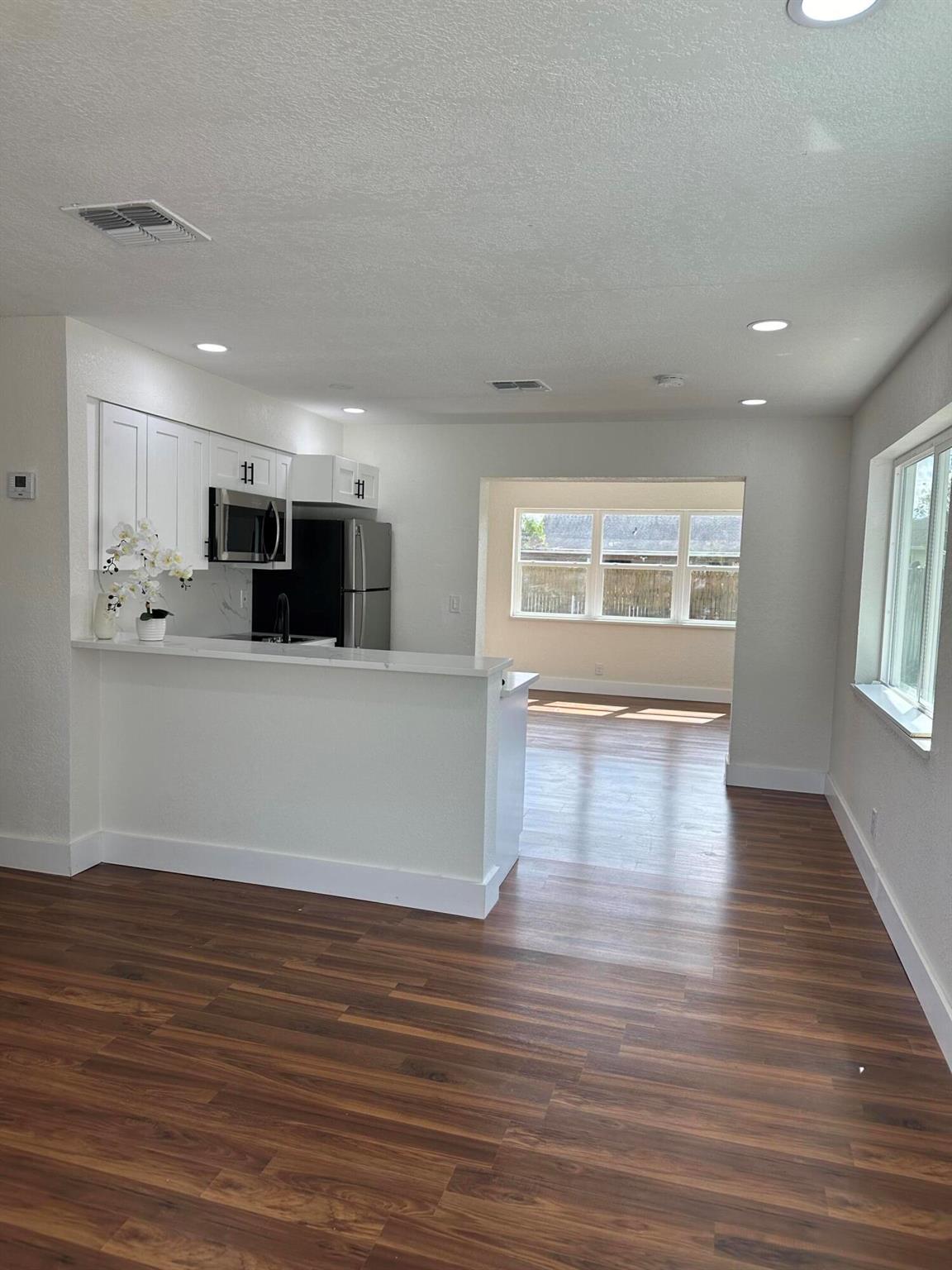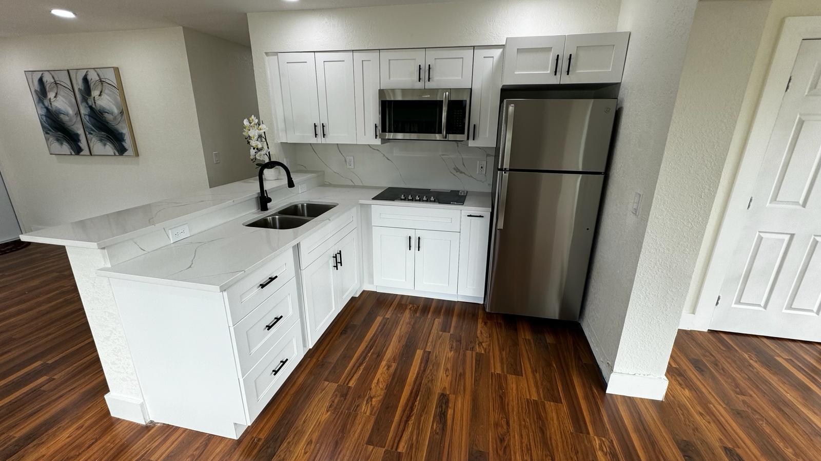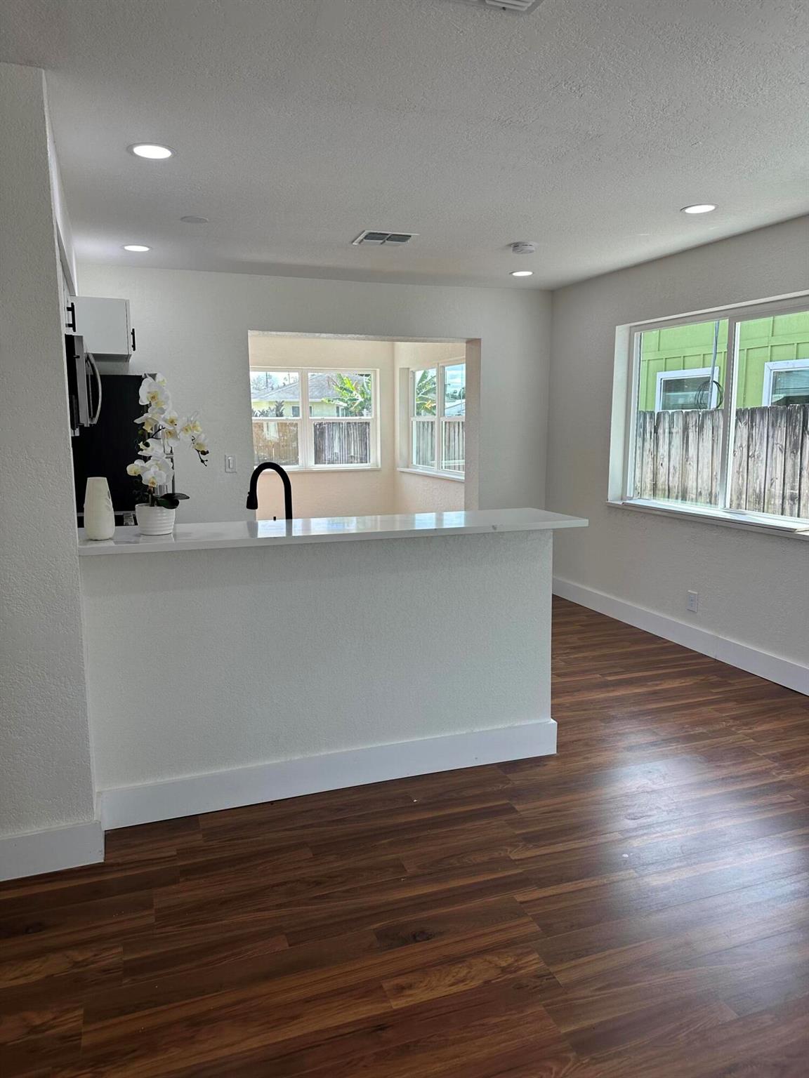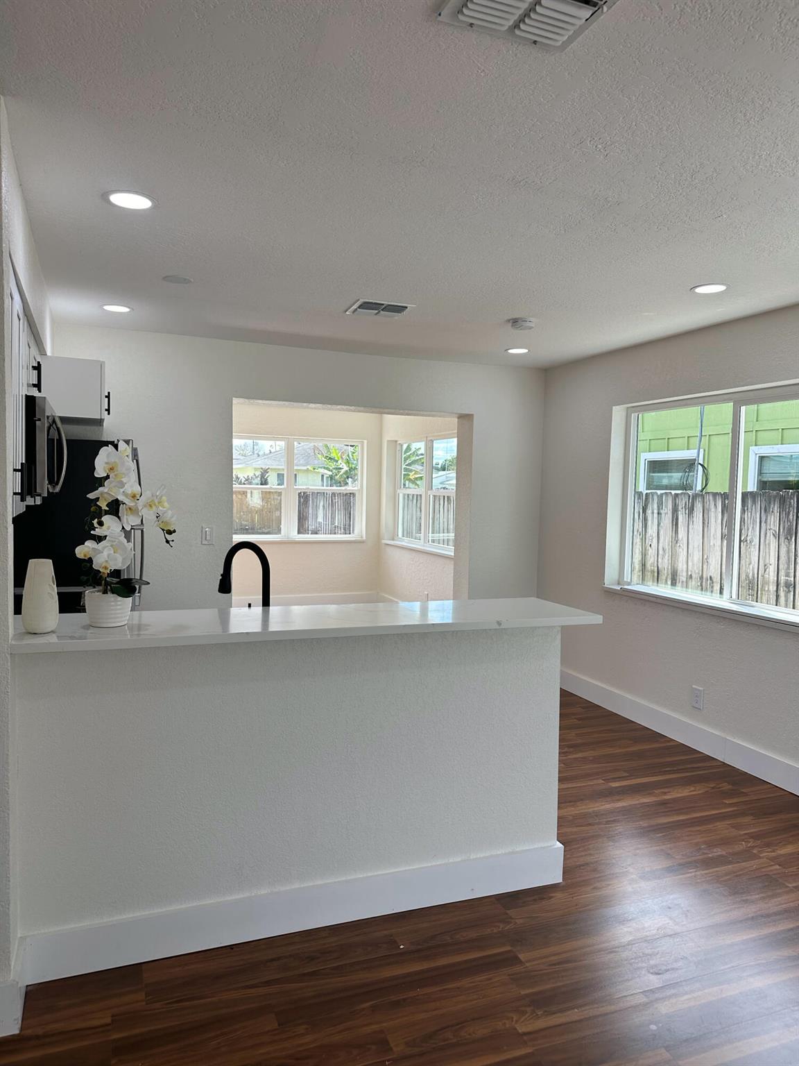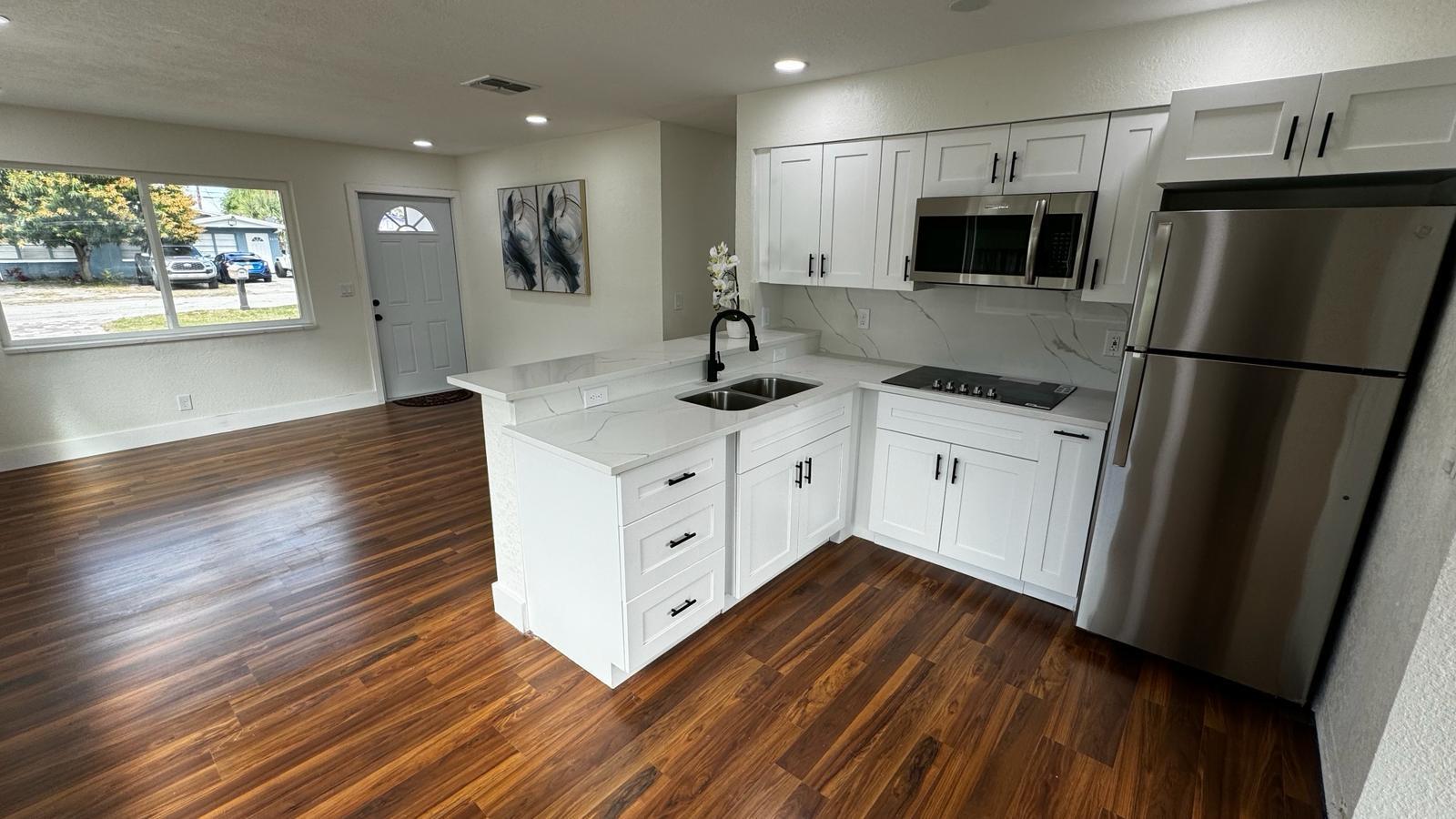 How can I describe this Beauty . Recently renovated property boasts a range of modern upgrades, including a brand-new roof, impact windows for enhanced safety, new flooring throughout, a brand new water heater and AC system, energy-efficient lighting features, a newly paved driveway, and a fully equipped kitchen with new appliances and stylish quartz countertops. The meticulous updates make this home a comfortable and contemporary living space.