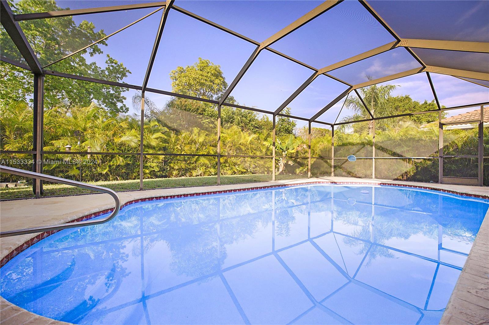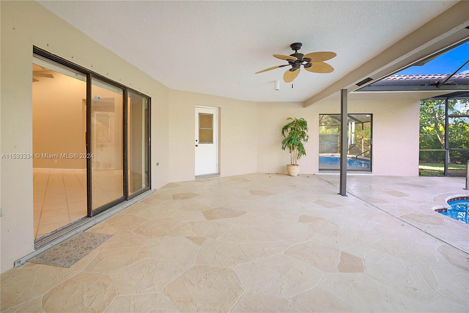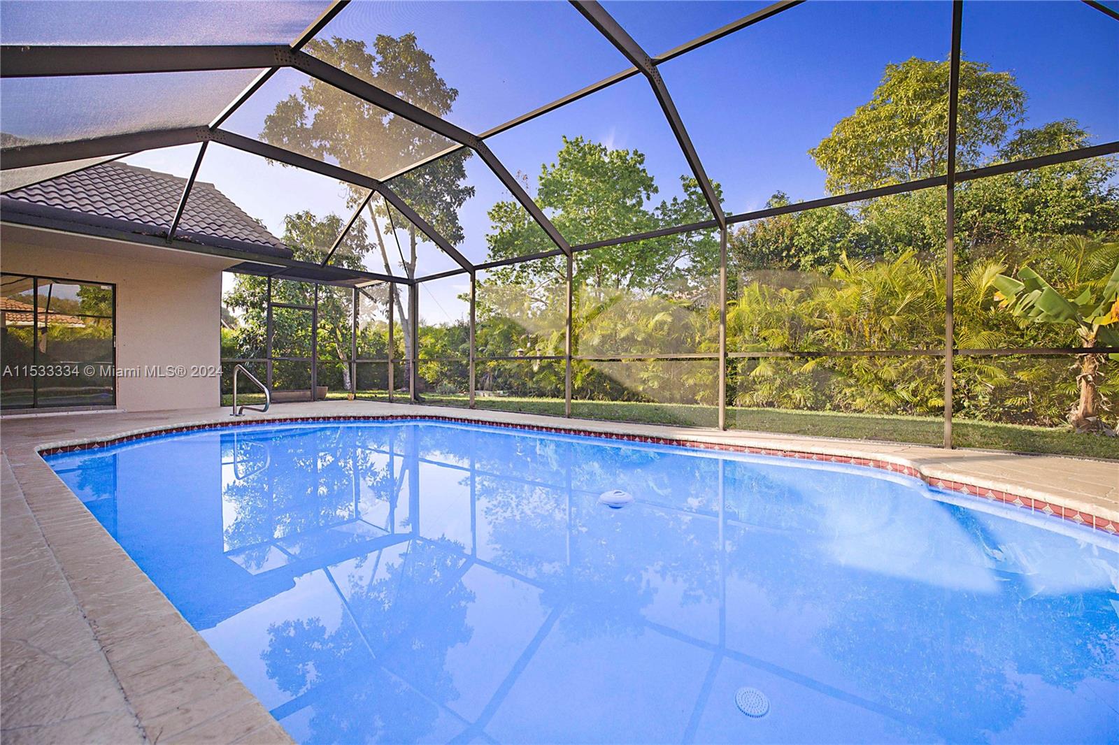 Located in the highly sought after community of North Springs, this beautiful 4/3 2 car garage pool home features a spacious 9,401 sqft lot. Freshly sealed stamped concrete driveway lead you to your entry way & as you walk through your front doors your immediately greeted by the vaulted ceilings, natural lighting & captivating views overlooking the pool & private backyard. Spacious floorplan w/ large family, formal living & dining rooms, open & upgraded kitchen w/ massive island, breakfast bar & nook in the heart of the home perfect for entertaining. Spacious bedrooms & triple split floor plan. Large owners suite w/ dual walk-in closets and spa-like en-suite bathroom. Screened pool area and built in Jennair electric range. Fruit Trees. Hurricane Shutters & more! No HOA. Great Location!